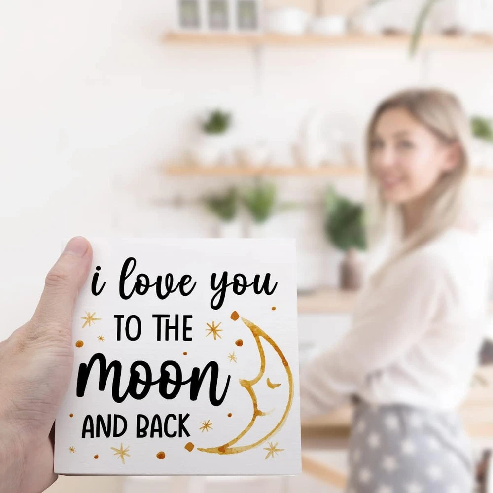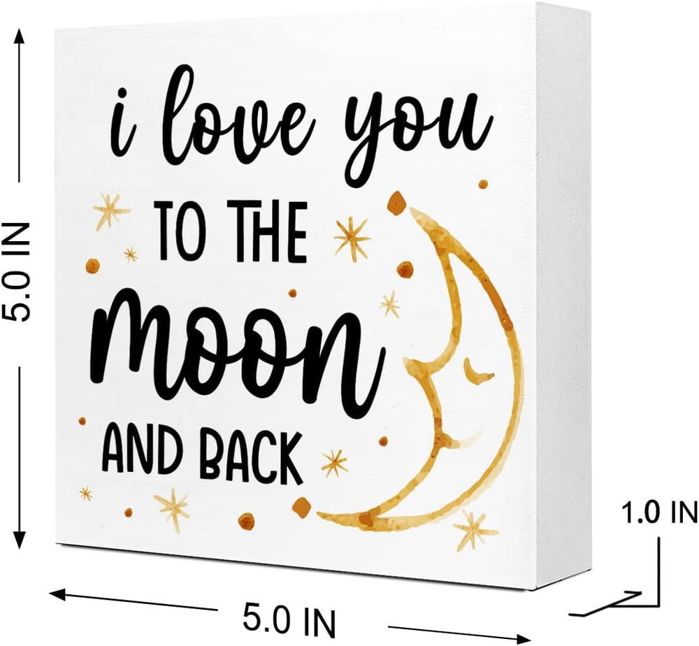 Store New Arrivals Add to Favorite View Feedback Contact Fast deliveries to the customer's home Quality customer service John Make the customers happy! I Love You to the Moon and Back Wooden Sign Desk Decor,Modern Love Heart Wood Block Sign Desk Decorations for Home Bedroom Shelf Table Decor,Valentine'S Day Wedding Gifts for Couples Description Decorations: It is a perfect gift to create a warm space atmosphere as daily home decoration, seasonal decor.Motivational quotes can inspire you, increase work and life enthusiasm. Material and Dimension: Approximately 5x5x1.18 inches. Each wood block sign is made of natural wood, good quality and not easy to deform. Directions:This decorative wood block requires no accessories and can be placed smoothly on a flat surface. Applications:For home and office. This wood sign decor can be placing on living room,bathroom, bedroom, kitchen, patio, garden, bedside tables, bookshelves, display cabinets . Perfect Gift:This wood sign artwork makes an excellent home decor gift for family, friends, colleagues, kids, and more.It is also perfect gift for Christmas, thanksgiving, birthday, anniversary, valentines day, long distance friendship, graduation, housewarming, promotion or any other occasions. Warm and meaningful decoration: Our retro wooden decorative plaque are suitable for home desktop decoration, bookcase, bookshelf, bedside table, small corner, desk, office desktop decoration, etc. These wooden plaque sign and signs bring inspiring text and sentimental information to your living space. This is a warm and meaningful gift for your family, girlfriends, friends, and colleagues. Item model number Q204 Item Thickness 5 Inches Style I Love Mounting Type Tabletop Color white Product Dimensions 5"L x 5"W Material Wood Shape Rectangular Item Weight 7.7 ounces Theme Love Pre-printed I Love You To The Moon And Back ABOUT US We offer the best prices around on high quality products. Our E-store includes media such as books, movies, music and games while offering electronics, toys, sporting apparel, clothing, tools, general home, garden items and more. SHIPPING We are always working hard to ensure your package arrives as soon as possible. Please understand that some factors like weather, high postal traffic, and the performance of shipping companies are outside of our control. We offer free shipping to the lower 48 states and ship within 2 business days of payment, usually sooner. We do not accept P.O. Boxes. Please provide a physical address. For shipping outside of the continental USA, we only use eBay's Global Shipping Program. The item is shipped to KY and then sent to the rest of the world. International customers are responsible for all duties and taxes. Continue to 'check out' to calculate costs for shipping the item to your country. Messages regarding eBay's Global Shipping Program MUST be directed at eBay EXCLUSIVELY. RETURNS We offer a 30-Day Return Policy on items in which you are not completely satisfied with. You have the option of a full-refund or an exchange of the item. No returns are available on items shipped outside of the USA PAYMENT We accept PayPal. CONTACT US This page content is yet to come Please ad us to your favorite seller and visit again later Thank You CUSTOMER SATISFACTION We try our very best to make sure every customer is completely satisfied. If there's a problem, message us! We're happy to help. WE ACCEPT