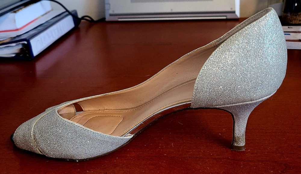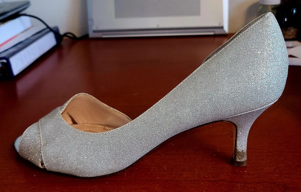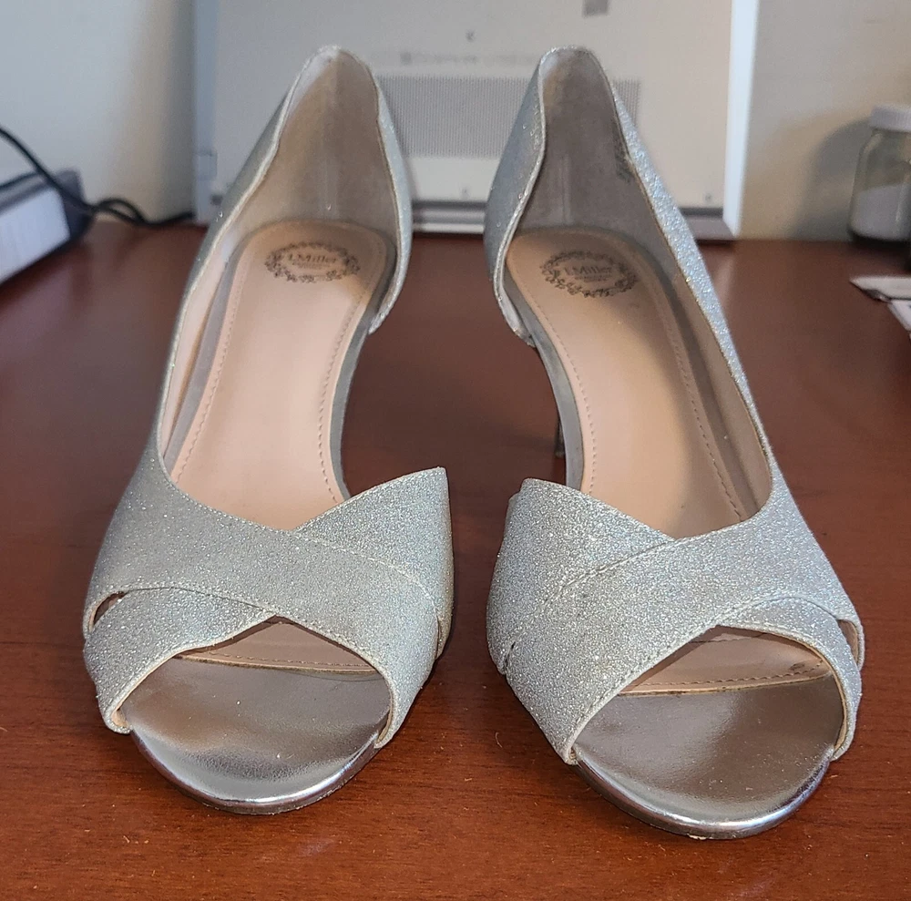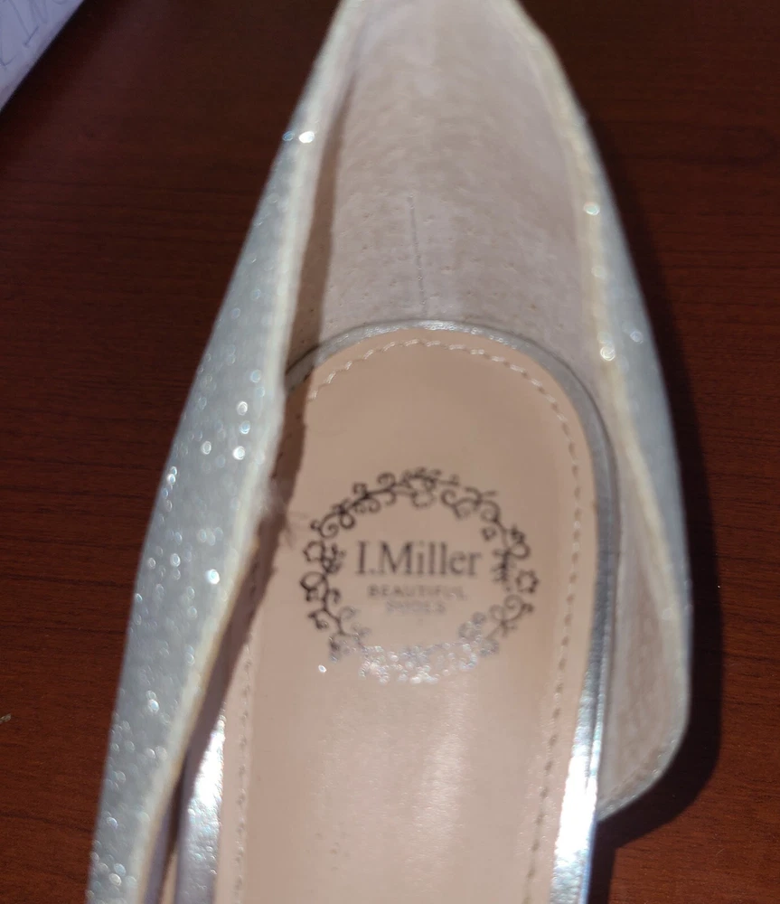 Elevate your style with these stunning I Miller peep toe pumps. These silver glitter heels feature a mid-height stiletto heel and a slip-on design, making them both fashionable and functional. The fabric upper material and peep toe design add a touch of elegance to any outfit, while the 3 inch platform height provides the perfect balance of comfort and height. Perfect for any occasion, these pumps are sure to make a statement. Get ready to shine with I Miller.