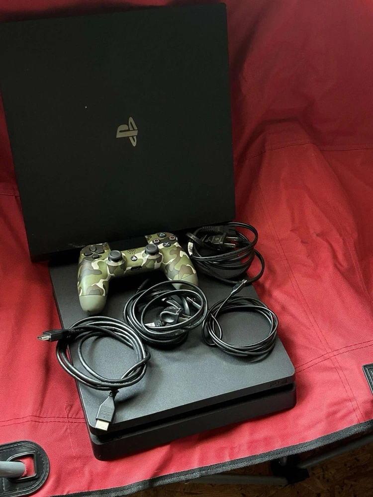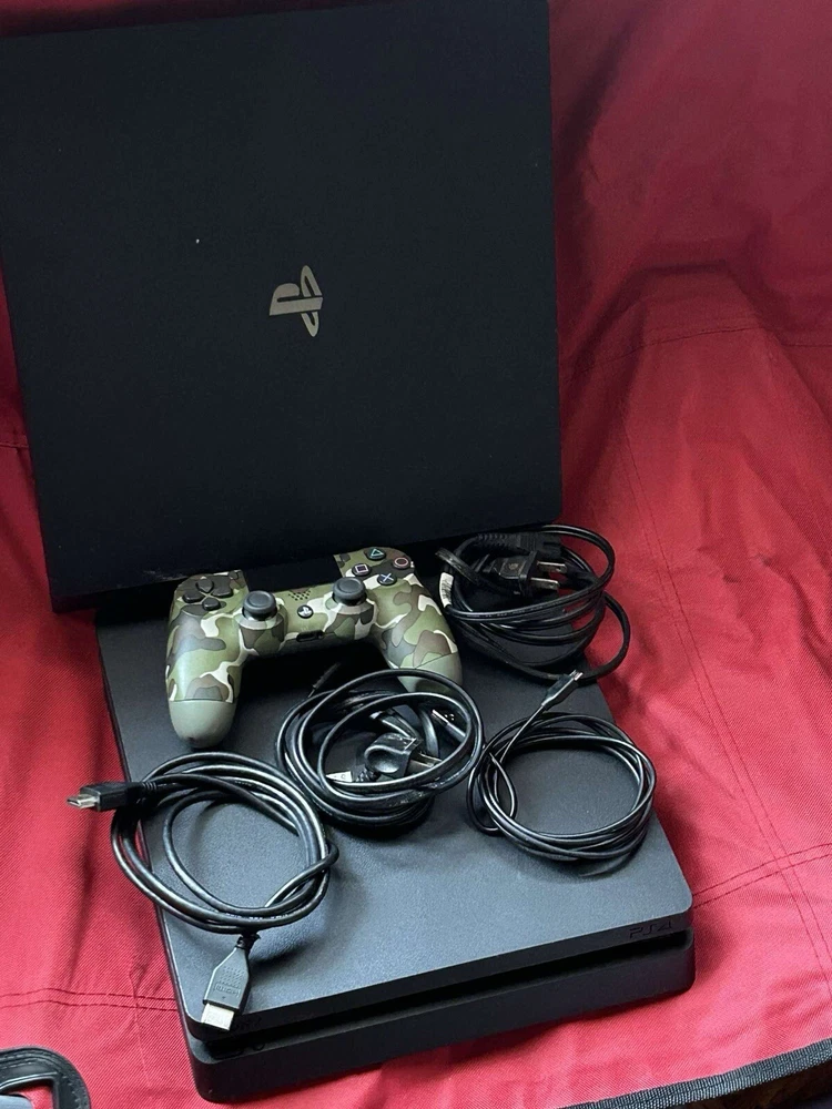 PlayStation 4 Slim Edition 1000 GB Black Console with 2 Controllers and 1 Game