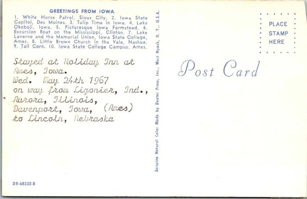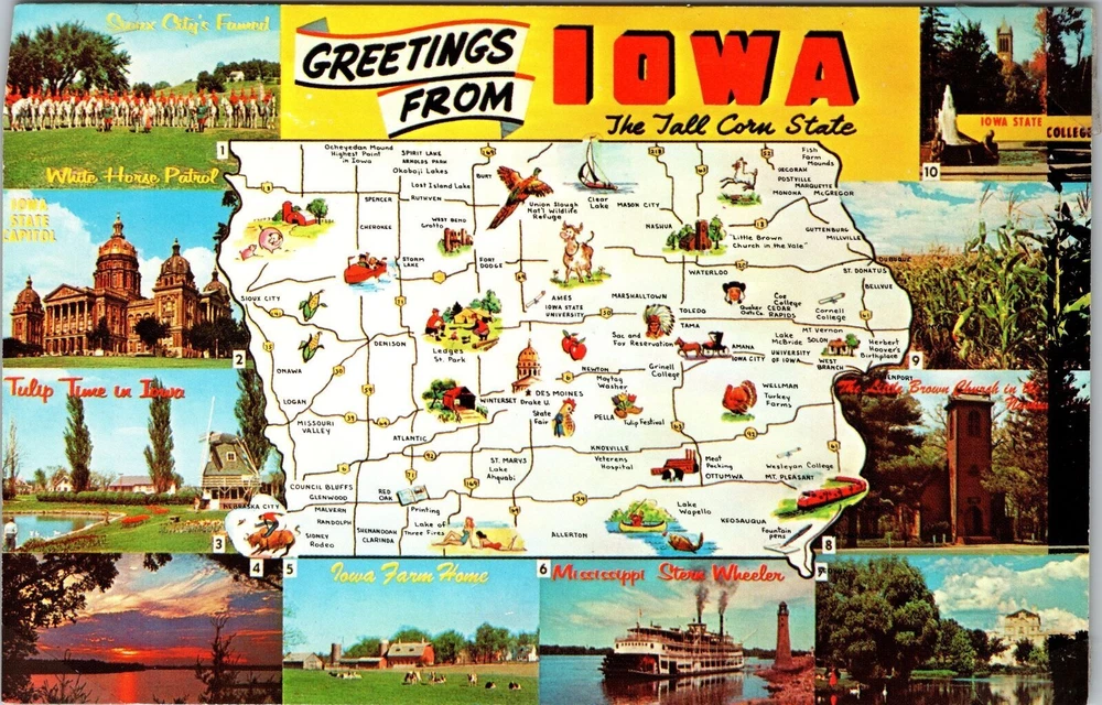 IA-Iowa, Scenic Map Greetings Landmarks, Vintage Postcard