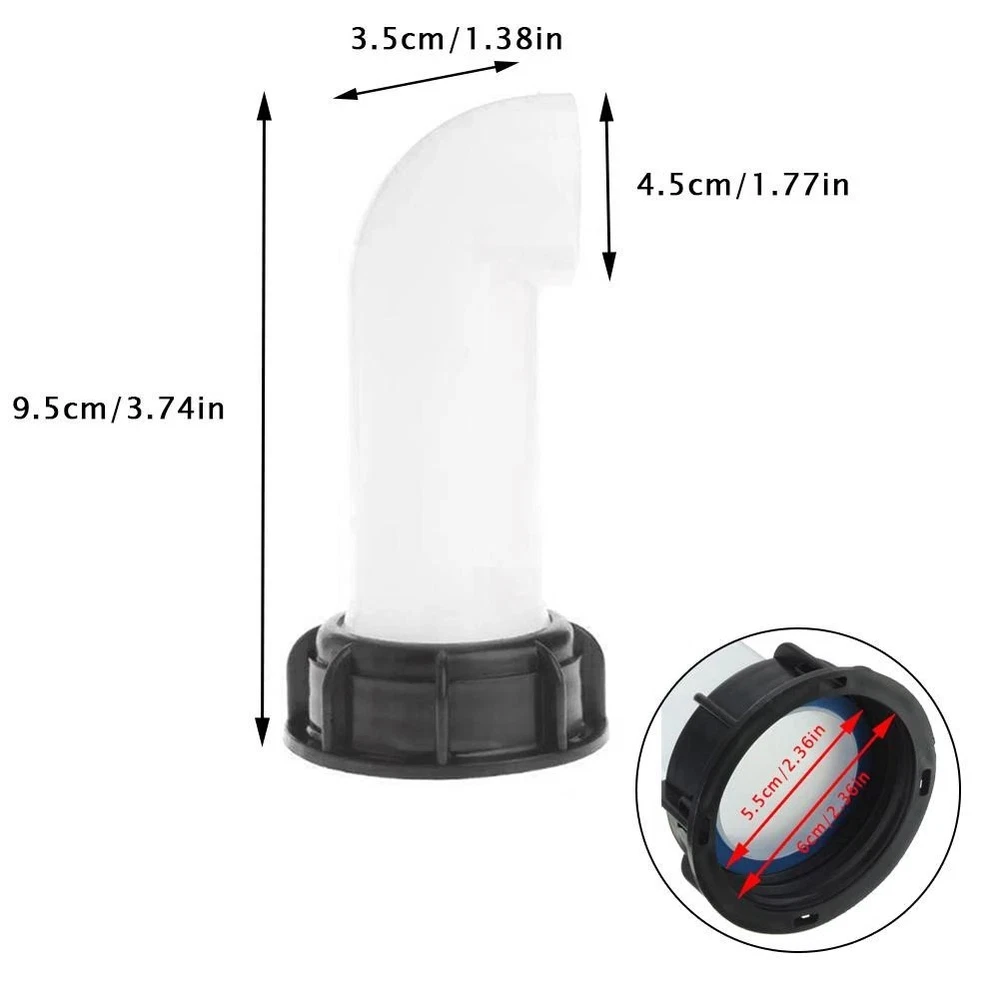 Product Description Features: *2-inch Drain pipe/Bend tube * Tons barrels valve accessories * Dedicated drainage tube * Fits for IBC tanks * Simple and easy to use * Color: as picture shows * Black cap inner diameter: about 60mm * White mouth outer thread diameter: about 45mm * Size: 60 foul mouth standard 13x4cm/extended 14x4.5cm * Style: standard, extended Package included: 1x Drain Spout 1x Thread nut ring Payment Payment must be completed within 5 days. If you have any problems about payment, please contact us via ebay message. Delivery details We only ship to confirmed ebay Order addresses. Please comfirm that your Order address is in line with your shipping address. Please kindly note that the c ombined shipping is not provided because the shipping fee is calculated by weight. Also, the each additional item means exactly the the same color and size. It takes about 7 -15 working days to US; about 10-30 working days to other countries. Transit time may be a little delayed because of the bad weather and customs inspection . If you do not receive your item within 30 working days since payment finished, please contact us immediately for further assistance. Contact us We strive for 100% customer satisfaction! Positive Feedback is very important to us. If you have any questions, p lease feel free to contact us via "Ask seller a question" . We will reply your email within 24 working hours.