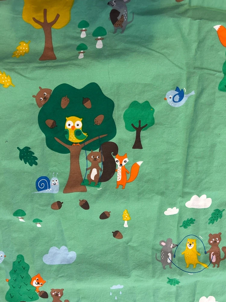 Add a touch of nature to your child's bedroom with this IKEA BRUMMIG duvet cover. The twin size cover features a colorful forest animal pattern that will surely delight your little one. Made of a comfortable blend of 80% cotton and 20% viscose/rayon, this duvet cover is easy to care for and can be machine washed. This includes one twin duvet cover. The rectangular shape and 190 square inch thread count make this duvet cover a perfect fit for any twin bed. The BRUMMIG product line is known for its high-quality and durable bedding products, so you can be sure that this duvet cover will last a long time.