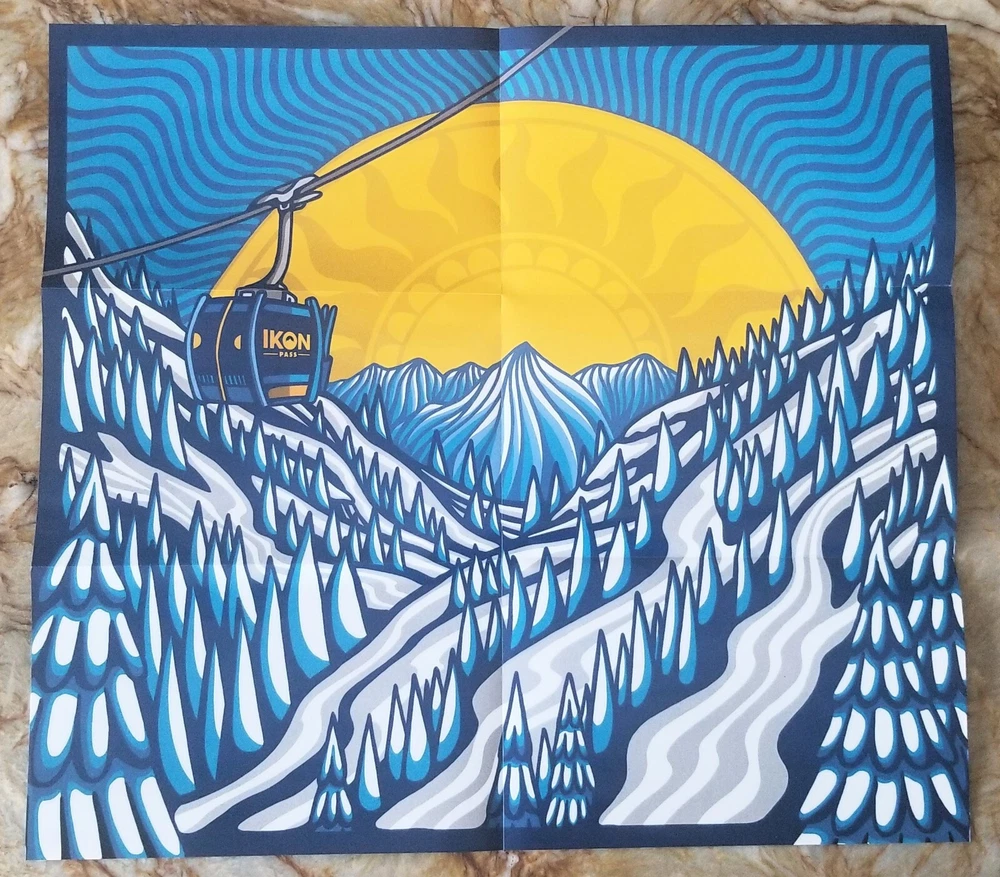 Ikon Pass 2023 / 2024 Limited Artist Poster Gondola Mountain Poster Map Ski New Distributed by IKON folded as shown in photos, and mailed the same.