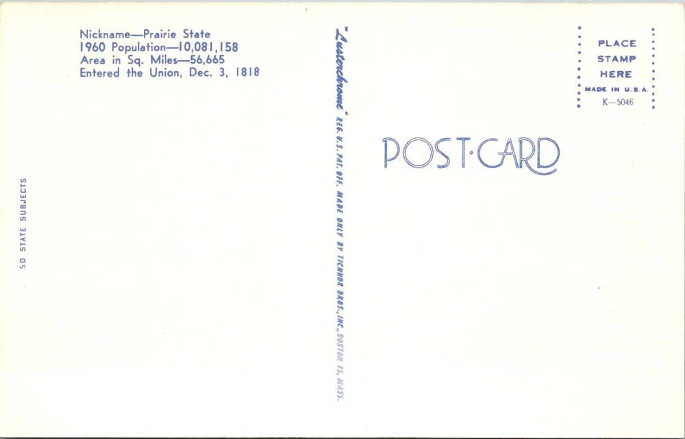 Region: Illinois Original/Licensed Reprint: Original Theme: Cities & Towns Country/Region of Manufacture: Unknown Postage Condition: See Image Type: Printed (Lithograph) City: Illinois Era: Chrome Subject: Cities & Towns Unit of Sale: Single Unit Country: USA