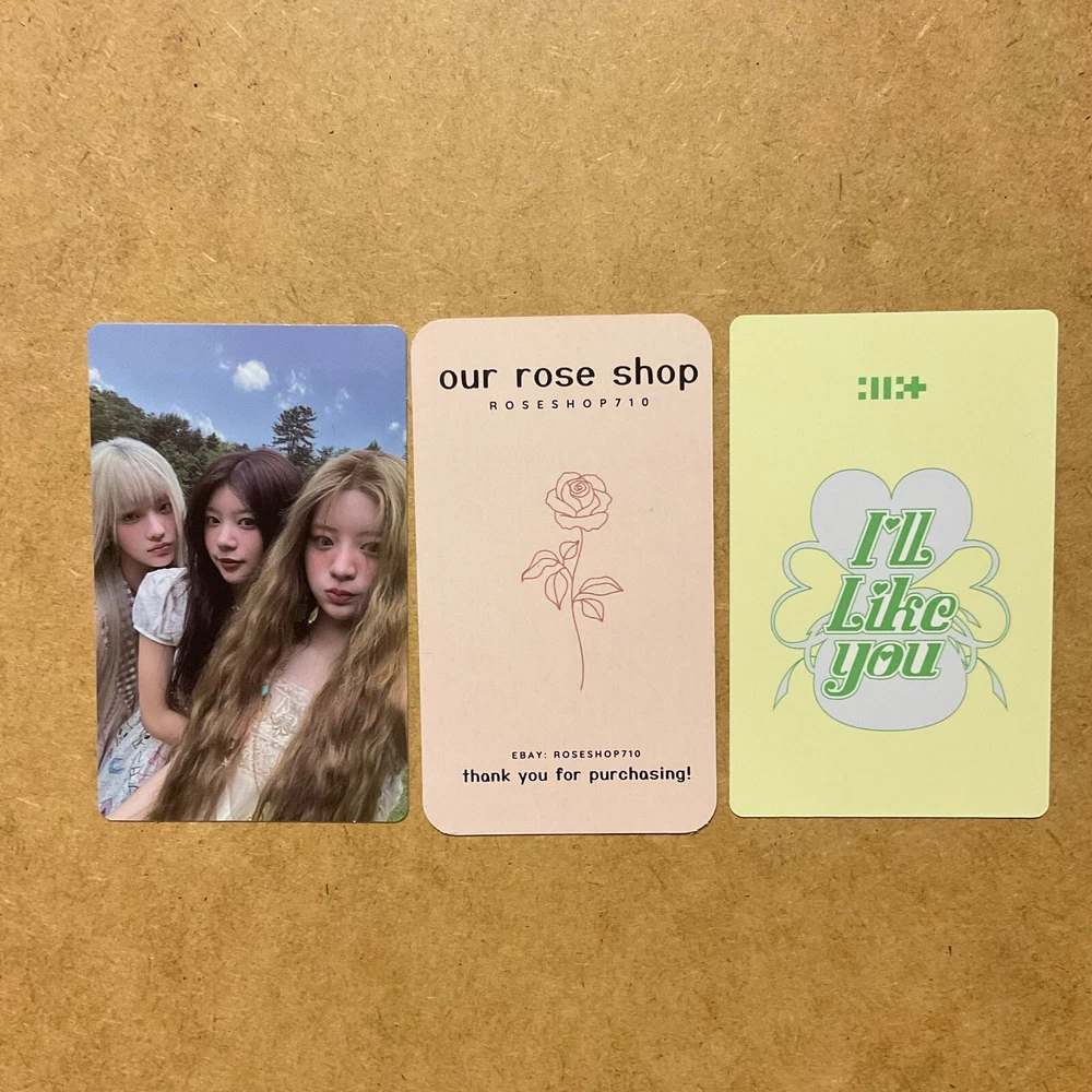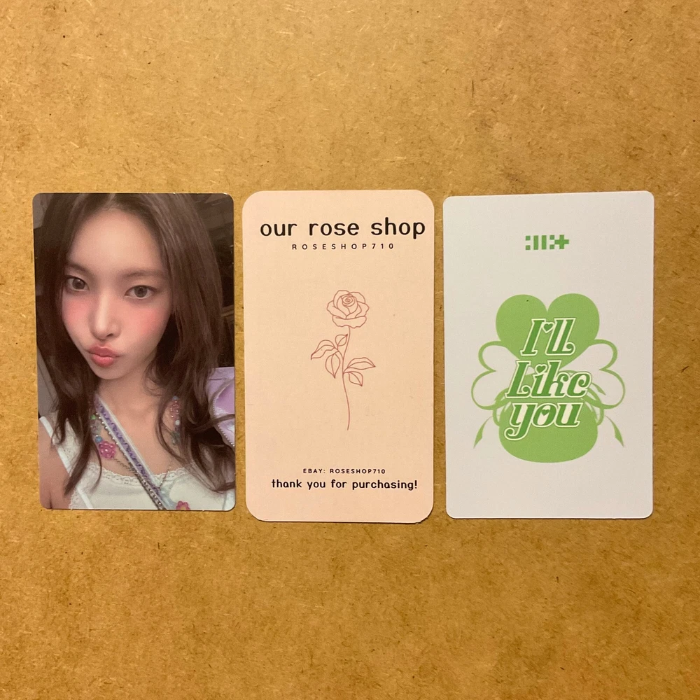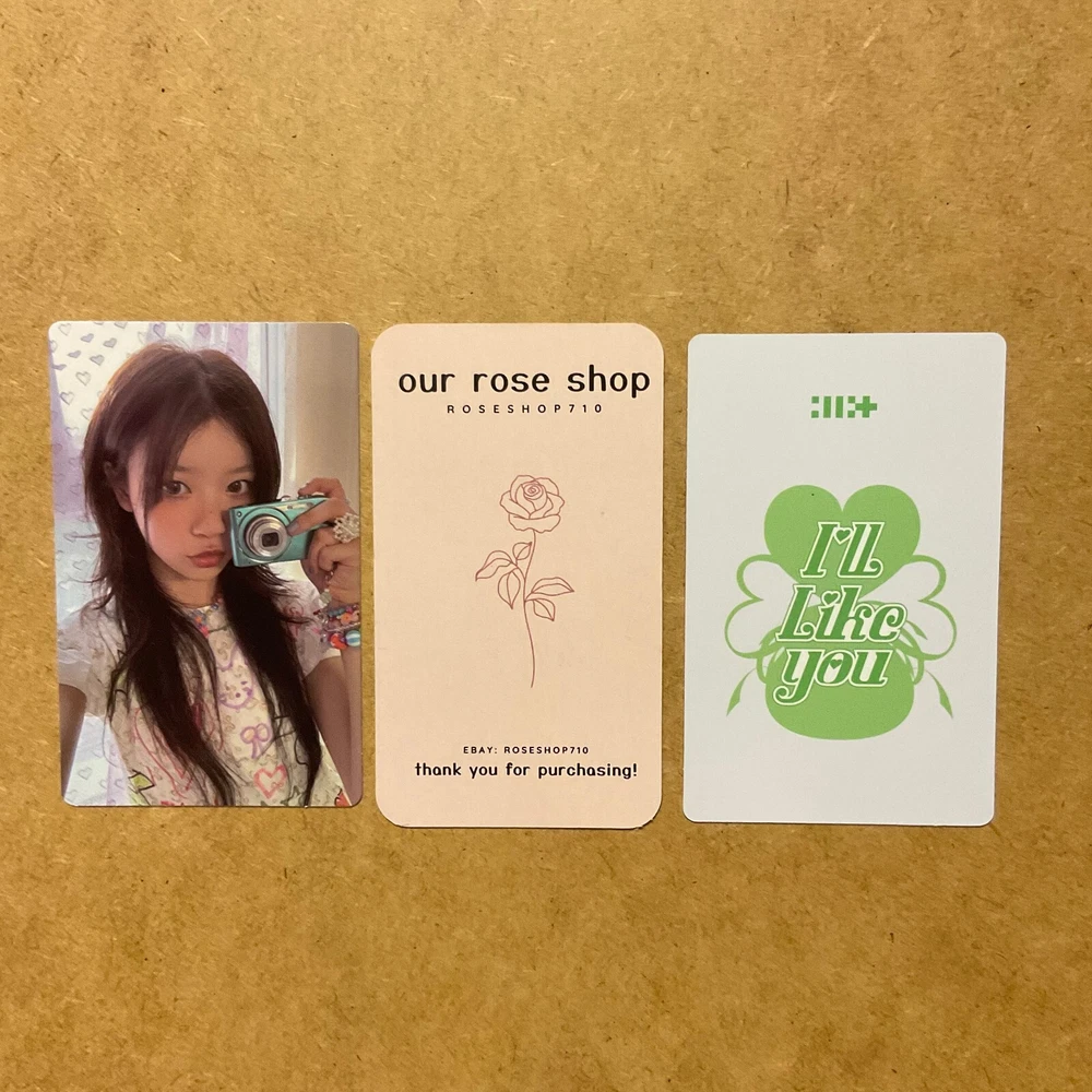 No restocks planned. (Please check profile for information on restocks.) All photocards are authentic, original goods. No returns on photocards. For US buyers : USPS tracked shipping from the US. If you add $70+ of photocards to your cart, you will automatically get free shipping. For international buyers : Please DM before purchase, we can check the shipping fees to ensure correct charge. We are not responsible for any possible customs fees incurred. Description Artist: ILLIT Type: Photocard Will be shipped safely in a shipping shield or top-loader. Item condition: There is no noticeable damage , however there may be small scratches or other album damages. Fine scratches, damage, discoloration, slight warping, etc may be possible during packaging and delivery, this is not a reason for exchange. Shipping We will ship in 1-3 business days from receiving payment. Items are on hand and will ship from the USA. All orders will be sent with a tracking number.