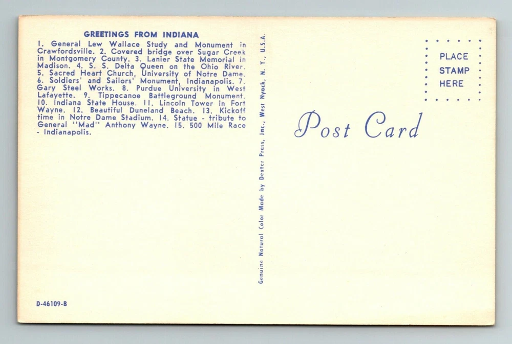 Subject: Cities & Towns City: Indiana Era: Chrome Postage Condition: Unposted Country: USA Original/Licensed Reprint: Original Region: Indiana Theme: Cities & Towns Continent: North America Unit of Sale: Single Unit Country/Region of Manufacture: United States Type: Printed (Lithograph)
