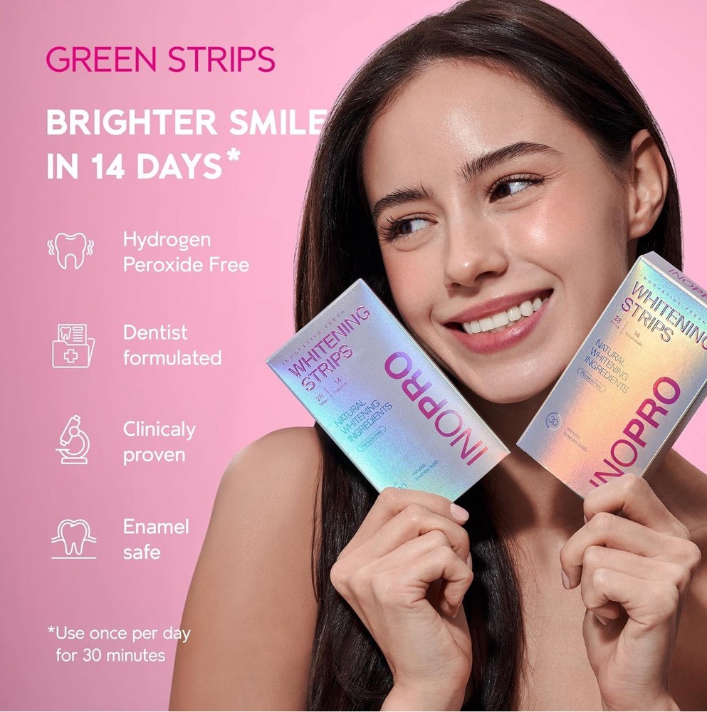 Teeth Whitening Strips 14 Treatments Kit - Teeth Whitener, Peroxide Free, Enamel Safe Green White Strips, Deep Stains Removal - Instant Teeth Whitening Without The Harm (28 Strips) Green is the new White. Our Whitening Strips will effectively whiten your teeth without harming your oral health. Our Green Whitening Strips have natural stain remover and no sensitivity side effects. Use 30 minutes each day for 14 days to achieve a whiter, brighter smile. Non-Peroxide Whitening: Achieve a brighter smile without the use of hydrogen peroxide, which can cause sensitivity for some users. Our formula provides effective whitening while being gentle on your teeth and gums. It’s also SLS-free (Sodium Lauryl Sulfate), ensuring a milder, non-irritating experience, and contains no alcohol, making it more safe and non-drying for everyday use. Perfect for those who looking for a more natural whitening solution. Powered by a natural brightener from Bearberry, green antioxidants and Coconut Oil. All these ingredients are combined to bring you whiter teeth and a brighter smile. Laboratory Tested. All ingredients have been thoroughly tested by an accredited independent laboratory. That means that our products are certified and safe for your oral health. Good Taste and Enamel Safe. It’s strong enough to remove stains, yet not so strong to cause harsh bleaching effects or sensitivity. The teeth whitening strip is enamel-safe, providing you with a pleasant teeth whitening experience. Great coconut mint flavor because whitening can be tasty too
