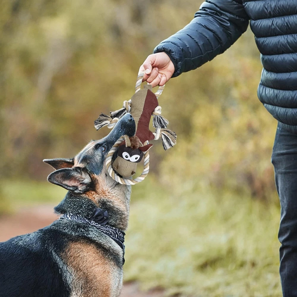 Store New Arrivals Add to Favorite View Feedback Contact IOKHEIRA Dog Toys for Aggressive Chewers,Tough Indestructible Dog Toys Description Item model number IOKHEIRA Dog Toys Age Range Description All ages of large dogs, including adult large dogs and puppies Warranty Description 1 Item Dimensions LxWxH 12.8 x 7.3 x 3 inches Brand Name IOKHEIRA Color Auburn Product Dimensions 12.8 x 7.3 x 3 inches; 6.35 ounces Material Linen Country of Origin China Style Donkey Item Weight 6.3 ounces Manufacturer IOKHEIRA Size 1 Count (Pack of 1) Target Audience Keyword dogs Model Name IOKHEIRA Dog Toys Directions IOKHEIRA Interactive Squeaky Toy Included Components IOKHEIRA Interactive Squeaky Toy Specific Uses for Product Indoor Item Package Dimensions L x W x H 10.94 x 7.72 x 2.87 inches Breed Recommendation All Breed Sizes 【Double-layer Canvas Material】 The durable dog toy is made with double-layer fabrics compounded with high temperature and pressure. The outerlayer is made of upgraded soft and durable canvas.The inner layer is made of high-strength and thicker oxford cloth. It is stuffed with organic cotton.Thus,the squeaky dog toy is safe and durable for puppies small medium and large dogs. 【Large Size and Long ropes】 The dog toy for large dogs is 13.3*9 inch,larger than most of the dog toys.It has two long twitchable ropes with lenth 13.7 inch,which could move insed the toy.This big dog toys are perfect for tug of war and other interactive games It has a built-in squeaker,which helps entice your dogs play for extra excitement and make them feel less bored. 【Entertainment & Relieve Anxiety】These tug of war dog toys are super soft,cuddly and are a popular choice for games of indoor fetch,or just to keep your pup company. These squeaky toys for large dogs could relieve the depression,boredom and anxiety of your dog. 【Teeth Cleaning & Weight Control】This dog stuffed toy helps to keep your dog's dental and oral health by chewing it. It could also increase dog's exrecise to control weight by palying tug of war or fetching game. 【Unique Design】The dog chewy toys are designed in the shape of a donkey, perfect for puppies,small,medium and large dogs. The eyes nose and mouth of the stuffed dog toys are hand embroidered. Compared with other craft, embroidery makes the toy more vivid and extremely long lasting.Besides,IOKHEIRA dog toys are machine washable , not fade or be out of shape. Product Description Why Choose IOKHEIRA Dog Toys? Durable Canvas and Oxford It is made with double-layer and upgrated canvas compounded with high temperature and high pressure,more durable and bite-resistance. Donkey Shape with Movable Long Ropes The rope can move inside the donkey's body, adding to the dog's fun. Perfect for playing tug-of-war with your dog. Squeaky Dog Toy Let your dog be interested in playing with toys Natural Organic Cotton Filling The product is filled with natural high-quality cotton, which will not affect your dog's health due to poor quality cotton. Large Size The dog toy is 13.3*9 inches.It has two long twitchable ropes, a length of 13.7 inches. Embroidery Craft The eyes of the dog toy are made by traditional embroidery process, which is more vivid, and difficult to damage and does not fade. Machine Washable IOKHEIRA dog toys are machine washable, not fade or be out of shape. High-quality Material The fabric selection of the squeaky dog toys is also particularly fastidious, and it is made with double-layer fabrics compounded with high temperature and high pressure. 1. Organic Cotton - Non-toxic 2.Embroidery Craft - Vivid and Durable IOKHEIRA Dog Toy for Large Dogs Squeaky Dog Toys with Crinkle Paper The IOKHEIRA Dog Toy is designed in the shape of a lightweight donkey, perfect for puppies, small, medium and large dogs. It is easy to throw away for a fetch game. 1. Double Layer Canvas- Bite resistant 2. Durable Cotton Rope- Tug of war 3. Squeaker & Crinkle Paper- Entice interest 4. Movable long Ropes- Tug of war Can solve the following problems 1. Reduce damage to furniture 2. Relieve loneliness and boredom 3. Being overweight 4. Clean teeth. ABOUT US We offer the best prices around on high quality products. Our E-store includes media such as books, movies, music and games while offering electronics, toys, sporting apparel, clothing, tools, general home, garden items and more. SHIPPING We are always working hard to ensure your package arrives as soon as possible. Please understand that some factors like weather, high postal traffic, and the performance of shipping companies are outside of our control. We offer free shipping to the lower 48 states and ship within 2 business days of payment, usually sooner. We do not accept P.O. Boxes. Please provide a physical address. RETURNS We offer a 30-Day Return Policy on items which you are not completely satisfied with. You have the option for a full-refund or an exchange of the item. No returns are available on items shipped outside of the USA. PAYMENT We accept PayPal. CONTACT US This page content is yet to come Please ad us to your favorite seller and visit again later Thank You CUSTOMER SATISFACTION We try our very best to make sure every customer is completely satisfied. If there's a problem, message us! We're happy to help.