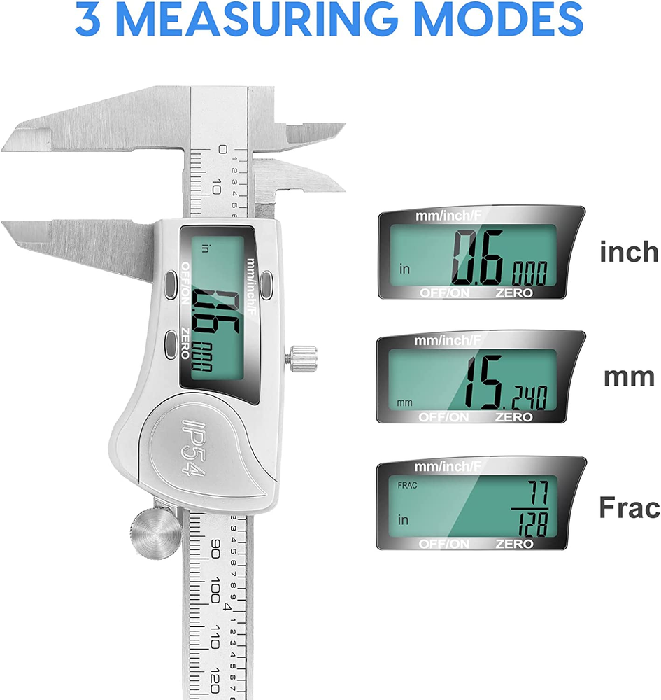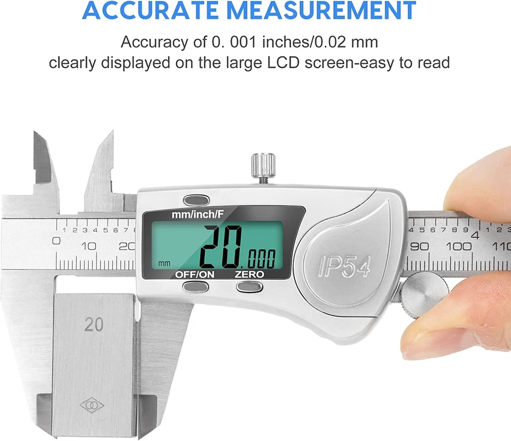 Menu Other Items Feedbacks About Us Contact Us Add To Favorites Digital Caliper Measuring Tool, IP54 Waterproof Electronic Micrometer Caliper, Stainlee Steel Vernier Caliper with Large LCD Screen, Inch Metric Fraction Conversion, 6 Inch for Household/Diy IP54 PROTECTION: IP54 industrial-grade digital caliper with quadruple protection, waterproof, dust-proof, and oil-proof and rust-proof, which make it more durable, stronger, longer service life. PRECISE MEASUREMENT: Stainless steel digital caliper measuring range: 0 -6" / 0-150 mm; Accuracy: ± 0.001"/ 0.02 mm; Resolution: 0. 0005"/0. 01 mm. Thumb roller and locking screw help you make easy and accurate measurements. Perfect measuring tool for Professionals/Household/DIY Measurement. AUTO-OFF & ZERO SETTING: Digital caliper will automatically shut down after 5 minutes of inactivity without manual operation, saving more battery power. The zero setting allows you to press the button at the position where you need to adjust the zero to continue the next measurement. 3 UNITS CONVERSIONS: Simple unit conversion operation,one button to quickly switch among three measurement modes, including inches, millimeters and fractions, which can easily improve work efficiency. 4 MEASURING METHODS: The digital caliper uses upper and lower jaws and a long handle to easily measure the internal diameter, external diameter, depth and step measurement. 4 measurement methods to meet your different needs, suitable for measuring jewelry, devices, hardware, woodworking, etc. Product Description Jiavarry IP54 Water-proof Digital Caliper Measuring Tool, 6 inch Stainless Steel Digital Vernier Caliper with Large LCD Screen Why choose our digital caliper? You can find a satisfactory answer by browsing the following details. When you have a precision digital caliper tool that can measure not only external dimensions, but also internal, depth and step dimensions, you will no longer worry about measuring tiny and inaccurate numbers on objects, what's more, it is a waterproof/dust-proof/oil-proof/rust-proof IP54 stainless steel caliper. You will find efficient fun in your daily work. Product Features: High-quality Materials: Heavy-duty waterproof stainless steel body, dust-proof and splash-proof. Accurate Reading: 0-6" (150 mm) measuring range, ±0.001" (±0.02 mm) accuracy. Zero Setting: press the button at the position you need to zero and continue to the next segment of measurement. 3 units Conversion: One button to quickly switch between 3 measurement units: inches, millimeters, and fractions. 4 Measuring Methods: The digital caliper has 4 measurement methods, which can be used to measure external diameter, internal diameter, step length, and depth measurement. Large LCD Display: Digital display for instant reading, more convenient. IP54 Grade Water/Dust/Oil/Rust Protection Specifications Material: Stainless Steel Product Length: 9.2 inch Product Weight: 12 ounces Measuring Range: 0-6 inches/0-150 mm Accuracy: ±0.02 mm/0.001" Resolution:0. 0005"/0. 01 mm Battery: 3V CR2032 lithium battery Package Includes: 1 * IP54 Digital Caliper 1 * Protective Case 1 * User Manual 2 * 3V batteries(1pc has been installed in the caliper) 1 * Screwdriver Precise Measurement Measurement range of the digital caliper is 0-6"/ 0-150 mm, accuracy is ±0.001"/0.02 mm. Stainless steel digital caliper for more accurate measurement. 3 Units Conversion One button helps you quickly switch measurement between 3 measurement units: inches, millimeters, and fractions. 2 Extra Batteries No need to replace the battery when using a 3V CR2032 lithium battery for one year. But if needed, it can be replaced in 2 simple steps. Item Specification Item model number IP54 Part Number IP54black Batteries Required? No Power Source Battery Powered Material Stainless Steel Country of Origin China Item Weight 12 ounces Batteries Included? No Measurement Accuracy 0.02mm Model IP54 Resolution 0.0005 inch Package Dimensions 9.84 x 3.5 x 0.94 inches Size 6 to 7.9 Inches Dimensions Shipping Returns Additional Info Product Dimensions: 3.5 inches x 9.84 inches x 0.94 inches. Weight: 12.0 oz Fast shipping is very important for us. Our standard shipping service is FREE. Your order will be shipped within 1-3 business days upon full payment received. Most items are delivered within 3-5 business days, however, please allow 3-10 business days. We are shipping only to USA. We only ship to the confirmed Paypal address. We reserve the right to cancel any order for any reason at any time. We are not responsible for undeliverable addresses. We offer a 30 day return policy from checkout winning date. Your satisfaction is guaranteed! If for any reason you are unhappy with your item, just return it within 30 days for a full refund, minus shipping cost. Please contact us prior to initiating a return so that we can issue you a refund authorization. Items defective upon receipt must be packaged in their retail packaging as if new and returned with a detailed description of the problem. Return shipping fees are not refundable. We reserve the right to decline any returns if the above guidelines are not followed. All of our items, unless otherwise stated, will only run on 120 volts. Please check to make sure your country complies with these specifications. If you have a problem or question regarding your transaction please contact us before leaving any type of feedback. We will work with you to resolve any problem you may have.
