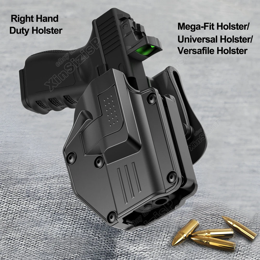 Mega-fit Holster / Versatile Holster / Universal Holster, Fits Most Popular Full Size and Compact Pistols, Fits Pistols with Red Dot, Fits Pistols with High Front Sight I tem D escription : Holster for SCCY SCCY CPX-1 9mm Luger SCCY CPX-1 RD 9mm Luger SCCY CPX-2 9mm Luger SCCY CPX-2 RD 9mm Luger SCCY CPX-2 Gen3 9mm Luger SCCY CPX-2 RD Gen3 9mm Luger SCCY DVG-1 9mm Luger SCCY DVG-1 RD 9mm Luger Attention: While you have the holster, please follow these three steps to adjust its retention for a customized fit, as shown in the listing picture. Proper adjustment ensures your weapon is secure. Without it, the holster may not fit any firearm correctly. 1) After adjust the retention , Weapon Compatibility - Outside Waistband Tactical H olster Fit Holster perfect work with suppressor sights, and fit all the capacity 9mm,10mm, .40 cal, .45 cal a n d 22LR for the gun. Compatible-Beretta Fits Beretta 92, 92X Centurion, 92S Full Size . 92G ELITE LTT , 92A1, 92FS, PX4, PX4 STORM, APX, M9A1, M9A3 without laser, APX Centurion 9mm, APX Compact 9mm , APX A1, APX A1 compact , M9A1 Compatible-Bersa Fits Bersa Thunder 9 Pro XT Compatible-BRG Fits BRG USA BRG9 Elite 9mm Compatible-Browning Fits Hi-Power, Hi-Power 640, Hi-Power 3D, Browning Mark III Compatible-Canik Fits TP9 Elite Combat, TP9 SFX, TP9 SF,TP9 Elite-S, TP9SA Compatible-Caracal Fits Caracal EF, Caracal F, Caracal F Gen II Compatible-Colt Fits Colt 1911-3'', 1911-4'', 1911-5'', M1911 A1, M1911, Colt 1911 .45, Colt 1911 9mm Compatible-CYMA Fits CYMA CM127 Compatible-CZ Fits CZ P07, P09, 75 SP-01 Shadow, Shadow 2, P-10C, P-10 F, 75, 75B, 85 Compatible-FN Fits FNX-45, FN-509 Compatible-Girsan Fits Girsan MC28, Regard MC 9mm, MC28 SA 9mm, MC 14T, MC P35 PI LW, MC28 SA, Regard MC, 1911 MC Compatible-Glock Fits Glock 17 Gen(1,2, 3, 4, 5), Glock 19 Gen(1,2, 3, 4, 5), Glock 19X, Glock 21, 22 Gen(1,2, 3, 4, 5), 23 Gen(1,2, 3, 4, 5), 24, 26, 27, 30, 31, 32, 33, 34, 35, 36, 41, 42, 43, 43X, 43X, MOS, 44, 45, 47, 47 mos, 48. Compatible-Heckler & Koch Fits H&K USP and H&K USP Compact, SFP9,VP9 Compatible-Hi-Point Fits Hi-Point C9 Compatible-HS Fits HS-9 Compatible-ISSC Fits M22 Gen2 Compatible-IWI Fits Masada 9mm, Jericho 941 9mm Compatible-Jericho Fits Jericho 941 RS Compatible-Kahr Fits CW45 Compatible-Norinco Fits Norinco NP22 Compatible- Palmetto State Armory Fits PSA Dagger Compact 9mm, PSA Dagger Full Size S 9mm, PSA Dagger Full Size SX 9mm, PSA Dagger Micro 9mm, PSA 5.7 Rock Compatible-Para ordnance Fits Para ordnance P12-45 Compatible-PREXER Fits Wist 94 Compatible-Radom Fits VIS 100 Compatible-Rock Island Armory Fits Baby Rock 380, BBR 3.10 45ACP, BBR Standard 380ACP, M200, M206, 1911 , SA 1911 Compatible-Ruger Fits Ruger MAX-9, Security-9, Security 9 Compact/ Pro/ Standard , Security 380, Ruger-5.7, Ruger American, SR1911, SR22, RSR9, SR9C, SR40, SR45, PRESCOTT 57, LC9 , Compatible- SCCY Fits CPX-1 (Gen 1 2 3), CPX-2 (Gen 1 2 3) , CPX-3 (Gen 1 2 3) , DVG-1, CPX-1RD / CPX-2RD Compatible- Sarsilmaz Fits AR-24 , AR-24K, B6, B6C, B6C7.65, B6C-LR, B6C-S, CM9, K-12 Sport, K-12 Sport X, K11, K2 45, K2 45C, Kilinc 2000 Light, Kilinc 2000 Mega, P8 L, P8S, SAR 9, SAR 9 C, SAR 9 METE Compatible-Shadow Systems Fits CR920 Elite, DR920, DR920 FS, DR920P, MR920 Compatible-Sig Sauer Fits Sig Sauer P365, P365 BB , P365X / XL/ SAS/ X Macro, P220, P225, P226, P228, P238, Sig Pro 2022 (Germany or USA version), SP2022 SAR, P938, P320, P229, P250, P320 Compact, P320 with Lima Laser Compatible-Smith & Wesson Fits Smith & Wesson M&P 9MM, M&P M2.0 9MM, M&P 40, M&P 45 ACP, M&P 40, M&P .40 C, M&P .45, M&P 9 M2.0, M&P Shield 9mm, 40, 45, M&P Compact 9, 40, SW9, SW9V, SD9 VE, SD40 VE, SD40, M&P 40 M2.0, 380 SHIELD EZ , 9 SHIELD EZ , M&P9, 9 SHIELD ,CSX, S&W 1911 Compatible-Springfield Fits Springfield XD-9, XD-40, XD-45, XD-S, XD-S .45 ACP, XDM-9, XDM-40, XDM-45 ACP, XDE-9, HELLCAT, HELLCAT PRO, Hellcat OSP / RDP 9mm , XDS-45, XDS-9, XDM , XDM elite 10mm , 1911 SA , 1911 Compatible-Steyr Fits Steyr Arms C9-A1, Arms C9-A2, Arms C9-A2 MF Compatible-Stoeger Fits STR-9 Compatible-Tara Fits TM9 Compatible-Taurus Fits Taurus Millennium, Taurus 100, Taurus 92, PT111 G2, G2C, G3, PT24/7, GX4, PT111, PT132, PT138, PT140, PT145, PT745, PT938, T800 series and Pro version, PT809, PT709, PT24/7, PT24/7-OSS, PT809C, PT840C, G3, TH9, Taurus 1911, Taurus PT 92 AF, TX22 compact, TX22 22LR Compatible- Tisas Zigana Fits PX-9, Tisas zig m1911 duty .45, Tisas M1911 .45 Compatible-Walther Fits Walther P99 QA, PPQ(M1 M2 M3), P88 9mm, PPQ Compatible-Zastava Fits EZ9, EZ40 ( Without embedded chassis, and no flashlight style ) 2) Holster with paddle - Push side buttons to achieve the fast opening and closing, unique design allows for belt carrying or vest carrying, perfectly used by duty holsters, uniformed law enforcement officers, security personnel, military personnel, private persons, and shooting sports holsters. And it fits closer to the body which can achieve better concealment under clothes. 3) Secure Level II Retention - Auto-locking system restrain pistol in OWB holster to ensure ultimate safety, activate the release by pressing the button with the index finger to achieve gun access . 4) Adjustable Carry Angle - Easily set Holster 360 degrees to your desire position with Allen key, compatible belt width up to 2 inches . 5) Tough, Durable Material - Custom-molded body made of polymer stronger than leather that will wear out, adapt to every bad environment Shipping: Ships same day or next except Sundays and Holidays ! Free shipping! Ship by USPS First Class Package. 100% MONEY BACK GUARANTEE . If it doesn't fit your pistol or you are not 100% satisfied just send it back for a full refund or exchange. We will even pay return shipping. A ny question please be free to contact with us .Thanks!