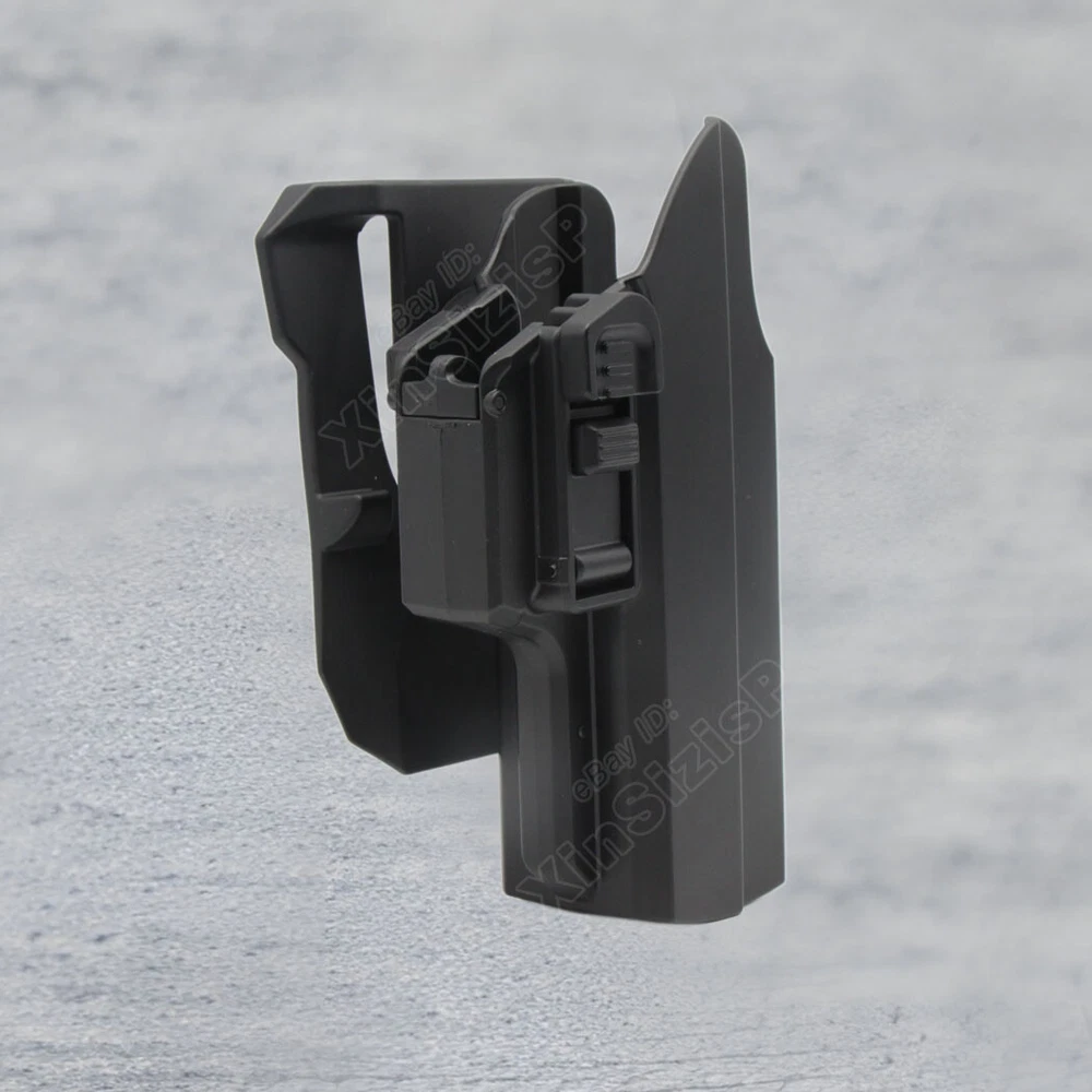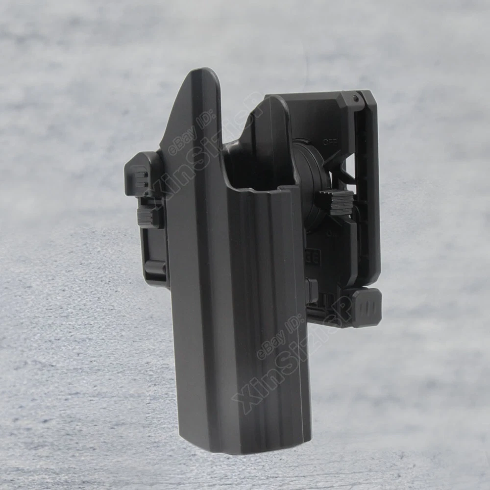 High Quality Military & Police Grade Polymer OWB Holster Specially Designed For Fast Draw During Duty Or Shooting Competition. This is a Combo Holster Comes With Paddle and Belt Clip Attachment ,which means you can swap paddle type to belt clip type with the Allen key by yourself. Outside Waistband Tactical Holster This holster fits 9mm, 10mm, and .40 caliber firearms but is not compatible with .45 caliber models. Holster Fit Glock 19 (Gen 1-5) Glock 19X Glock 17 (Gen 1-5) Glock 21 (Gen 1-5) Glock 26 (Gen 1-5) Glock 27 (Gen 1-5) Glock 31 (Gen 1-5) Glock 32 (Gen 1-5) Glock 33 (Gen 1-5) Glock 45 (Gen 1-5) Glock 22 (Gen 1-4) Glock 23 (Gen 1-4) Holster Fit Smith & Wesson M&P 9 M2.0 4.25" 9mm Luger Smith & Wesson M&P 10mm M2.0 4" 10mm Auto Smith & Wesson M&P 10mm M2.0 4.6" 10mm Auto Smith & Wesson M&P 40 M2.0 3.6" Subcompact .40 S&W Smith & Wesson M&P 9 M2.0 3.6" Compact 9mm Luger Smith & Wesson M&P 9 M2.0 3.6" Subcompact 9mm Luger Smith & Wesson M&P 9 M2.0 4.0" Compact 9mm Luger Smith & Wesson M&P 9 M2.0 5" 9mm Luger Holster Fit Walther P99 AS 9mm Luger Walther P99c 9mm Luger/.40 S&W Walther PPQ 9mm Luger Holster Fit Springfield XD 9, XD 40, 5" 9mm Luger/.40 S&W Springfield XD 9, XD 40, Full Size 4" 9mm Luger/.40 S&W Springfield XD MOD.2 4" Service 9mm Luger Springfield XD MOD.2 Subcompact 3.3" 9mm Luger Springfield XD Subcompact 3" 9mm Luger/.40 S&W Springfield XD-M 4.5" 10mm Auto Springfield XD-M 5.25" Competition 10mm Auto Springfield XD-M Elite 3.8" 9mm Luger Springfield XD-M Elite 4.5" 9mm Luger Springfield XD-S MOD.2 .40 S&W Holster Fit Beretta APX 9mm Luger/.40 S&W Beretta APX Compact 9mm Luger/.40 S&W Beretta APX Centurion 9mm Luger/.40 S&W Beretta APX Centurion Combat 9mm Luger Note: Not compatible with Beretta APX A1 Carry and Beretta APX Carry 3.5". Holster Fit Tisas Zigana PX-9 9mm Holster FitBRG9 Elite 9mm Holster Fit Sig Sauer P320 (9mm/.40) series all models Sig Sauer P220 (9mm/.40) series all models Sig Sauer P229 (9mm/.40) series all models Sig Sauer SP2022 (9mm/.40) series all models Sig Sauer P226 (9mm/.40) series all models Sig Sauer P228 (9mm/.40) series all models Holster Fit CZ P-07 9mm Luger CZ P-09 9mm Luger CZ P-10 C 9mm Luger CZ P-10 F 9mm Luger CZ P-10 M 9mm Luger CZ P-10 S 9mm Luger CZ P-10 SC 9mm Luger Holster Fit Sarsilmaz SAR 9 Sarsilmaz SAR 9X Sarsilmaz SAR 9 Compact Sarsilmaz SAR 9 SP Sarsilmaz SAR 9 Sport Sarsilmaz SAR 40 Sarsilmaz SAR K2P Sarsilmaz SAR B6 Sarsilmaz SAR B6C Sarsilmaz SAR B6C 7.65 Sarsilmaz SAR B6C-LR Sarsilmaz SAR B6C-S Sarsilmaz SAR CM9 Sarsilmaz SAR ST9 Sarsilmaz SAR 2000 Sarsilmaz K12 Sport Sarsilmaz K12 Sport X Sarsilmaz K11 Sarsilmaz AR-24 Sarsilmaz AR-24K Sarsilmaz Kilinc 2000 Light Sarsilmaz Kilinc 2000 Mega Sarsilmaz P8 L Sarsilmaz P8S ( I t perfect fit the gun with Optic Mou nt Mini Sight a bove on the end of the barrel , B ut without laser and no embedded chassis, and no flashlight style ) Ease and Comfort Push side buttons to achieve the fast opening and closing, unique design allows for belt carrying or vest carrying, perfectly used by duty holsters, uniformed law enforcement officers, security personnel, military personnel, private persons, and shooting sports holsters. And it fits closer to the body which can achieve better concealment under clothes. High S afety Secure Level II Retention - Locking system restrain pistol in the holster to ensure ultimate safety, activate the release by pressing the button with the index finger to achieve gun access . A djustable Easily set Holster 360 degrees to your desire position with Allen key, compatible belt width up to 2 inch . Tough & Durable Material Custom-molded body made of polymer stronger than leather that will wear out, adapt to every bad environment In the Package: · 1*Holster with Paddle Attachment · 1*Belt Clip Attachment · 1*Allen Key Shipping: Ships same day or next except Sundays and Holidays ! Free shipping! Ship by USPS First Class Package. 100% MONEY BACK GUARANTEE. Any question please be free to contact with us .Thanks!