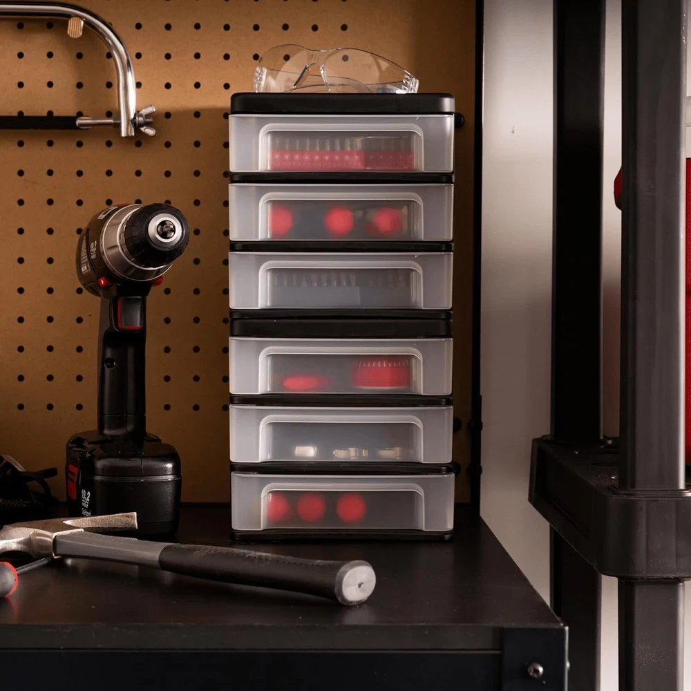 MUTLIPURPOSE ORGANIZER: The IRIS USA drawer is perfect for your home office, small business, classrooms and more! Hold your tools, papers, product stock, and other supplies, and easily see stored items and how much with the clear drawers GRAB & GO CONVENIENCE: The lightweight drawers are easy to open to keep things accessible; The tabs at the end of each drawer will prevent them from falling out, but are easy to remove with just a light squeeze on the sides MAXIMIZE SPACE & ORGANIZE EFFORTLESSLY: Utilize vertical space with our stackable organizer and give yourself more room to store your stock or supplies, and use the indented top for extra storage or display space SUSTAINABLE CHOICE: Join us in protecting the planet with GreenCircle Certified Recyclable Materials; Sustainable solutions for a better tomorrow GREAT SIZE: Dimensions: 8.38"L x 6.75"W x 6.88"H