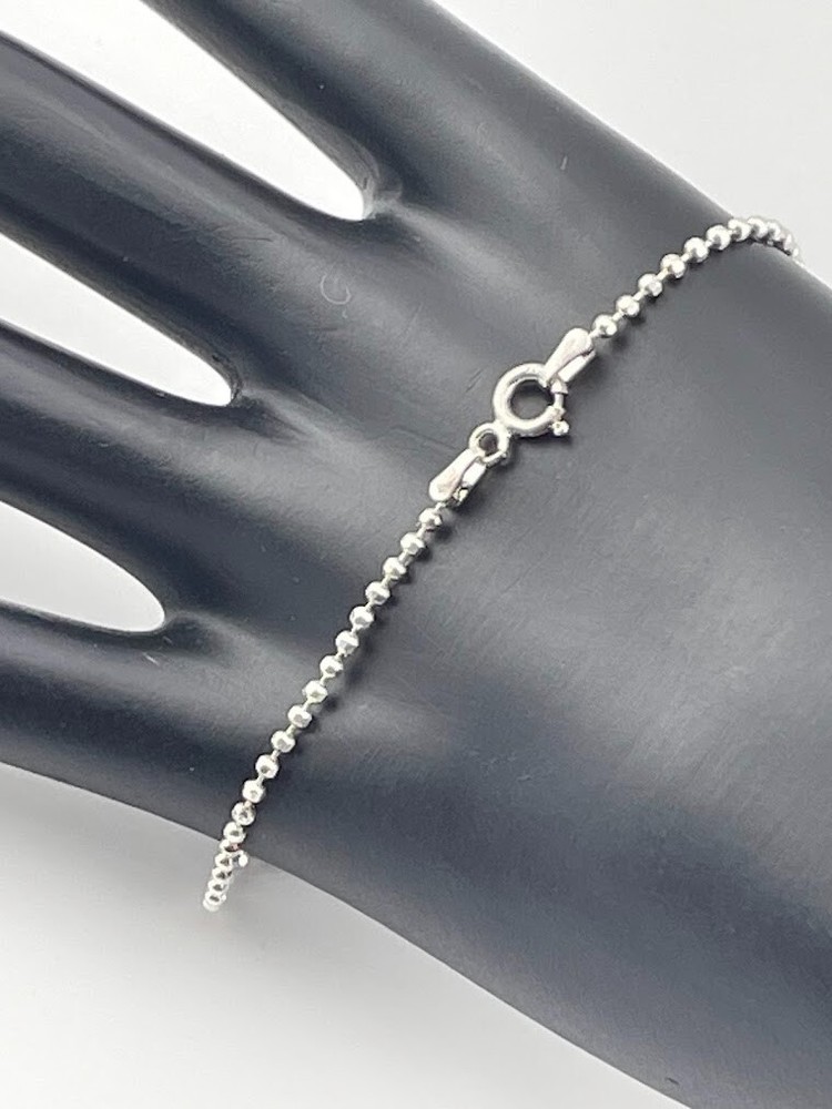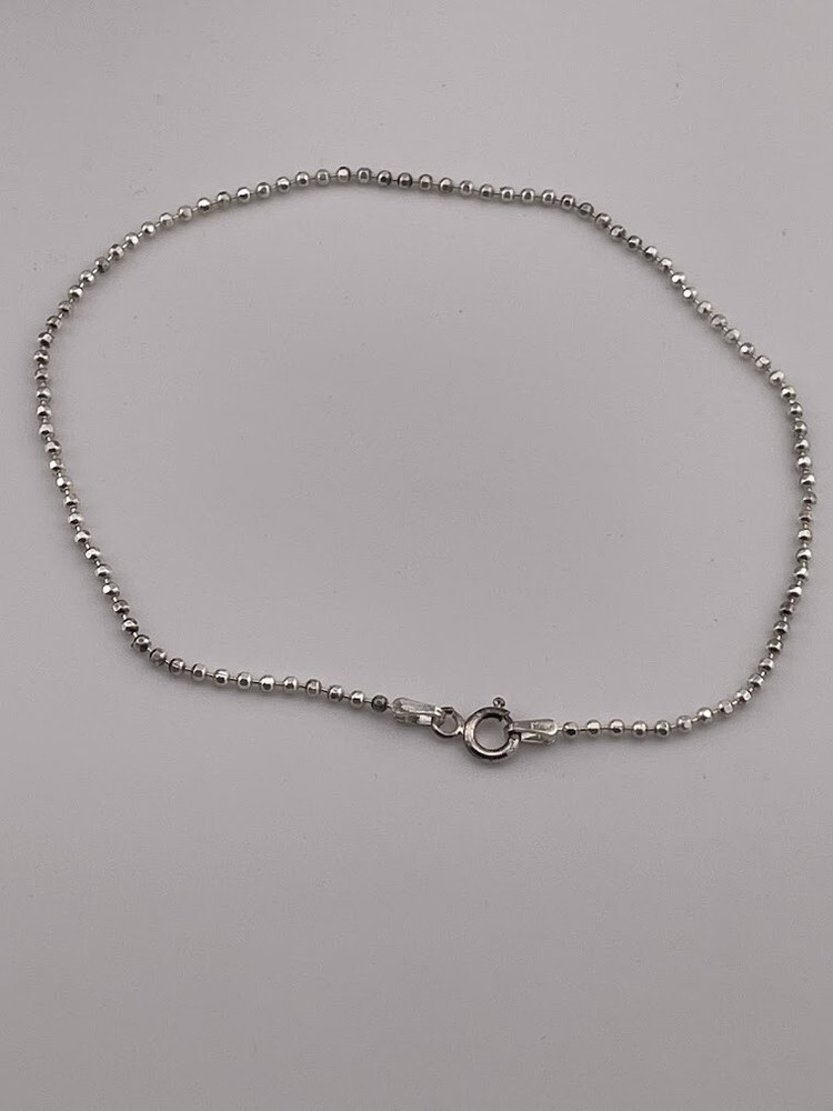 ITALY 925 STERLING SILVER 1.8MM DIAMOND CUT BALL BEAD CHAIN ANKLET 9.5" BOHO 980 SURFER ****************************** Thank you for your interest in our jewelry. We?d like to introduce ourselves. We are just a retired couple who love matching our customers with great jewelry. We?re not professional jewelers. To have the best shopping experience we like to recommend the following: Please measure your hand, wrist, finger or neck to ensure the best fit. We can use your measurements to help with sizing. Please ask all the questions you want. We know some stuff and, if we don?t, we?ll do the research. We like to learn too. More Stuff: If an item is described as ?gold over 925 sterling silver? this means it is gold vermeil. Vermeil is the process by which a layer of gold (usually 14k or 18k) is bonded to sterling silver. We only clean with gentle soap and warm water to avoid damage. The items we sell may be new or pre-owned and may have normal wear, slight damage, and/or tarnish. We make every effort to ensure the items we sell are as described. This includes testing to confirm metal purity if the item isn?t marked, and testing for gemstone identity. We try to put measurements in the jewelry description and include a photo of each piece with a U.S. quarter (25mm).