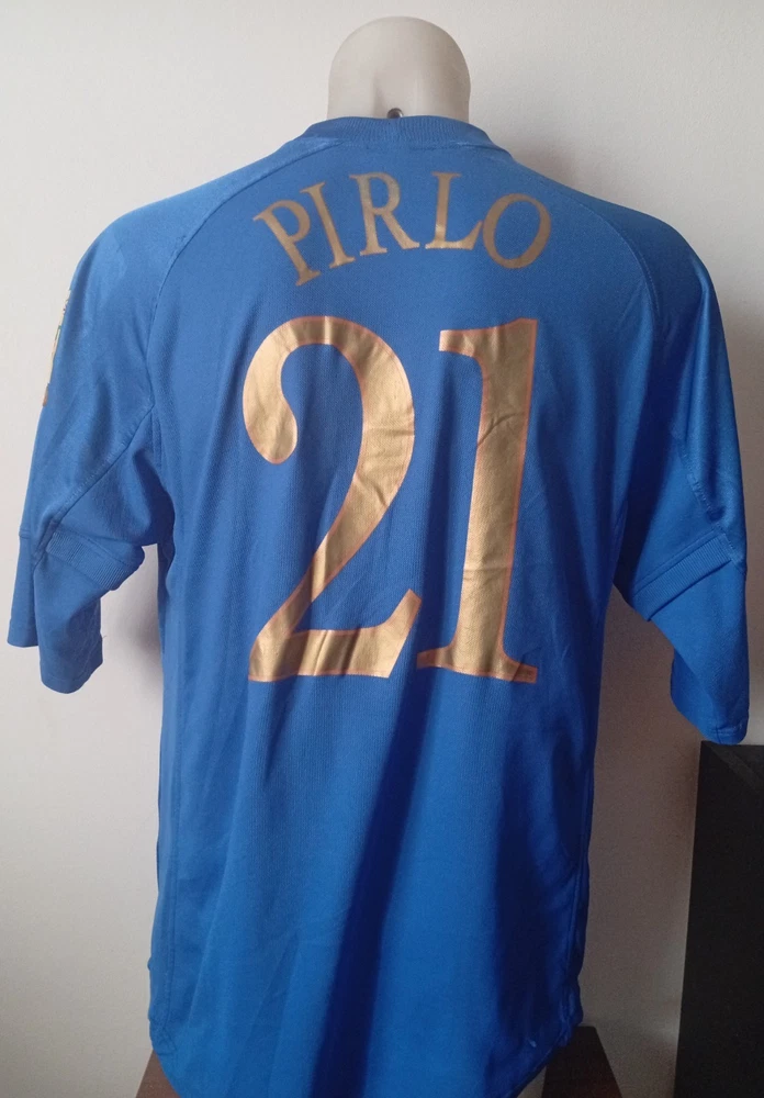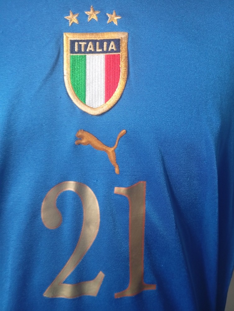 ITALIA MATCH WORN SHIRT ANDREA PIRLO EURO 2004 CARATTERISTICHE: LOGHI SUL PETTO RICAMATI NOME E NUMERO SUL RETRO TERMOAPPLICATI TOPPE SULLE MANICHE TAGLIA XL