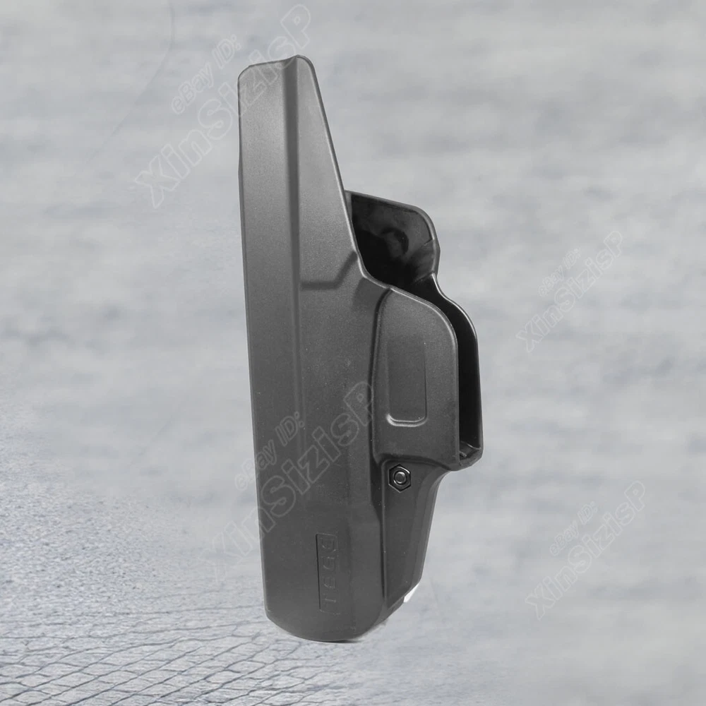 High Quality Military & Police Grade Polymer IWB Holster Specially Designed For Fast Draw During Duty Or Shooting Competition. Tactical Inside Waistband H olster Fit Glock 19 /19t /19x/32(Gen1-5) and Glock 23 (gen 1-4 ) ( I t can not fit the gun with Optic Mount Mini Sight a bove on the end of the barrel , and can not fit the gun with laser , embedded chassis, and flashlight style ) Adjustable by the Allen key that is provided with your holster to loosen or tight the screw on the belt loop and adjust. The retention of the holster can also be adjusted with the Allen key, by adjusting the two screws placed in front of the trigger guard. Unique belt J-clip sits under the belt and over the pants, which ensures more table releasing and holstering to prevent accidental shipping or falling. Compatible belt clip fits belt width up to 2 inches. Tough, Durable Material - Custom-molded body made of polymer stronger than leather that will wear out, adapt to every bad environment In the Package: · 1* Holster · 1*Allen Key Shipping: Ships same day or next except Sundays and Holidays ! Free shipping! Ship by USPS First Class Package. 100% MONEY BACK GUARANTEE. Any question please be free to contact with us .Thanks!