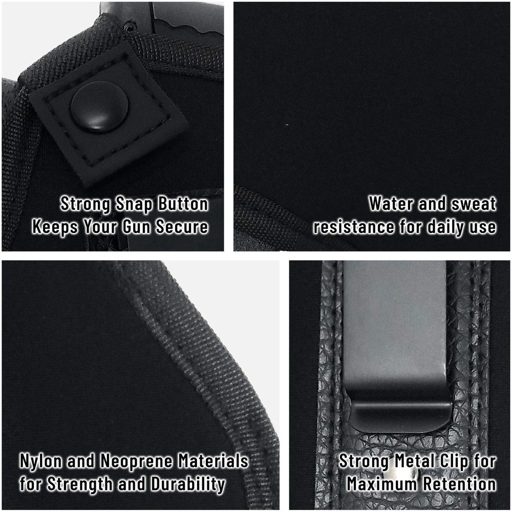 Strong Metal Clip for Maximum Retention Safe, Easy and Comfortable to Use as Concealment Double Stitched for Strength and Durability **** This is a LEFT HAND DRAW PRODUCT **** Fits: Glck 19 19X 23 25 26 27 28 29 30 32 33 36 38 39 43 48 | Springfield XDs | Taurus GX4, 707, SLIM, 703, 740, PT111 G2 Millenium Pro, PT911 | Walther PK380 / PPS / CCP | Colt Defender 3" | M1991A1 3.5" | Ruger SR9C, SR22, SR40c, P95 | SIG P239 229 250 C, Sig P365 XL | Kahr CW 40 | CT9 BERSA Thunder 9mm / .40 Caliber / .45 Cal, Bersa BP9cc 1911 3" | Browning 3" | S&W M&P c, Shield .45 / SD 9 / 40 VE/ Shield .40, S&W Bodyguard 2.0 | Diamondback DP 9mm | SCCY CPX-1 | Grand power P11 | CZ P07 | H&K Compact | Beretta PX4 Storm Compact | Interarms EPK | Magnum Research Micro Desert Eagle 9mm Steel Frame