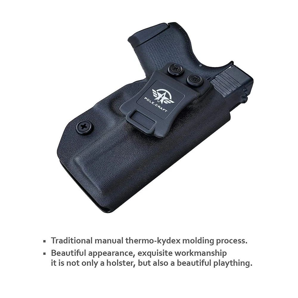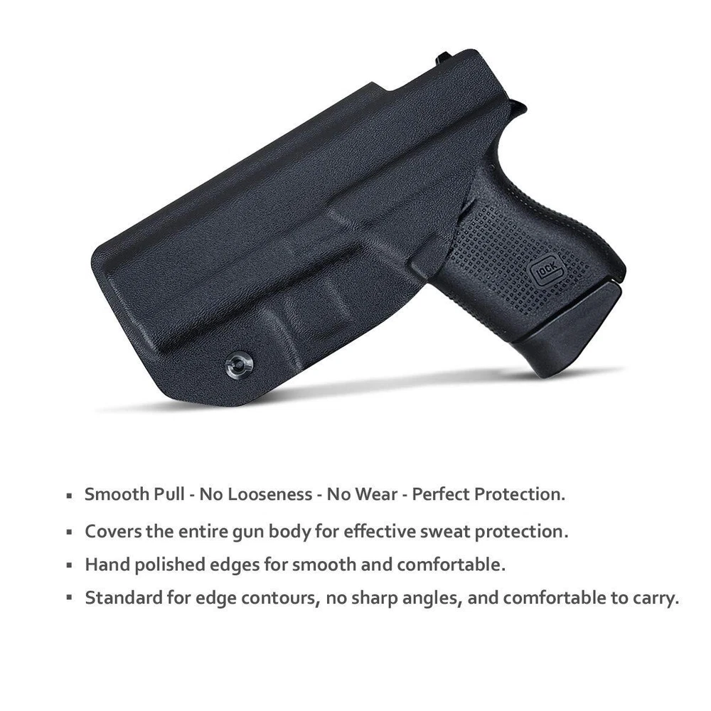 CARRY WITH CONFIDENCE: Please feel free to use our holster to protect for Glock 43 43X. This is our high-quality KYDEX IWB Holster tailored for Glock 43 / Glock 43X . It is not only highly precise, but also rugged and durable, and can be hidden and portable, so you can protect yourself anytime, anywhere.(Note: Not compatible with light/laser attachments) US .08” KYDEX HANDCRAFT: It is lightweight, sturdy, durable, sweat-proof, waterproof and washable, providing comfort and confidence in any situation. Our holster covers the entire body, effectively preventing sweat and avoiding clips Clothes can be safely and safely used. CUSTOMIZE THE CANT: Use the universally and easily available phillips screwdriver to customize the CANT of a 1.5-inch standard belt clip for faster gun removal and best hide under the garment. Nylon + fiberglass belt clips are secure and can be adjusted from 0 to 15 degrees to suit your habits. ADJUSTABLE RETENTION PRESSURE: Use a universally available phillips screwdriver adjust the screw to achieve the tightness adjustment, to achieve the best extraction strength, and strive for the fastest self-storage time. It can also be hung outside the belt for use as an OWB. Please choose another hand. LIFETIME WARRANTY: We confidently offer a lifetime warranty that gives you peace of mind when choosing IWB KYDEX Holster. If our Holster do not work as promised, please return a replacement.