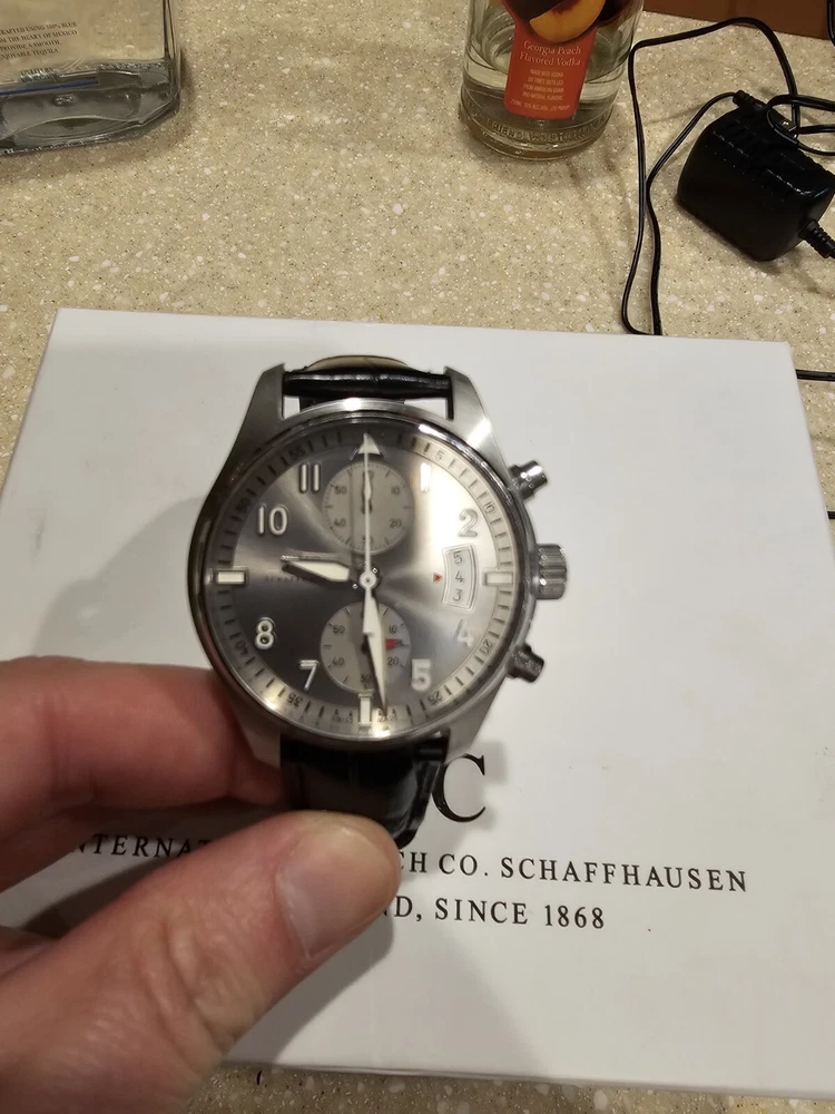 This IWC SPITFIRE wristwatch is a stunning piece for any casual occasion. With a 39mm brushed stainless steel case and a silver dial, this watch exudes elegance and sophistication. The watch features a mechanical (automatic) movement, water resistance of 60m (6 ATM), and a black leather band. The watch comes with a manual/booklet and is a 2010-2019 model. It is not vintage and does not have service records or a seller warranty. The IWC SPITFIRE is a perfect addition to any watch collection and is sure to turn heads.