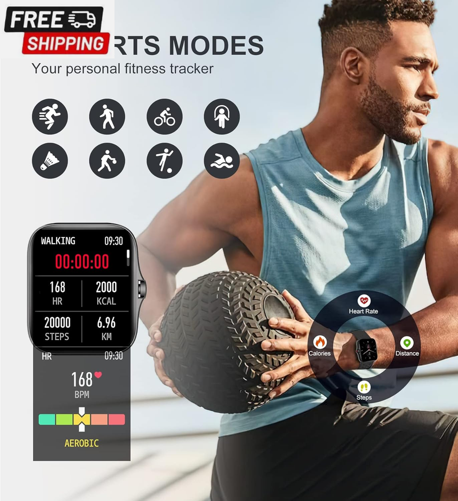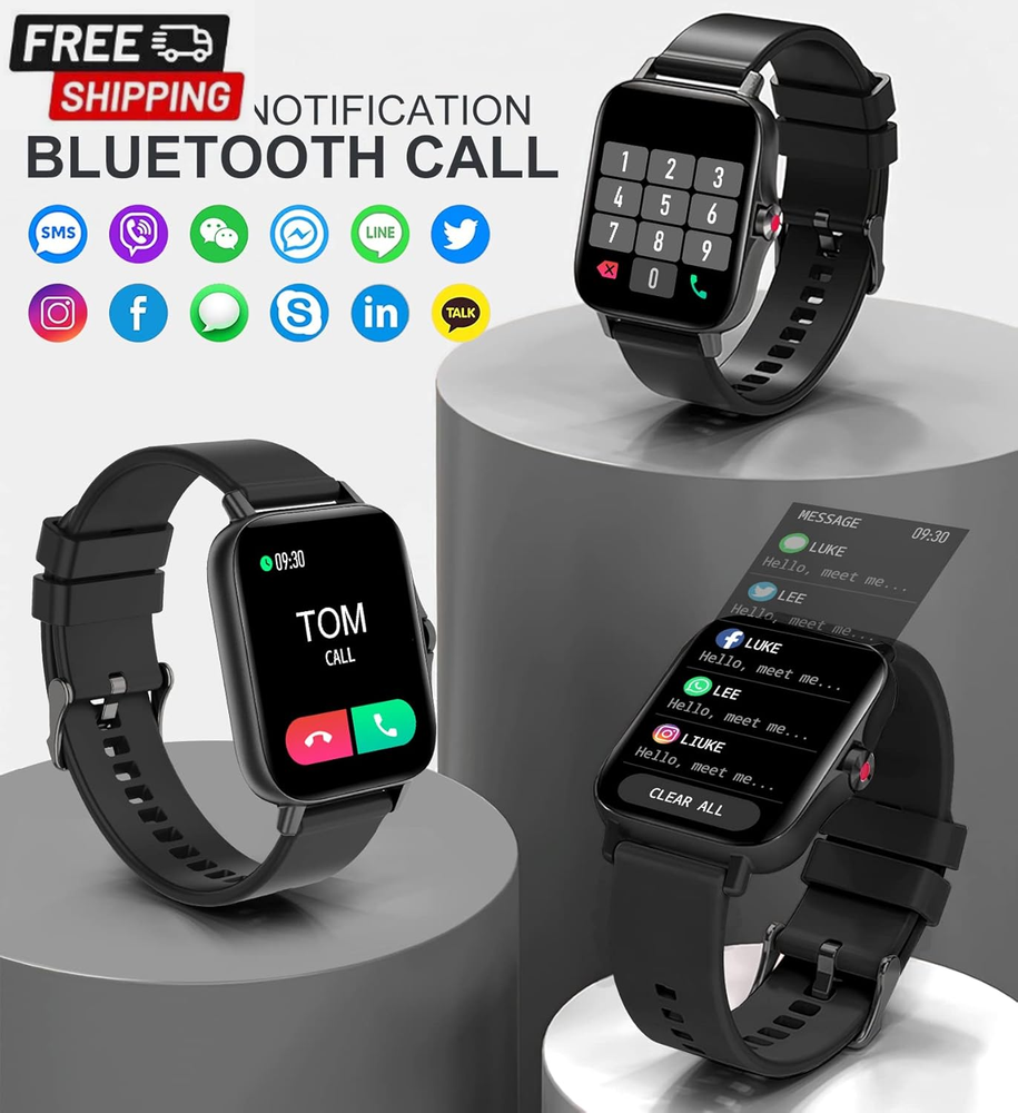 Fast Shipping On All Items 30 Days Money Guarantee Customer Support Excellent Service 100% Satisfaction Satisfaction Guaranteed Iaret Smart Watch for Women Men (Answer/Make Call), Fitness Tracker for Android Ios Phones Waterproof Smartwatch 1.7" HD Full Touch Screen Activity Trackers Heart Rate Sleep Monitor Pedometer, Black Specification Item model number Partielle Aktualisierung Style Modern Operating System Android & iOS Battery Cell Composition Lithium Ion Special Feature function(f) {var _np=(window.P._namespace("DetailPageProductOverviewTemplatesJava"));if(_np.guardFatal){_np.guardFatal(f)(_np);}else{f(_np);}}(function(P) { P.when('A').execute(function(A){ A.on('a:truncate:po-attribute-truncate-1:updated', function(data) { var isTruncated = !data.truncateInstance.getIfTextFits(); var seeMoreElement = document.getElementById('po-attribute-see-more-id-1'); if(seeMoreElement) { seeMoreElement.style.display = isTruncated ? '' : 'none'; } }) }); })); Sleep Monitor, Pedometer, Notifications, Alarm Clock, Calorie Tracker, Camera & Music Player Control, Cycle Tracking, Gesture Control, Sedentary Reminder, Time Display, Activity Tracker, Phone Call, Heart Rate Monitor See more Product Dimensions 1.73 x 1.54 x 0.47 inches Connectivity Technology Bluetooth Item Weight 7.8 ounces Shape Rectangular Wireless Communication Standard Bluetooth Standing screen display size 1.7 Inches Batteries 1 Lithium Ion batteries required. (included) Manufacturer Iaret Screen Size 1.7 Inches Brand Iaret GPS No GPS Item Description CALL RECEIVING/DIALING: After connecting to Bluetooth, you can directly make calls and answer calls on your watch. Iaret smart watch with text and call supports quick communication, information reminder, social media notification( Facebook, WhatsApp, Instagram, Twitter, etc.). With all notifications displayed on your wrist and alerted by vibration, you can keep your phone in your pocket without missing any important calls or messages when you're out walking, exercising, or seeing friends. SMART WATCHES FOR WOMEN MEN: Ultra-thin metal frame with 1.7" HD full touch color screen brings smooth touch and excellent visual experience. Dial store has 100+ free dials for you to choose from, you can also change your favorite picture as a watch face with one click. Comes with 2 bands, the stainless steel one is exquisite, while the silicone band is more casual. ALL-ROUND HEALTH MONITORING: This smart watch can detect your 24/7 heart rate, blood pressure and blood oxygen to get a better understanding of your health (Not for medical use). The high-performance motion sensor monitors sleep status automatically and provides comprehensive sleep quality analysis (deep sleep, light sleep and awake). You can also use the Female Physiological Cycle, Drink Reminder and Sedentary Reminder features to help you make reasonable adjustment on your lifestyle. ALL DAY ACTIVITY & FITNESS TRACKER: As a precision fitness watch, the activity trackers support 8 sports modes: walking, running, cycling, skipping, badminton, basketball, football, swimming. The fitness trackers for women men accurately track all-day activities such as steps, distance, calories, exercise time and heart rate. And you can use the stopwatch tool to time your run. The best choice for fitness enthusiasts. EVERYDAY FEATURES AT THE READY: iOS Android smart watch for women men is equipped with a 230 mAh large capacity battery, only takes 2 hours to get fully charged and can be used for 3-7 days (Note: depends on individual usage). IP67 waterproof watch, so you don't have to take off while washing your hands, not suitable for diving, shower or sauna. More practical tools such as mobile music playback and photo control, weather display, find watch, timer, alarm clock, etc. Product Description Iaet Smartwatch Make and Receive Calls Bluetooth Voice Call Watch: Bluetooth Call Smartwatch/Receive Messages/SNS Notification(Can not reply message). Clear bluetooth call texture, free your hands anytime, anywhere, make answering and making calls more efficient, easy to deal with home, work, sports and other scenarios. You can keep your phone in your pocket without missing any important calls or messages! All-round Health Monitoring: Heart Rate/Blood Oxygen/Blood Pressure Monitor Watch, Sleep Tracker Watch Fitness Tracker: Multiple exercise modes, display steps, distance, calories, exercise time and heart rate Smart Watch For Android And Ios Phones: Support iOS 7.1 and above, Android 4.4 and above A variety of functions, let you enjoy the life experience that technology brings to you. Your Ultimate Fitness Assistant You can check the exercise distance, speed, heart rate change, calories burned, etc. on the activity tracker watch to help you record data while exercising, so you can get in perfect figure and exercise more professionally. Provides 8 sports modes (walking, running, cycling, skipping, badminton, basketball, football, and swimming). The new multifunctional Bluetooth call smart watch makes your life more convenient and comfortable Weather Forecast: Keep your phone and watch connected, and the watch can synchronize the weather forecast function. You can see the air quality index and the recent weather conditions on the fitness watch. Remote Control Camera: You can take selfies or group photos with better pose or photo vision. Turn on the camera function in the "Da Fit" app and easily control your phone camera with the smart wristband. IP67 Waterproof: The water resistant design is perfect for sports enthusiasts. You can wear this men's watch whether it's for daily hand washing or rainy days. Note: please don't use in diving, hot water, or environment with corrosive liquids and hot steam. The waterproof function is not permanently effective, and the protective performance may be reduced due to daily wear and tear. Stopwatch And Timer Function: Which can help you calculate how much time you need for each exercise or complete the training within the targe