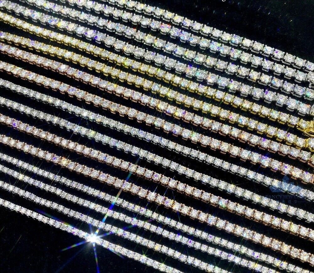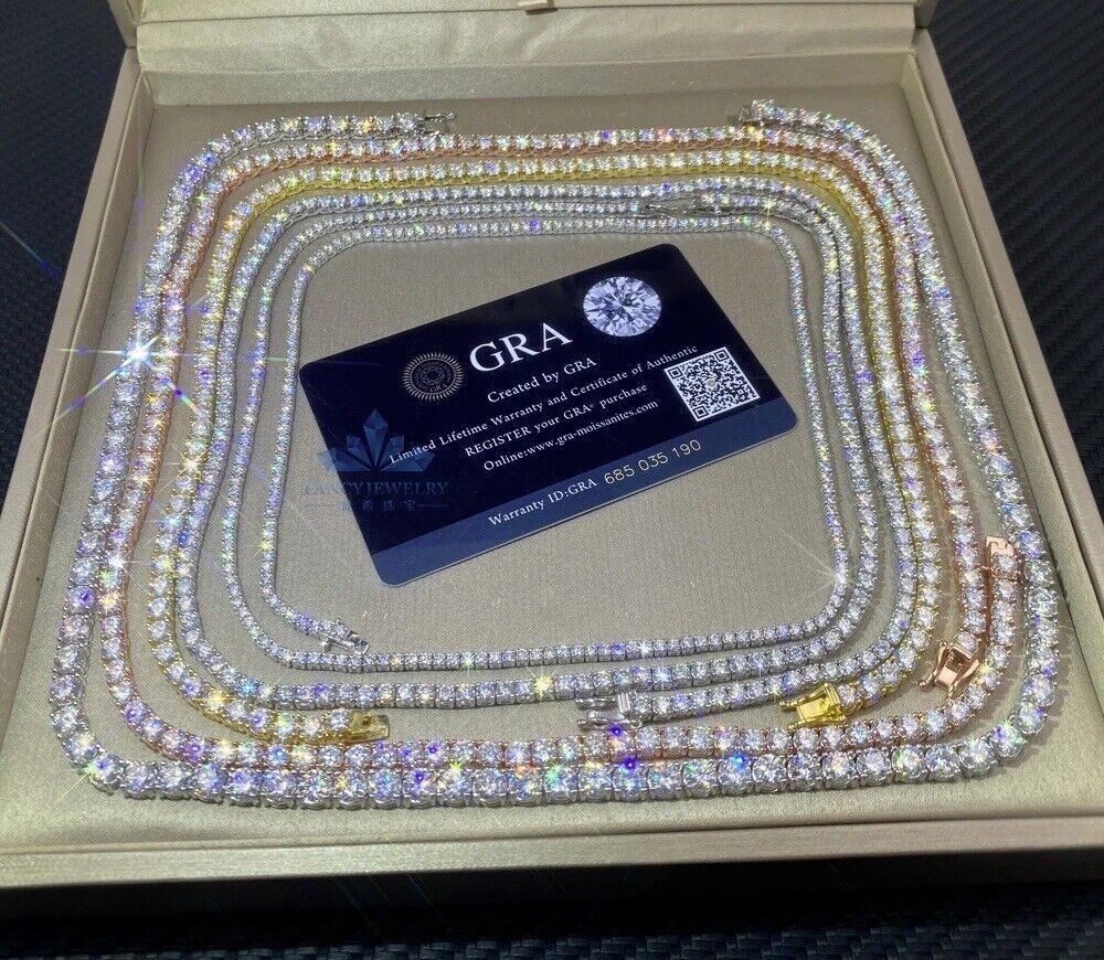 $ 31.153mm Moissanite S925 Sterling Silver Tennis Chain Necklace 22 Inch VVS D Color