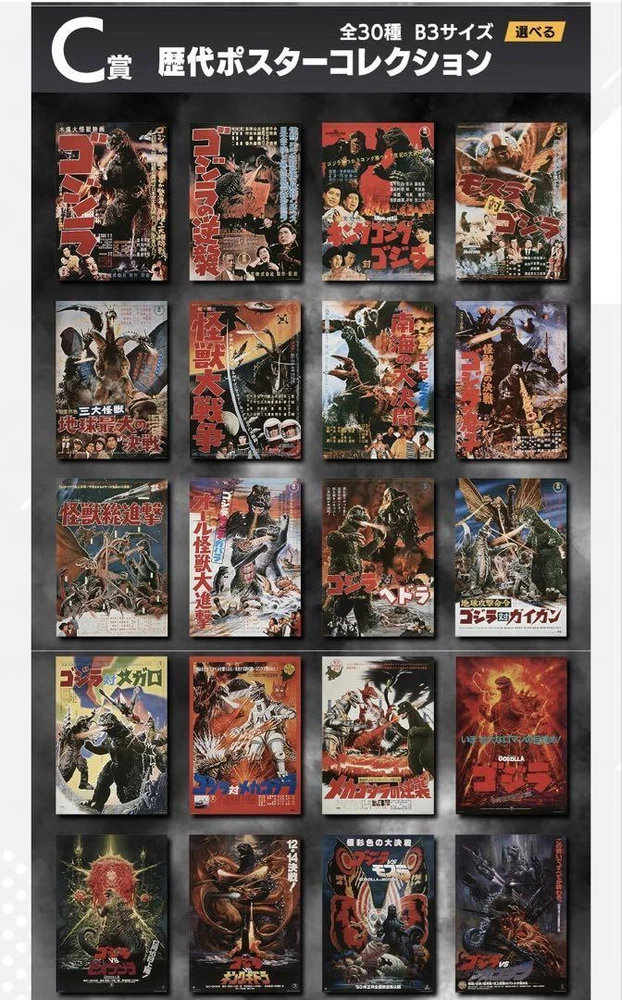 Item Title Ichibankuji Godzilla C Award Past Poster Collection All 30 Types Comp Set F/S-M4 Payment Supports managed payments Please pay within 5 days after auction is finished. About Us We are located in Japan. It's our pleasure to make you happy by proposing our recommend item. If you have any questions or request about items, please feel free to ask us. International Buyers - Please Note: -Import duties, taxes, and charges are not included in the item price or shipping charges. These charges are the buyer's responsibility. -Please check with your country's customs office to determine what these additional costs will be prior to bidding/buying. -These charges are normally collected by the delivering freight (shipping) company or when you pick the item up - do not confuse them for additional shipping charges. -We do not mark merchandise values below value or mark items as - gifts - The US and International government regulations prohibit such behavior. Thank you for your understanding.