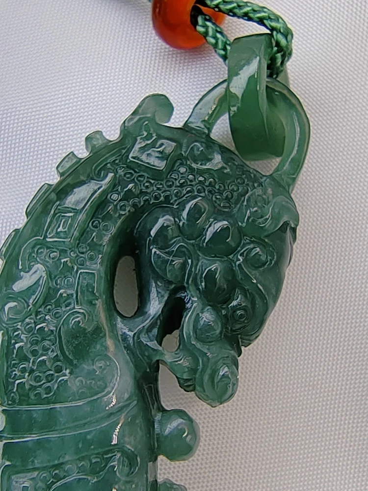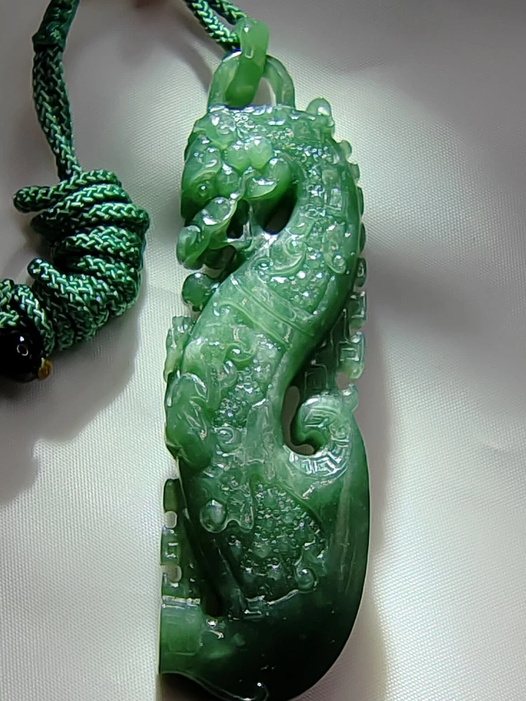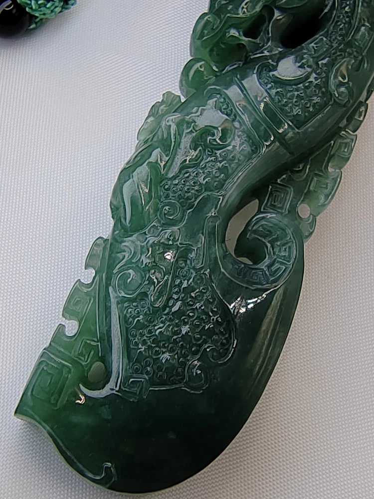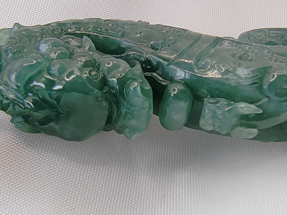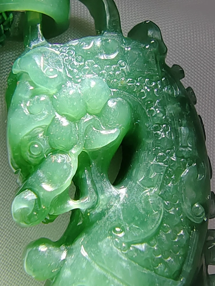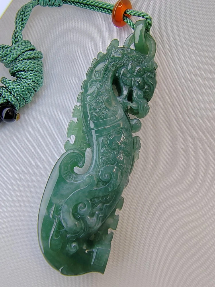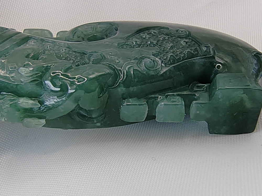 Natural Ice Bluish Green Jadeite Jade Dragon Pendant Fine Hollow Hand Carving Icy Ice Bluish Green Natural Jadeite Jade Dragon Pendant for Prosperity and Longevity With certificate (Authentic Type A Jadeite) 天然翡翠 - 镂空精雕活环冰种蓝水天然翡翠吉瑞祥龙牌子 / エメラルドドラゴンペンダント 备证书 (A货天然翡翠) *Certificate No - GFR00200714381 *Materials - 100% Natural Jadeite Jade *Refractive Index - 1.66 ( spot measurement ) *Jadeite Size - appr ox - 79.70mm/22.20mm/11.60mm *Weight - 36.97 grams *Carat - 184.85 carats *Original - Guatemala / Carved and Refine in China *Package - 1 X Pendant with String / 1 X Gift Box / 1 X Certificate *Delivery - Worldwide Free Shipping Video Display Link :- https://youtu.be/VfGPDp4u5_4 Only One Unit Available ************************************************************************ This jadeite pendant is an exceptionally rare and finely handcrafted treasure, belonging to the icy bluish green variety of jadeite. Crafted with meticulous skill, it features delicate hollowing and intricate carving, forming the image of an auspicious dragon. This exquisite piece comes with a certificate, verifying its status as Grade A natural jadeite. Its dimensions are approximately 79.70mm/22.20mm/11.60mm, with a weight of 36.97 grams, equivalent to 184.85 carats. Jadeite, as a precious gemstone, is highly sought after for its rarity. This pendant not only holds significant collectible value but also represents a fusion of carving art and jewelry craftsmanship. The auspicious dragon symbolizes authority and good fortune, making this pendant not only an artistic masterpiece but also a symbol of luck and blessings. Its presence not only provides visual enjoyment but also embodies people's aspirations for beauty and happiness. This exquisite piece can truly be described as a crystallization of carving art and jewelry. A slight difference in color compositions as shown in the photos may occur as with all colored gemstones. Color changes under different lighting conditions, for example indoors or outdoors, and even the time of day can make the stone's color look slightly different. We do our best to display the colors as we perceive them. Color perception is highly personal, some people perceive more colors than others, and colors may appear differently on different screens and devices due to differences in screen hardware and device display settings. Kindly take this into consideration before purchasing. The Rarity and Collectible Value of Natural Jadeite Jadeite, often referred to as "imperial jade" due to its historical association with royalty, is a gemstone of unparalleled rarity and enduring collectible value. Its captivating allure lies not only in its exquisite beauty but also in its remarkable geological formation, making it a treasure sought by collectors and connoisseurs worldwide. 1. Geological Rarity : Natural jadeite is exceptionally rare, originating from remote deposits in Myanmar (Burma), where geological conditions of high pressure and low temperature over millions of years have given birth to this magnificent gemstone. It is estimated that less than 1% of jadeite mined globally meets the stringent quality standards for fine jewelry and investment-grade pieces. 2. Vivid Color Palette : Jadeite is celebrated for its diverse and vibrant range of colors, from the iconic imperial green to mesmerizing lavender, radiant white, and fiery reds. The vividness of these hues is unparalleled, and collectors are often drawn to the challenge of acquiring specific colors and shades. 3. Transparency and Texture : The transparency and texture of jadeite are equally important factors contributing to its desirability. Fine jadeite possesses a crystalline clarity that allows light to penetrate and illuminate the gem from within, creating a luminous, almost ethereal quality. 4. Cultural Significance : Throughout history, jadeite has held immense cultural significance in various civilizations, including China, where it symbolizes virtue, integrity, and longevity. This cultural reverence adds an additional layer of allure to jadeite, making it a cherished symbol of heritage and tradition. 5. Investment Potential : Beyond its intrinsic beauty, jadeite is increasingly recognized as a solid investment option. Its scarcity, combined with growing global demand, has resulted in significant appreciation in value over the years. Savvy collectors and investors view jadeite as a tangible asset with the potential for long-term capital appreciation. 6. Expertise and Certification : Due to the nuanced nature of jadeite, it is essential to rely on reputable gemological expertise and certification when acquiring pieces. Certificates from recognized gemological laboratories authenticate the quality, origin, and natural properties of the gem, instilling confidence in both collectors and investors. 7. Heirloom Quality : Jadeite is often considered an heirloom, passed down through generations as a symbol of family heritage and prosperity. Its durability and timeless appeal ensure that it remains cherished for centuries. In conclusion, the rarity and collectible value of natural jadeite extend far beyond its aesthetic appeal. Its geological formation, captivating colors, and cultural significance make it a gemstone that transcends time and borders. For collectors and investors alike, jadeite represents not only a beautiful adornment but also a tangible piece of history and an enduring store of value. Jadeite Dragon - Dragon have been a auspicious totems since ancient times. Ancient kings were symbolized by dragons, Dragon symbolize power and dignity. In ancient times the jadeite culture is the perfect combination with a lot of culture, like Maya and Chinese culture. The dragon was only used by the royal family but in modern times, people still regard it as a symbol of bravery, strength, authority and even auspicious. The dragon is a representative of long