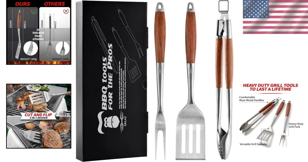 Ideal Gift: Heavy-Duty Rosewood 3-Piece BBQ Grilling Tools Set for Enthusiasts ‹ › ‹ › ‹ › ‹ › ‹ › ‹ › ‹ › ‹ › ‹ › Heavy-Duty Rosewood 3-Piece BBQ Grilling Tools Set Your Ultimate Gift for the Grilling Enthusiast Product Features: Real Rosewood Utensils: Upgrade your old, rusting grill tools with our elegant rosewood barbecue utensils set. Crafted from sturdy stainless steel, these tools feature a classic wood grain finish that complements any indoor or backyard setting. Essential Tool Set: This 3-piece set includes a spatula, fork, and tongs—the three essential tools required for all your outdoor cooking adventures. Ergonomic Contour Design: The natural wooden handles are smooth to the touch, making grilling a joyful experience. The forged stainless steel provides the durability needed to handle large cuts of meat effortlessly. 3-in-1 Spatula: Say goodbye to messy grilling! Our 3-in-1 spatula features a serrated edge that simplifies cutting and grilling. A built-in bottle opener at the handle's top adds an extra layer of convenience. Lockable BBQ Tongs: Ensure perfect grilling every time with our lockable BBQ tongs. Designed with a deep, wide grip and a lock closure for easy storage, they’re an essential addition to your grilling toolkit. Exquisite Gift Packaging: Each set comes beautifully polished and presented in a stylish gift box, making it the ideal present for any barbecue master or someone looking to enhance their grilling game. Why Choose Our BBQ Grilling Tools Set? If you’re searching for a unique gift for Father's Day, Christmas, anniversaries, or retirement, look no further than this Heavy-Duty Rosewood 3-Piece BBQ Grilling Tools Set. Its combination of elegance, functionality, and durability will make it a cherished addition to any grill enthusiast’s arsenal. Invest in the joy of grilling and make your outdoor cooking moments extraordinary with this stylish toolset—where quality meets elegance! Shipping Free & Fast Shipping - We offer free shipping to most of the USA with a normal delivery time of 3-7 days. However, due to the current situation, additional delivery time (up to 3 weeks) may be required for some items. Alternative Carriers - We may use alternative carriers (e.g. USPS, FedEx, UPS, etc.) to ensure your package arrives safely and on time. Due to the use of multiple carriers, we are unable to provide a tracking number automatically. Handling Time - Orders are processed and shipped within 1-2 business days of receiving cleared payment. Shipping Restrictions - Shipping to Alaska, Hawaii, Puerto Rico, Guam, and other US territories may incur shipping charges or delivery restrictions. Please contact us before ordering, or your order can be refunded/cancelled. State Restrictions - There may be restrictions based on your state of purchase. For example, certain items may not be shipped to California due to state regulations. Contact for Tracking Updates - If you require tracking updates or have any concerns about the delivery of your order, please feel free to contact us, and we will be happy to assist you. Return Please see our eBay Return Policy. Thank you. Payment We accept all major credit cards, PayPal, and Apple Pay for your convenience. Your payment information is secure and encrypted to ensure a safe and seamless transaction. Please complete your payment within 3 days of purchase to avoid any delays in shipping. Feedback Your feedback is extremely important to us. We strive to provide the best products and customer service possible. If you are satisfied with your purchase, please take a moment to leave us a positive review. If you have any concerns or issues with your order, please contact us before leaving negative feedback. We are committed to resolving any problems and ensuring your satisfaction. Contact Us If you have any questions or concerns, please feel free to reach out to our customer support team. You can contact us through the eBay messaging system. We are available Monday to Friday, 9:00 am to 5:00 pm EST, and we will do our best to respond to your inquiry within 24 hours. Thank you for supporting our small family business! UPC: Not Set Unit Quantity: 2.61 lb Set Includes: BBQ Tool Set,spatula,fork,tongs Features: Dishwasher Safe,Easy Clean,Non-Stick,Rust Resistant,Heavy-Duty,Multi-Function,Lockable,Contoured Design Type: BBQ Tool Set Brand: Unbranded Number in Pack: 3 Color: Brown Handle Material: Wood Item Weight: 2.61 lb Size: Medium Head Material: Stainless Steel Finish: Polished Country/Region of Manufacture: Not Set Item Height: Not Set Item Width: Not Set Model: Not Set Year Manufactured: Not Set Number of Items in Set: Three-Piece Style: Modern MPN: Not Set Manufacturer Warranty: Not Set Unit Type: lb Personalize: Not Set