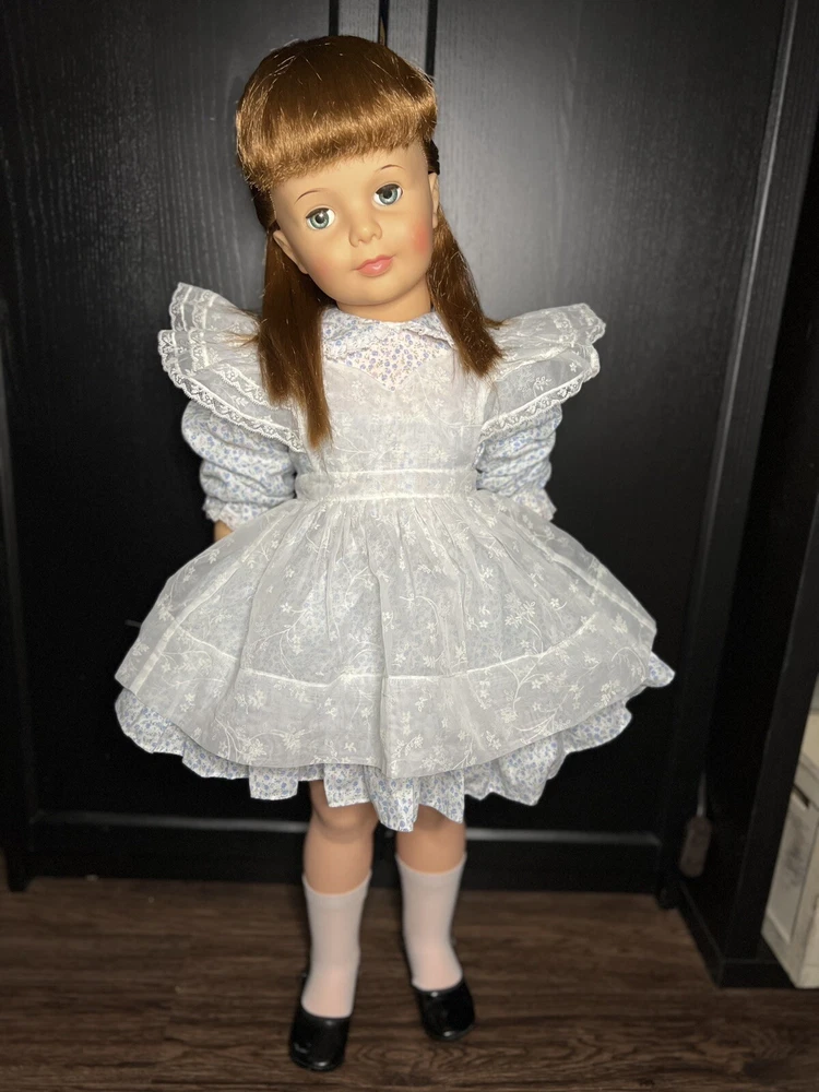 UPDATE: As of 4/29/24 all dolls up for sale will require immediate payment to checkout and purchase the item. Unfortunately I’ve had quite a lot of dolls being purchased lately and not getting paid for for weeks at a time and buyers wanting to cancel or hold dolls. I hate to have to set those new parameters but if I have something listed I need it to move on, I can’t be a holding department.❤️ Onto the doll in the spotlight! Up for sale is a restored and clean original Patti Playpal Doll from Ideal Toy Corp made in the early 60s. . This Patti is has walker legs, complete with all inside parts. She’s also been restrung on the inside. She has no cracks in the limbs or torso. Like most of these old dolls, she has play ware. So there’s scuffs and scrapes around, but nothing that detracts from her on display. Her arms are lighters as many of these dolls are getting lighter with age. She has aqua to almost a light green in her eyes, I’m sure all part of the oxidation process. Her eyes open and close and her eyelashes look good. She has brand new reproduction underwear and new socks. Her shoes are original with the rare Japan blue inside. Sadly the straps have broken off these as the leather has harder. She’s still display nicely As with all my dolls, they come from a smoke free home. Ok I’ve talked enough haha. Please see all pics and ask questions if needed! Thank you and hoping she finds a great new home for a professional collector.
