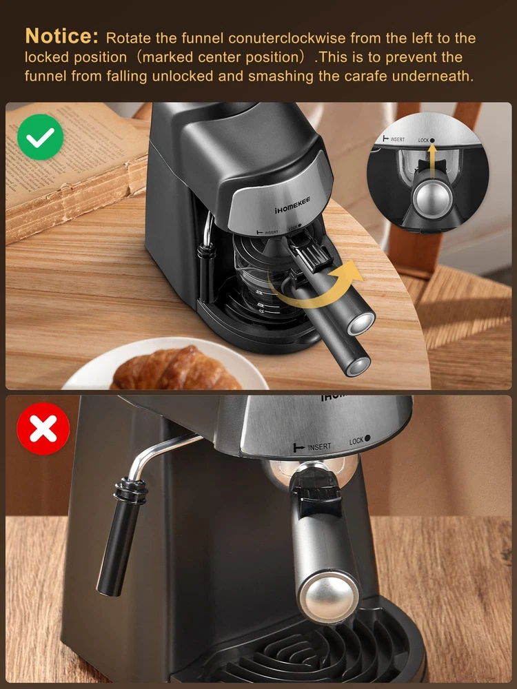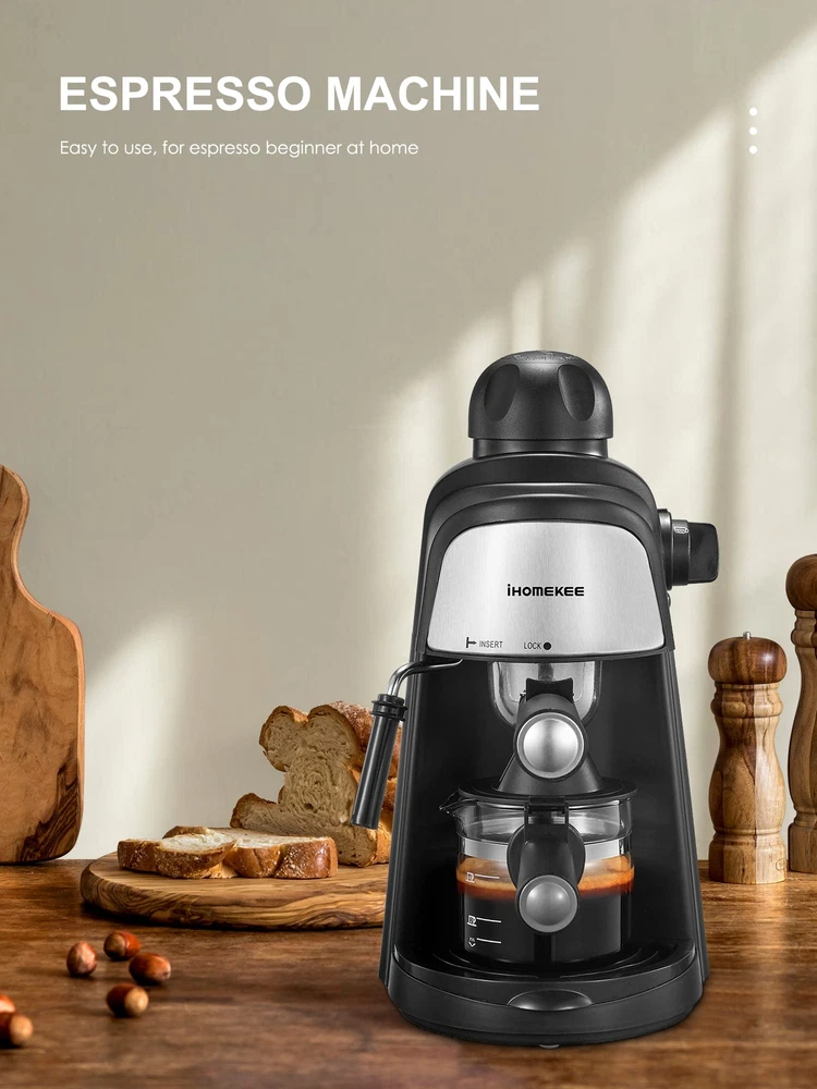 Ihomekee Espresso Machine, 3.5Bar Espresso and Cappuccino Machine with Fast Heating Function, 1-4 Cups Coffee Maker with Milk Frothing Function and Steam Wand (Black) FAST HEATING FUNCTION: The Ihomekee espresso machine comes with a fast heating in 90 second that provides the optimum extraction temperature for your coffee, while having spare hot water to brew your coffee when you need it, without waiting. EASY TO USE: Single switch knob with indicator light for easy operation, When the preheating is complete, the light off, for beginner without requiring much techniques and skills to make creamy cappuccino and latte art. BREW LIKE A PRO: Powerful 3.5 bar pressure espresso coffee maker can make 1-4 cups (240ml) espresso coffee and rich smooth cream. Even if you are a beginner, you can become a professional home barista with this machine. COMPACT DESIGN: The compact design of the espresso coffee machines saves lots of space, smaller and lighter. Dimensions are 13.3" high x 10.6" wide x 7.4" deep, weight only 4.7 pounds, best for home and kitchen use. TIPS: When installing filter holder, its handle must be aligned at lock position to ensure it’s locked tight. To ensure maximum flavor, Please use medium-coarse coffee ground.If you have any questions, please feel free to contact us and we will reply within 12 hours. IHOMEKEE Espresso Coffee Maker Shipping We offer FREE shipping on all orders! We use a selection of shipping services such as UPS, FedEx, USPS etc. We only ship to the lower 48 states, no APO/FPO addresses or PO Boxes allowed. Local pickups and combined shipping options are not provided at this time. Return You can return a product for up to 30 days from the date you purchased it. Any product you return must be in the same condition you received it and in the original packaging. Please keep the receipt. Payment We accept payment by any of the following methods: PayPal Please pay as soon as possible after winning an auction, as that will allow us to post your item to you sooner! Feedback Customer satisfaction is very important to us. If you have any problem with your order, please contact us and we will do our best to make you satisfied. Contact Us If you have any queries, please contact us via ebay. We usually respond within 24 hours on weekdays. Please visit our eBay store to check out other items for sale! Thank you for shopping at our store.