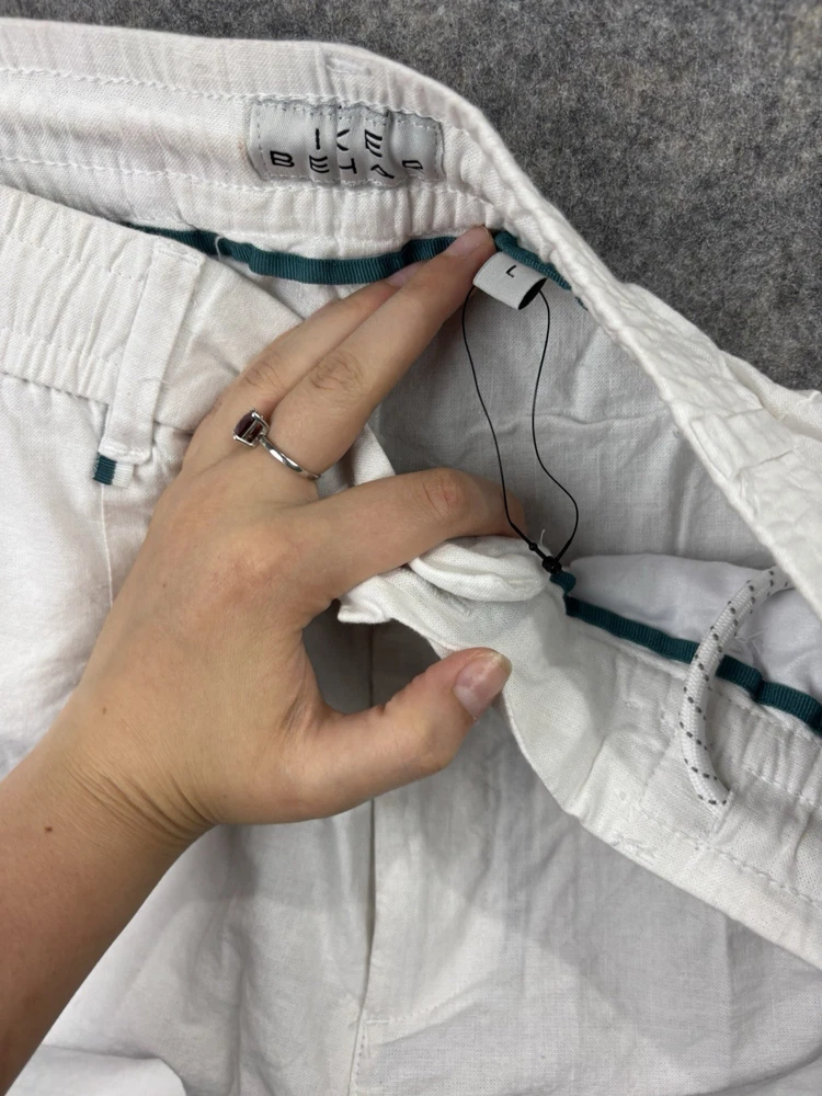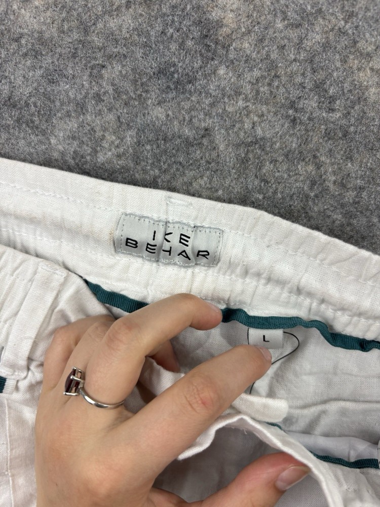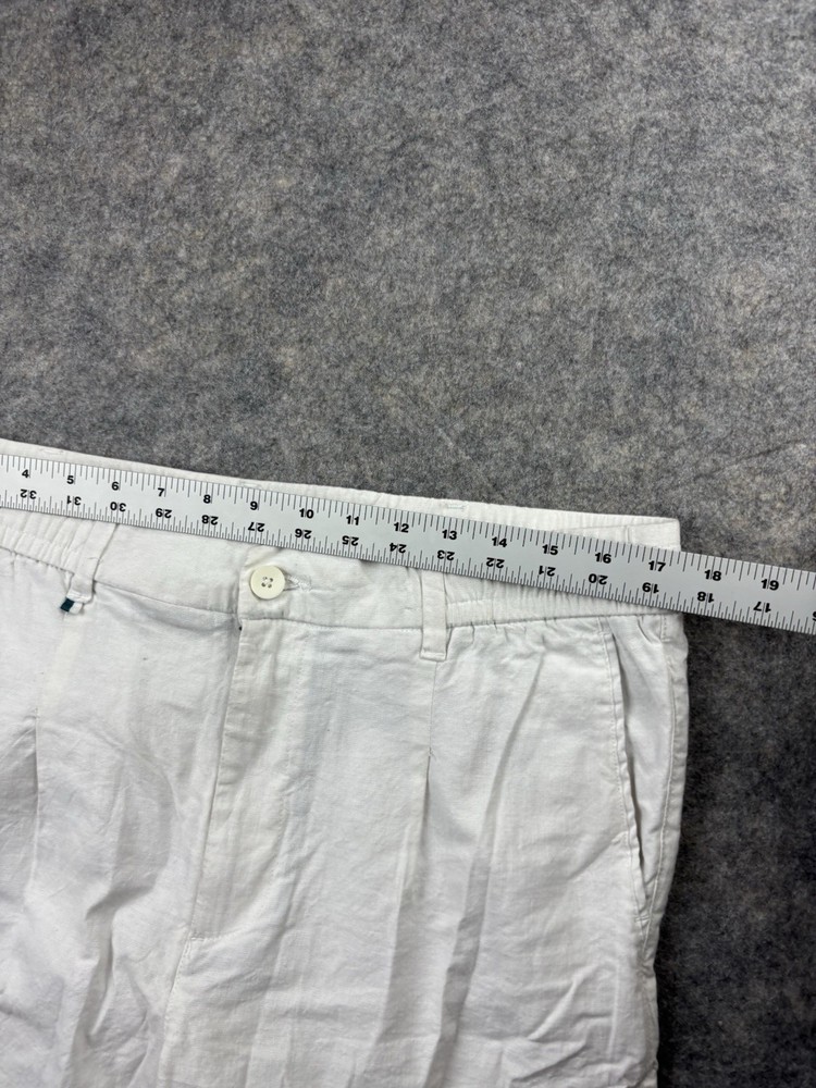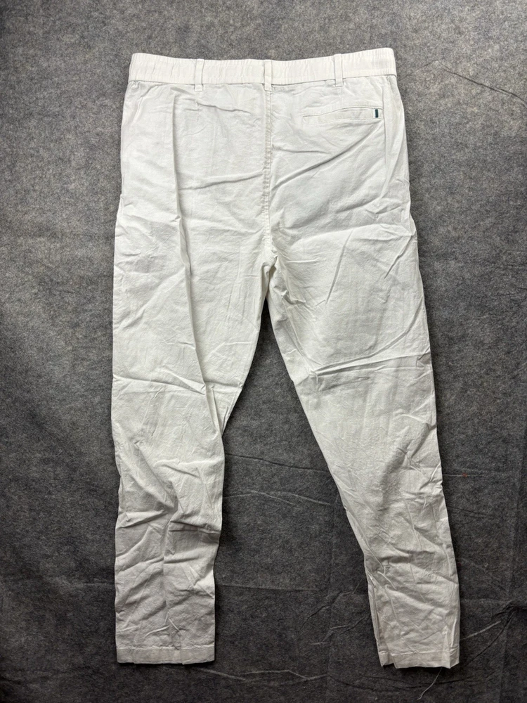 Ike Behar Pants Mens L Ivory Cotton/Linen Lightweight Tapered Pleated Travel. Condition is Pre-owned - Good. Shipped with USPS Ground Advantage.