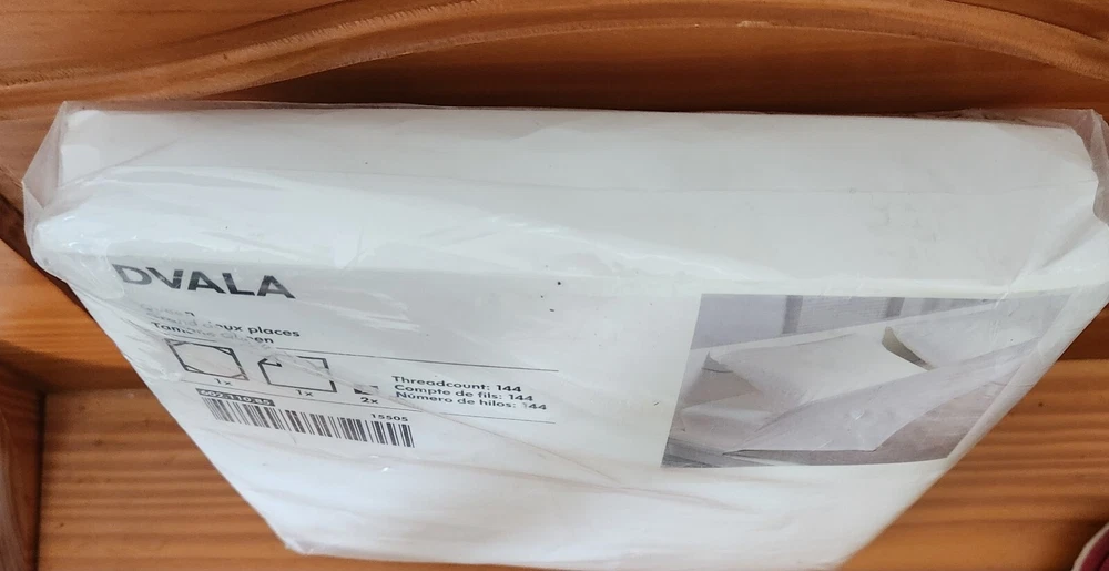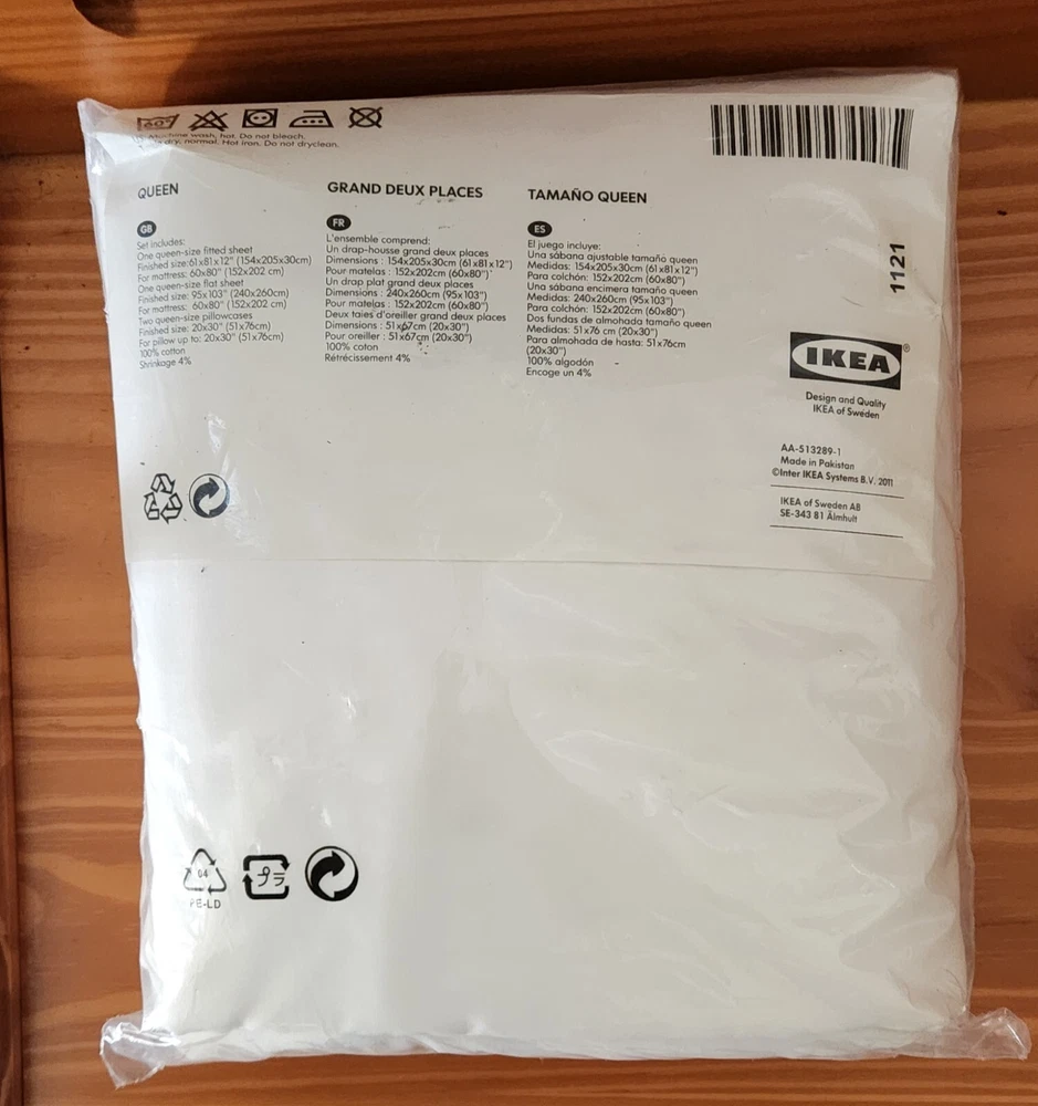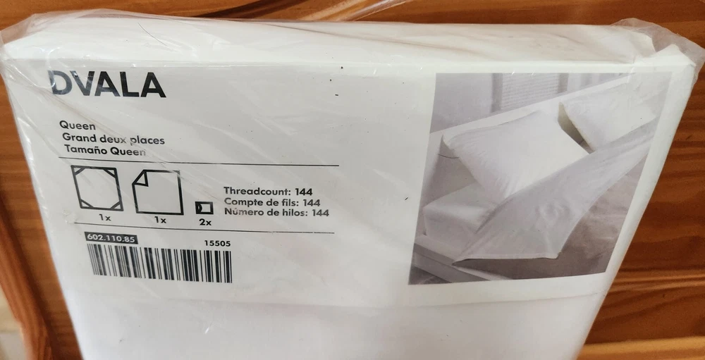 Ikea Dvala Sheet Set- Queen Size 1 flat sheet 1 Fitted Sheet 2 Pillow Cases Whte solid for 60x80 mattress and 20x30 pillows New, sealed