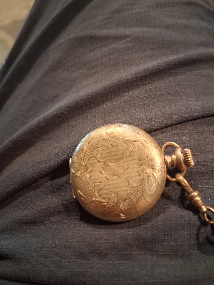 The product is an Illinois pocket watch with a gold filled hunter case, featuring a manual mechanical movement with 15 jewels. It has just been serviced and is a unique and stylish accessory for women. This pocket watch combines classic design with a touch of luxury with its gold filled case and precise craftsmanship, making it a desirable piece for collectors or watch enthusiasts looking for a functional and elegant timepiece.