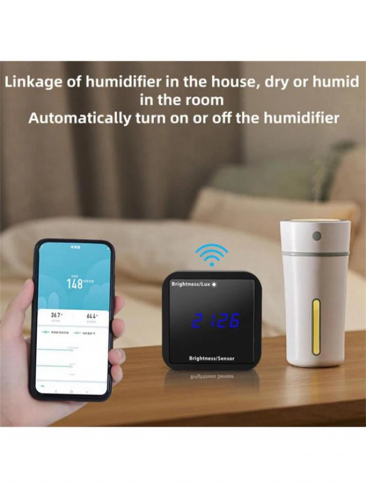 Illuminance Detection Display Linkage Smart Home Automated Intelligent Brightness Sensor Measurement Wifi Zigbee Voice Control Description: Color: Black Material: ABS Connection: WiFi/ Zig Bee(optional) Input Power: USB 5V/1A View Angle: 165° Brightness Detection Ranges: 0-60000Lux Temperature Detection Ranges: 0-60℃ Humidity Detection Ranges: 0-100% Item Size: 100 * 100 * 40mm/ 3.9 * 3.9 * 1.6in Item Weight: 150g/ 5.3oz Package Size: 109 * 109 * 58mm/ 4.3 * 4.3 * 2.3in Package Weight: 220g/ 7.8oz Specifications: 【Smart Home Linkage Illuminance Detector with WiFi Zigbee and Temperature Humidity Display】Experience the convenience of automated illuminance measurement and intelligent home linkage with this Graffiti WiFi Zigbee Smart Brightness Sensor. It features a modern and sleek design, and its advanced technology ensures accurate temperature and humidity detection. Meet your home automation needs with this innovative and high-performance sensor. 【Intelligent Home Automation Brightness Detector with WiFi Zigbee and Temperature Humidity Display】Create a smart home environment with this Intelligent Home Automation Brightness Detector. It utilizes WiFi and Zigbee technology to provide wireless connectivity, allowing you to control and monitor your home's illuminance levels from anywhere. With its temperature and humidity display, you can easily maintain a comfortable living space. Experience the convenience and energy-efficiency of this innovative device. 【WiFi Zigbee Smart Brightness Sensor with Temperature and Humidity Detection Display】Upgrade your home with this WiFi Zigbee Smart Brightness Sensor. It accurately measures the illuminance in your home, ensuring optimal lighting conditions at all times. With its temperature and humidity detection display, you can also monitor and adjust the climate in your living space. Enjoy the convenience and automation of this advanced sensor for a smarter and more comfortable home. 【WiFi Zigbee Smart Brightness Sensor with Temperature and Humidity Display】Enhance your home automation system with this WiFi Zigbee Smart Brightness Sensor. It provides accurate illuminance detection, keeping your home well-lit and energy-efficient. The sensor's temperature and humidity display allows you to monitor and maintain a comfortable living environment. With its sleek design and innovative features, this sensor is a must-have for modern homes. 【Smart Home Automated Illuminance Measurement with WiFi Zigbee and Temperature Humidity Display】Take control of your home's illuminance levels with this Smart Home Automated Illuminance Measurement sensor. It utilizes WiFi and Zigbee connectivity for easy integration with your home automation system. The sensor's temperature and humidity display ensures a comfortable living space. Upgrade your home with this intelligent and convenient device for a more energy-efficient and secure environment. Package Included: 1*Brightness detector 1*USB cable 1*Instruction manual Notes: WIFI protocol can be used independently The ZigBee protocol needs to be used with the tuya ZigBee gateway. Only tuya ZigBee gateways are supported