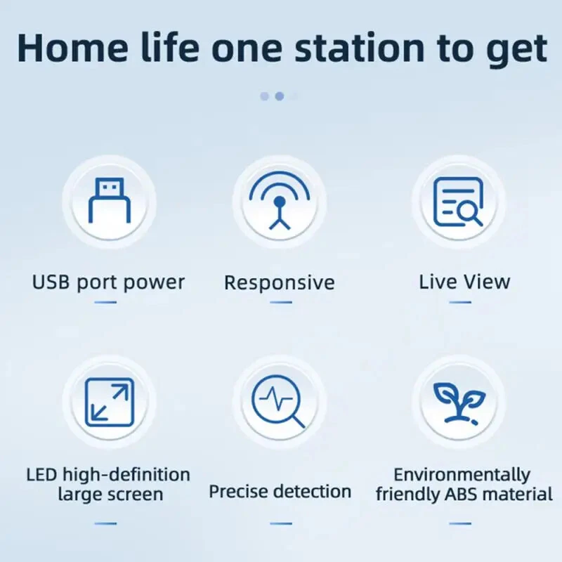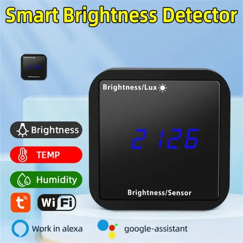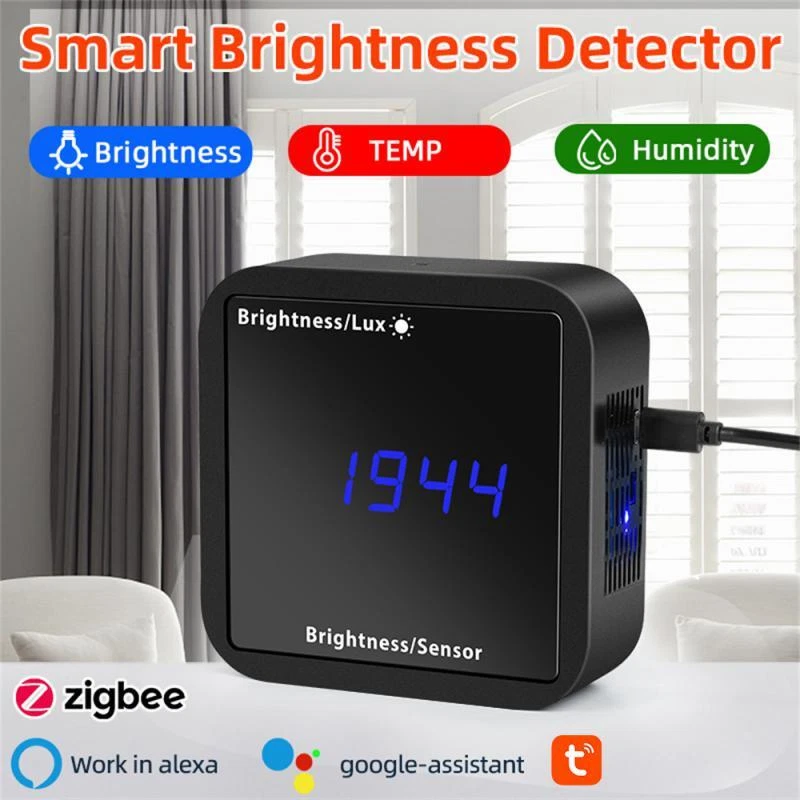 Illuminance Detection Display Linkage Smart Home Automated Intelligent Brightness Sensor Measurement Wifi Zigbee Voice Control Description: Color: Black Material: ABS Connection: WiFi/ Zig Bee(optional) Input Power: USB 5V/1A View Angle: 165° Brightness Detection Ranges: 0-60000Lux Temperature Detection Ranges: 0-60℃ Humidity Detection Ranges: 0-100% Item Size: 100 * 100 * 40mm/ 3.9 * 3.9 * 1.6in Item Weight: 150g/ 5.3oz Package Size: 109 * 109 * 58mm/ 4.3 * 4.3 * 2.3in Package Weight: 220g/ 7.8oz Specifications: 【Smart Home Linkage Illuminance Detector with WiFi Zigbee and Temperature Humidity Display】Experience the convenience of automated illuminance measurement and intelligent home linkage with this Graffiti WiFi Zigbee Smart Brightness Sensor. It features a modern and sleek design, and its advanced technology ensures accurate temperature and humidity detection. Meet your home automation needs with this innovative and high-performance sensor. 【Intelligent Home Automation Brightness Detector with WiFi Zigbee and Temperature Humidity Display】Create a smart home environment with this Intelligent Home Automation Brightness Detector. It utilizes WiFi and Zigbee technology to provide wireless connectivity, allowing you to control and monitor your home's illuminance levels from anywhere. With its temperature and humidity display, you can easily maintain a comfortable living space. Experience the convenience and energy-efficiency of this innovative device. 【WiFi Zigbee Smart Brightness Sensor with Temperature and Humidity Detection Display】Upgrade your home with this WiFi Zigbee Smart Brightness Sensor. It accurately measures the illuminance in your home, ensuring optimal lighting conditions at all times. With its temperature and humidity detection display, you can also monitor and adjust the climate in your living space. Enjoy the convenience and automation of this advanced sensor for a smarter and more comfortable home. 【WiFi Zigbee Smart Brightness Sensor with Temperature and Humidity Display】Enhance your home automation system with this WiFi Zigbee Smart Brightness Sensor. It provides accurate illuminance detection, keeping your home well-lit and energy-efficient. The sensor's temperature and humidity display allows you to monitor and maintain a comfortable living environment. With its sleek design and innovative features, this sensor is a must-have for modern homes. 【Smart Home Automated Illuminance Measurement with WiFi Zigbee and Temperature Humidity Display】Take control of your home's illuminance levels with this Smart Home Automated Illuminance Measurement sensor. It utilizes WiFi and Zigbee connectivity for easy integration with your home automation system. The sensor's temperature and humidity display ensures a comfortable living space. Upgrade your home with this intelligent and convenient device for a more energy-efficient and secure environment. Package Included: 1*Brightness detector 1*USB cable 1*Instruction manual Notes: WIFI protocol can be used independently The ZigBee protocol needs to be used with the tuya ZigBee gateway. Only tuya ZigBee gateways are supported