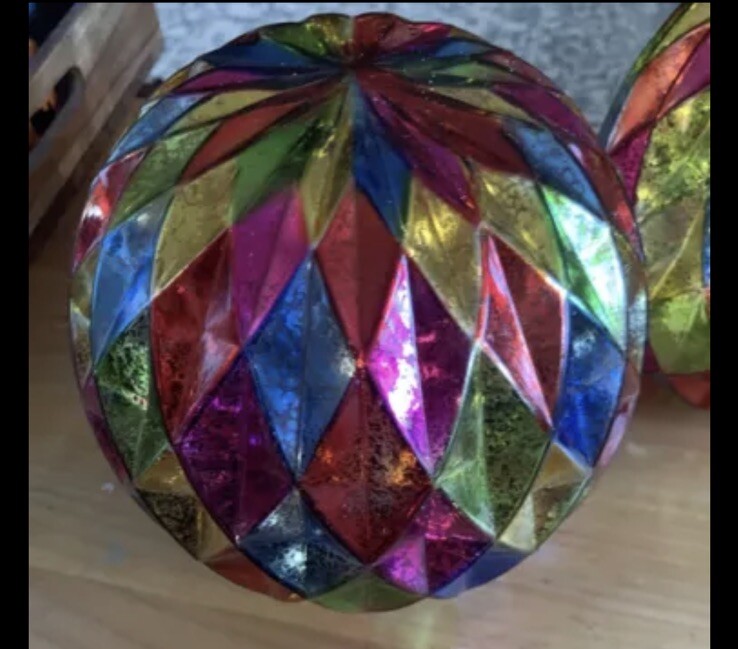 Box opened for condition, inspection, testing and photos. Other items in photo not included. Add some holiday cheer to your home with this stunning S/2 8" Illuminated Harlequin Spheres figurine by Valerie Parr Hill QVC. The multicolor glass figurine is perfect for Christmas or seasonal decorations and features a beautiful and intricate design that will delight all your guests. Celebrate the holiday season in style with this sold-out on QVC figurine that is sure to become a treasured addition to your collection. The figurine is crafted with the highest quality materials and is designed to bring joy and joyous memories to your home. Don't miss out on this amazing opportunity to add a touch of elegance and festive cheer to your living space.