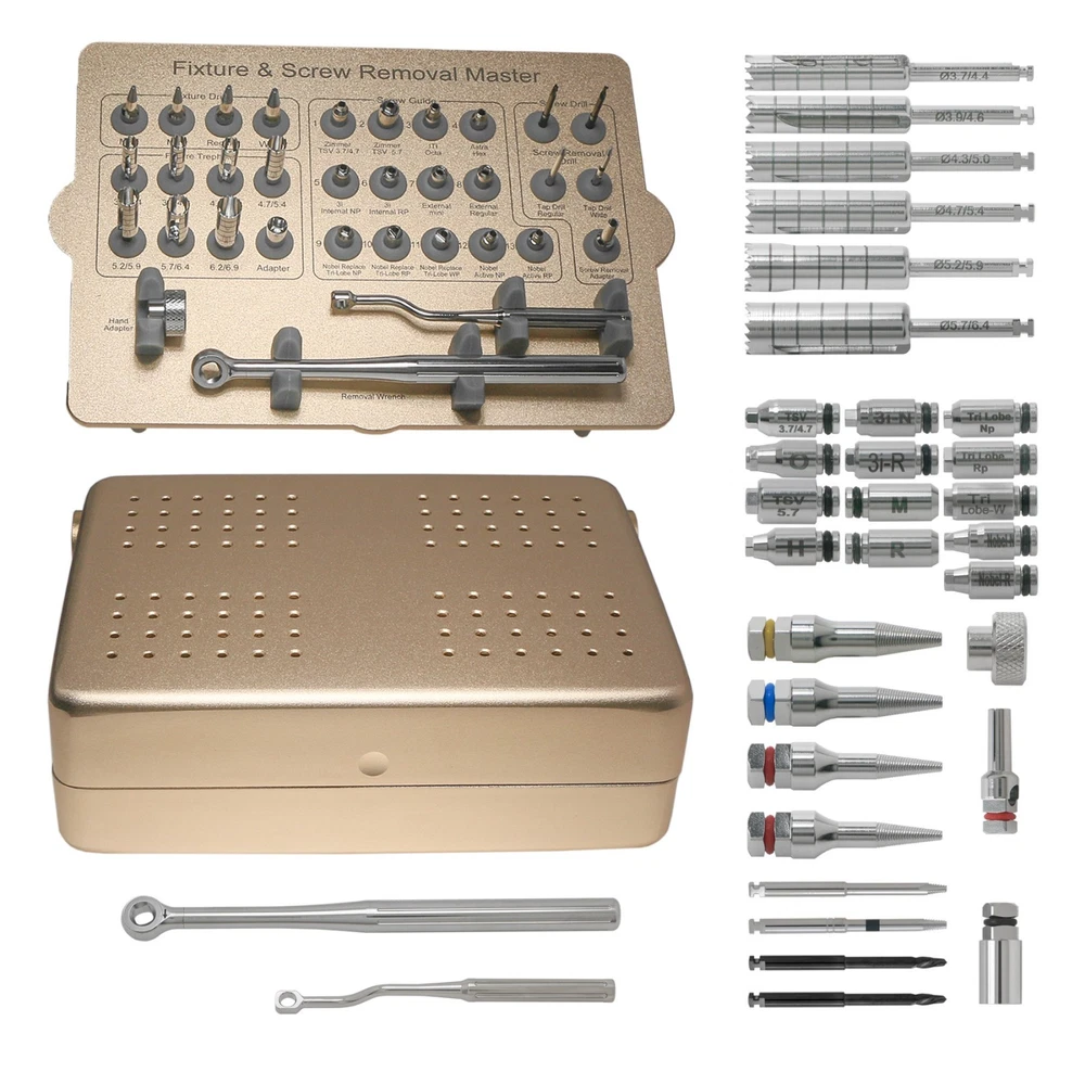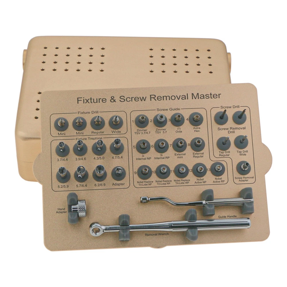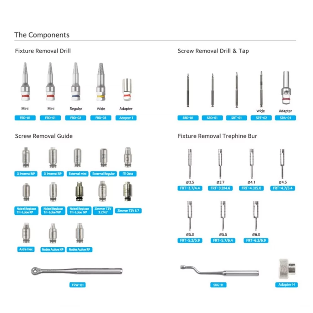 Implant MCT Rescue Kit Fixture Screw Removal Master Fit Any System 3i Astra MIS Shipping Directly From Walnut, California 91789 Totally the same with Salvin Implant Rescue Kit With 13 different screw guides, fit any implant system, like Zimmer, ITI, Straumann, Astra, 3i, Implant Direct, Keystone, Dentium, Hiossen, MegaGen, Neobiotech, Nobel Biocare, Steri-Oss, BioHorizons, BlueSky, MIS, Neodent, NobelReplace, NobelActive and more Item Descriptions The implant fixture and fractured screw removal kit is the only kit you need to remove failed dental implants and fractured screws. Our new Next Generation Kit features 7 extra parts at the same unbeatable price! Remove a fractured/broken screw and save the implant, or Remove a failed implant while minimizing trauma to the bone. Broken Screw Removal Helps To Remove Broken Screws Without Damaging The Implant Includes Centering Guides To Fit Any Implant System Failed Implant Removal Removes Failed Implants Without Compromising Surrounding Bone Or Damaging Neighboring Structures Works With Any Threaded Implant System Kit Includes Small, Medium, And Large Fixture Removers Kit Cleaning Needs to be cleaned and thoroughly dried before sterilized. Should be washed with a non-corrosive, low sudsing neutral detergent. Cleaning can be accomplished by ultrasonic or automated cleaning, which is preferred to minimize the opportunity of sharps injuries due to hand scrubbing. Salvin Dental does not suggest the use of any abrasive brushes or materials to clean. Kit Sterilization Steam Autoclave 15 Minutes At 273˚F / 134˚C (15psi) • Do Not Use Closed Containers Use Of Hard Water May Leave Deposits • Dry at Least 10 Minutes This kit include the following items Fixture removal drills FRD-01 (mini), FRD-02 (regular), FRD-03 (Wide), Adapter 1 Screw removal guide 3i Internal NP, 3i Internal RP, External mini, External Regular, ITI Octa, Nobel Replace Tri-Lobe RP, Nobel Replace Tri-Lobe WP, Nobel Replace Tri-Lobe NP, Zimmer TSV 3.7/4.7, Zimmer TSV 5.7, Astra Hex, Noble Active NP, Noble Active RP, FRW-01 Wrench Screw Removal Drill & Tap SRD-01, SRT-01, SRT-02 (Wide), SRA-01(Adapter) Fixture Removal Trephine Bur FRT-3.7/4.4 (Ø3.5), FRT-3.9/4.6 (Ø3.7), FRT-4.3/5.0(Ø4.1), FRT-4.7/5.4 (Ø4.5), FRT-5.2/5.9 (Ø5.0), FRT-5.7/6.4 (Ø5.5), FRT-6.2/6.9 (Ø6.0), SRG-H, Adapter H 🚚 Shipping Info ⏱ Delivery within 3–9 business days across the United States. ✅ Safe packaging & fast delivery guaranteed. FDA Statement The sale of this item may be subject to regulation by the U.S. Food and Drug Administration and state and local regulatory agencies. If so, do not bid on this item unless you are an authorized purchaser. If the item is subject to FDA regulation, I will verify your status as an authorized purchaser of this item before shipping of the item. Seller's name: dentsuper City State: Zhengzhou, Henan China Phone Number: +86371-68618288