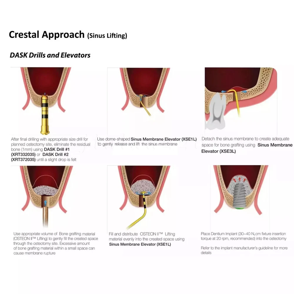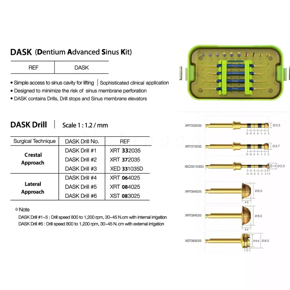 Description FDA for Handpiece: 510(K) Number: K181691 Regulation Number: 872.4200 Classification Product Code: EFB Subsequent Product Code: EGS Simple & easy access to sinus cavity • Broad exposure of bony walls with special instruments DASK is an advanced sinus lifting kit. The drills are internally irrigated, designed to create hydraulic pressure that protects the sinus membrane when drilling. The DASK kit contains 3 drills for the lateral approach, 3 drills for the crystal approach, 4 drill stoppers and 4 sinus hand instruments. The drills are internally irrigated to create an umbrella effect to reduce the risk of a potential perforation to the sinus. DASK Drill #1 XRT 332035 Crestal Approac DASK Drill #2 XRT 372035 DASK Drill #3 XED 331035D DASK Drill #4 XRT 064025 Lateral Approach DASK Drill #5 XRT 084025 DASK Drill #6 XST 083025 * DASK Drill #1~5 : Drill speed 800 to 1,200 rpm, 30~45Ncm with internal irrigation DASK Drill #6 : Drill speed 800 to 1,200 rpm, 30~45Ncm with external irrigation Stopper For XRT332035, XRT372035, XED331035D Drilling DepthLArt.No. 08 10.6 XFDST 08 06 12.6 XFDST 06 06 14.6 XFDST 04 02 16.6 XFDST 02 Sinus Elevation Instrument Art. NO XSE1L XSE2L XSE3L XSE4L FDA Statement: The sale of this item may be subject to regulation by the U.S. Food and Drug Administration and state and local regulatory agencies. If so, you can bid on this item only if you are an authorized purchaser. If the item is subject to FDA regulation, I will verify your status as an authorized purchaser of this item before shipping of the item. FDA for Curing Light: 510(K) Number: K192233, Regulation Number: 21 CFR 872.6070, Product Code: EBZ FDA for Handpiece: 510(K) Number: K181691, Regulation Number: 872.4200, Classification Product Code: EFB, Subsequent Product Code: EGS FDA for Scaler: 510(K) Number: K163414, Regulation Number: 872.4850, Product Code: ELC Feedback: We commited ourselves to your 100% satisfaction both with our goods and services. 1. Please leave me FIVE star POSITIVE feedback if you are satisfied with our items. 2. Please CONTACT me immediately before leave us neutral feedback or negtive feedback, We will try our best to resolve any problem for you untill you are satisfied. Notice: 1. Import duties, taxes and charges are not included in the item price or shipping charges. These charges are the buyer’s responsibility. 2. Please check your country’s customs office to determine what these additional costs will be prior to bidding/buying. Warmly remind: Pls let me know before taking any action, because your action will has an important impact on our shop. So pls give me a chance to offer the best sollution for you!! Our working time: Monday - Friday 9:00 AM - 5:30PM (Beijing) Company name: Dreamland Technology Ltd City, State: Beijing, China Telephone number: 0371-56645662 Return & Refund: Return within 30 days is accepted, though the item in good condition. Copyright © jinlan226 On Sep 11, 2024 at 03:33:15 PDT, seller added the following information: On Jan 6, 2025 at 06:35:20 PST, seller added the following information: