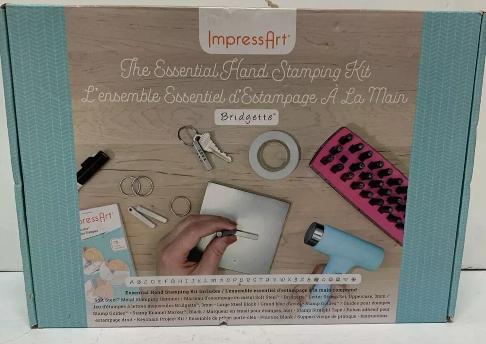 Introducing the ImpressArt Bridgette The Essential Hand Stamping Kit #694, a must-have for all crafting enthusiasts! This kit includes a high-quality hand stamping tool that is perfect for adding a touch of elegance and sophistication to your jewelry and craft projects. With its precision design, you can easily create beautiful and intricate patterns that are sure to impress. Featuring the ImpressArt brand and model BRIDGETTE, this kit is perfect for both beginners and experienced crafters alike. The kit is handmade with care and attention to detail, ensuring that you get the highest quality product possible. Ideal for use with a variety of materials, this hand stamping tool is perfect for creating stunning jewelry and craft projects that are sure to turn heads. NEW FAST FREE SHIPPING!!!