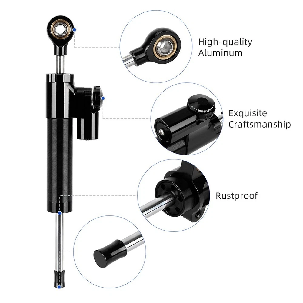 Product Description Feature : *brand new and high quality *Made of high quality material, and practical to use * Improving the stability of the motorcycle's front wheel involves applying damping to any attempt * whether human-induced or external, to make large, sudden steering movements within a short period, while maintaining unhindered response to small, normal steering adjustments during regular driving *This enhancement also prevents the front end from swaying at high speeds, significantly reduces vibrations caused by uneven road surfaces, improves cornering stability, and ultimately enhances driving safety. *easy to use and install,Good compatibility Specification: *Material: metal *Color: Black red, blue, gold(As Pictures Show) *product name :Steering Stabilizer Damper *size: approx 29*9.7*4cm Package content : 1x Steering Stabilizer Damper Note: . The real color of the item may be slightly different from the pictures shown on website caused by many factors such as brightness of your monitor and light brightness. 2. Please allow slight manual measurement deviation for the data. Payment Payment must be completed within 5 days. If you have any problems about payment, please contact us via ebay message. Delivery details We only ship to confirmed ebay Order addresses. Please comfirm that your Order address is in line with your shipping address. Please kindly note that the c ombined shipping is not provided because the shipping fee is calculated by weight. Also, the each additional item means exactly the the same color and size. It takes about 7 -15 working days to US; about 10-30 working days to other countries. Transit time may be a little delayed because of the bad weather and customs inspection . If you do not receive your item within 30 working days since payment finished, please contact us immediately for further assistance. Contact us We strive for 100% customer satisfaction! Positive Feedback is very important to us. If you have any questions, p lease feel free to contact us via "Ask seller a question" . We will reply your email within 24 working hours.