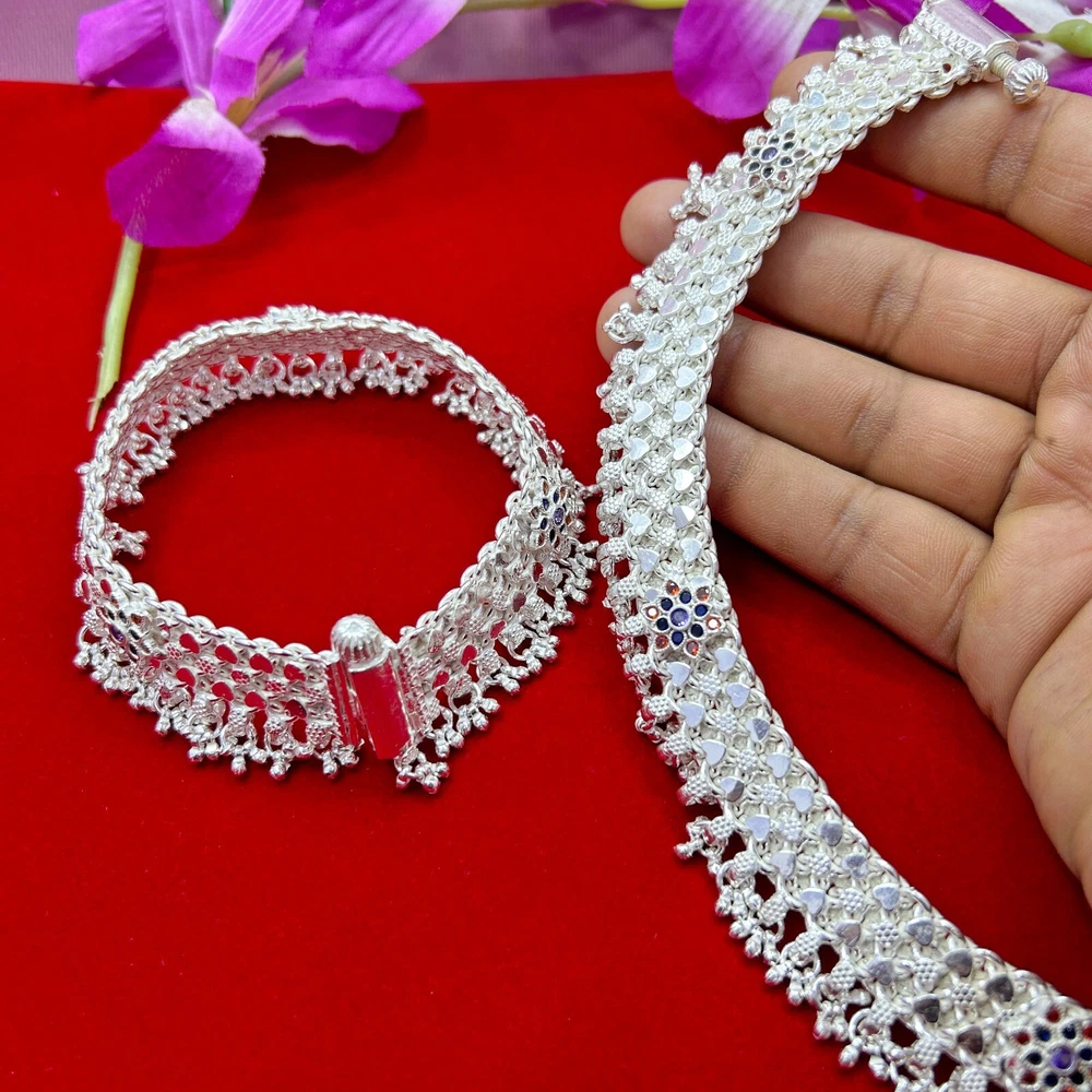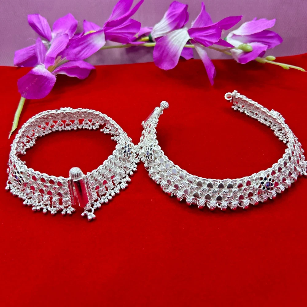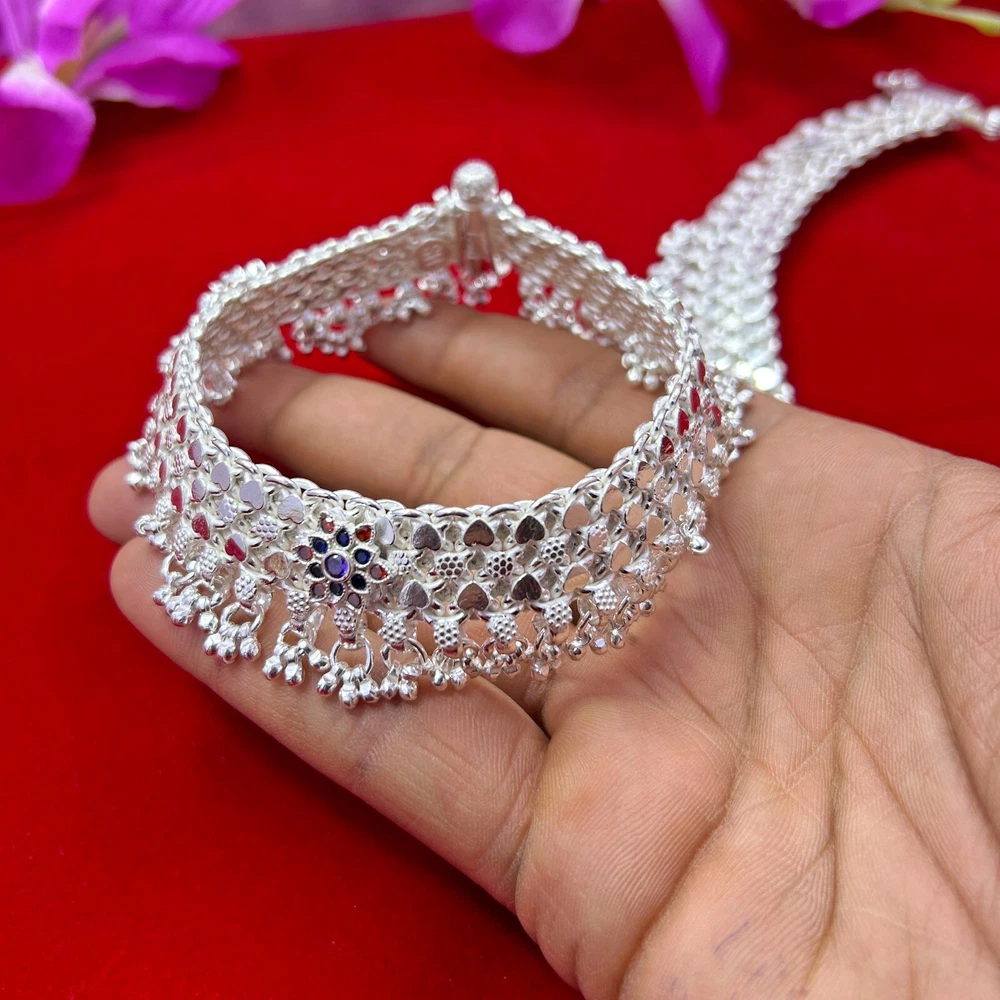 Indian Bridal Payal, Pure 925 Silver Heavy Anklet, Vintage Design Handmade Solid Silver Anklet, Amazing Belly Dance Jewelry from India ▶ PRODUCT DETAILS Item Code:----------SJSAN-1023 Metal:-----------------Silver Item Weight---------210.00 Gram (Approx) Item Dimension (L x W ) 8.20 Inches (Approx.) Item Thickness 2.00 CMS (Approx.) ▶ THIS PRODUCT CAN BE GIFTED ON THE FOLLOWING OCCASIONS:- Christmas Gift, Wedding Gift, Mother Day Gift, Father Day Gift, Valentine Day Gift, Birthday Gift, Anniversary Gift, Baby Shower Gift, Bridal Shower Gift, Housewarming Gifts, Graduation Ceremony, Friendship Day Gift, Halloween Gift, Hanukkah Gift, Thanksgiving Day, Black Friday Gift, Diwali Gift, Handmade Gifts, Silver Gifting, 925 Sterling, Shri Krishna Jewels, Krishna Jewels, Krishna, Ebay Best Seller, Ebay Jewelry, Personalized Gifts, Bridesmaid Gifts, Bridal Jewelry, Gift For Women, Handcrafted, Minimal Jewelry, Minimalist, Pure Silver Art, Jewelry Accessories, Handmade Jewelry, Jewelry Designs, Jewelry Lover, Vintage Jewelry, Custom Jewelry, Indian Jewelry, Religious Jewelry, Indian Silver Art, Dainty Jewelry, Boho Jewelry, Bohemian Jewelry, Women Jewelry, Artisan Jewelry, Art Deco, Home Decor, ▶ PAYMENT POLICY We accept payment through PAYPAL only. ▶ RETURNS & EXCHANGES POLICY I gladly accept returns and exchanges Contact me within: 7 days of delivery Send items back within: 30 days of delivery ▶ FEEDBACK Our feedback is very important for us Please leave a positive review, Please contact us if you have any other problems/ issues with our product or service. NOTE:- We can make customized jewelry as per the requirements of the clients. Thank you so much for visiting *Shri Krishna Jewels*