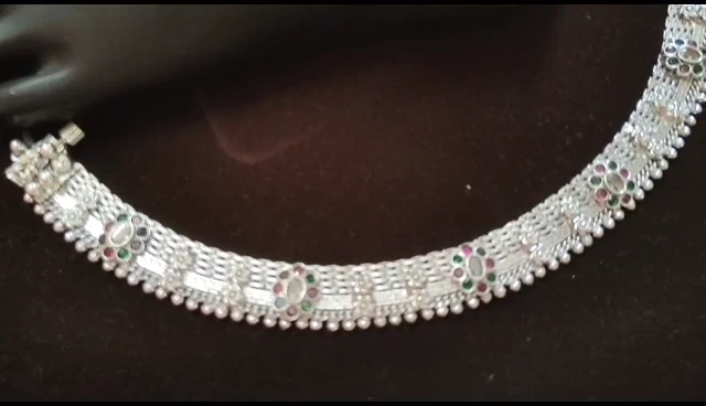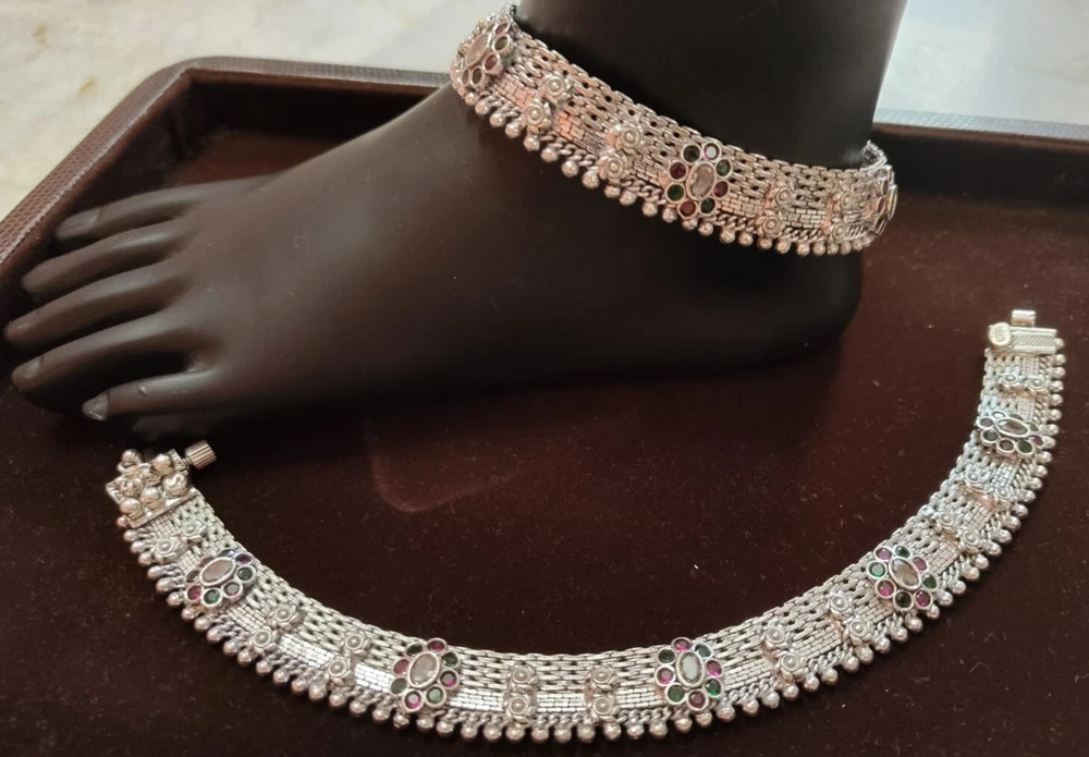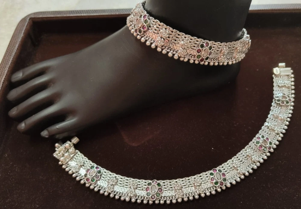 Number of Diamonds: NO Main Stone: No Modified Item: No Handmade: Yes Type: Anklet Occasion: Anniversary, Birthday, Christmas, Engagement, Mother's Day, Valentine's Day, Wedding Material: SILVER Main Stone Treatment: No Metal: Fine Silver Main Stone Creation: No Seller Notes: “Handmade Indian Bridal Payal Pure Silver Anklet Approx 140 Gram 10'' Vintage Anklet” Number of Gemstones: NO Base Metal: Fine Silver Gender: Female Item Length: 10 in Color: Silver Country/Region of Manufacture: India Closure: Hook Main Stone Color: No Secondary Stone: No Fancy Diamond Color: No Style: Chain Country of Origin: India Brand: Silverethinic Theme: Beauty Length (inches): 10'' Diamond Color: No Metal Purity: 925 parts per 1000
