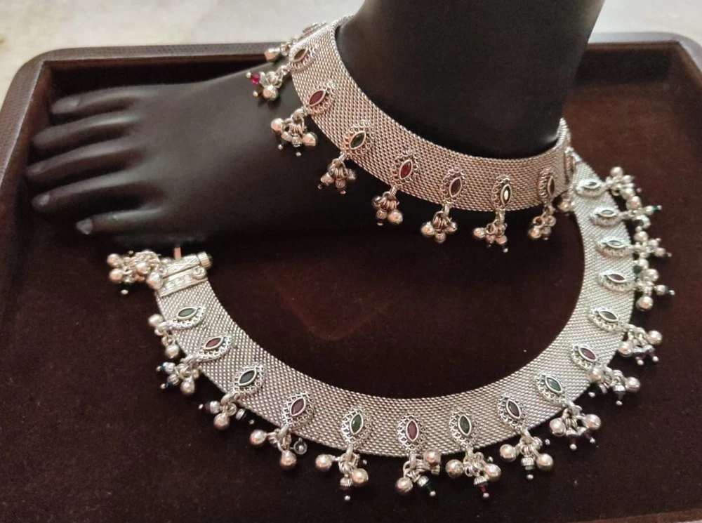 Fancy Diamond Color: No Main Stone Creation: No Handmade: Yes Occasion: Anniversary, Birthday, Christmas, Engagement, Mother's Day, Valentine's Day, Wedding Country of Origin: India Main Stone Color: No Number of Gemstones: NO Diamond Color: No Brand: Silverethinic Main Stone: No Length (inches): 10'' Number of Diamonds: NO Country/Region of Manufacture: India Theme: Beauty Closure: Hook Gender: Female Type: Anklet Metal: Fine Silver Color: Silver Main Stone Treatment: No Material: SILVER Item Length: 10 in Secondary Stone: No Metal Purity: 925 parts per 1000 Base Metal: Fine Silver