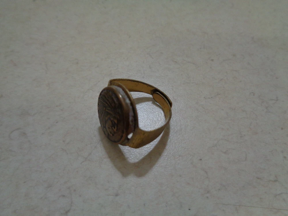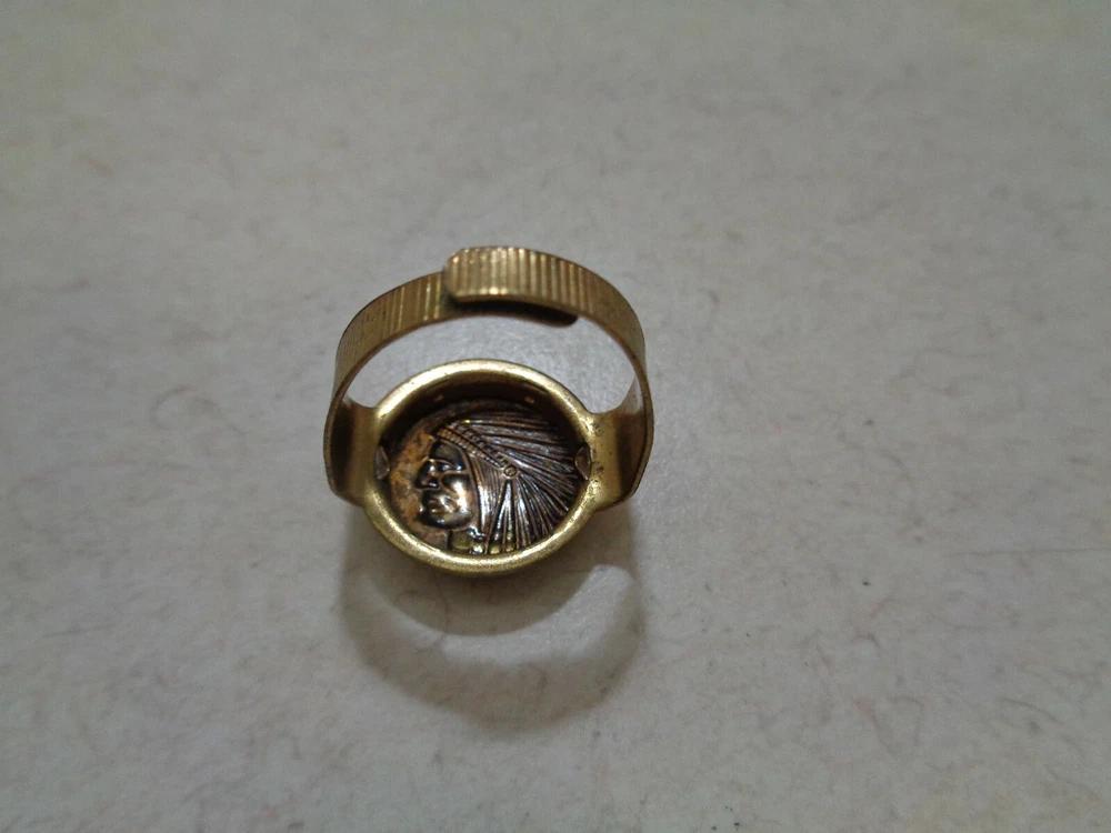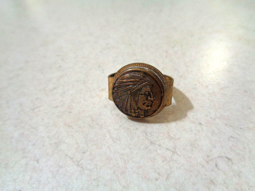 theme: Indian Chief type: ring size: adjustable band Handmade: No Country/Region of Manufacture: Unknown Object Type: Ring Subject: Indian Chief Improved Order Of Red Men