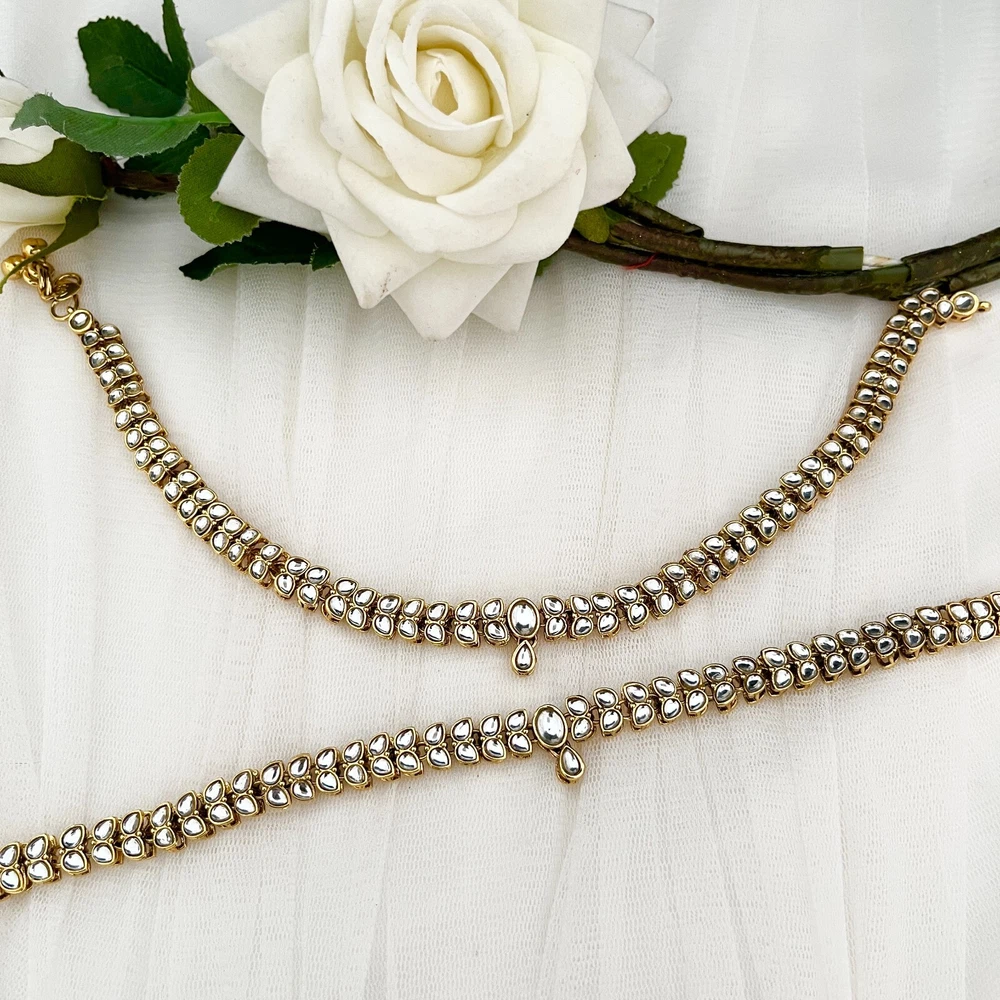 gold plated slim payal elegant and light ONE SIZE Package consists of 1 set of anklets/Payal Picture shown is a real product you get what you see Actual colours may vary . This is due to computer monitors displaying colours differently and everyone can see these colours differently. We try extremely hard to ensure our photos are as life-like as possible, but please understand the actual colour may vary slightly from your monitor. Picture shown is a real product no filters Consistent exposure to perfume can harm jewellery due to the presence of oils, synthetics including ethyl alcohol, and certain colour dyes. These ingredients can cause jewellery to lose its sheen, erode metal coatings, or create a dull layer making the jewellery appear discoloured. Packaged securely in a box bubble wrap along with a Organza gift bag for safe keeping Hand made Condition: Brand New Quality checked My jewellery is check to make sure no damages and are in perfect condition Dispatched same day Standard postage will be either Royal Mail 1st class depending on weight and size, or Hermes parcel shop Please let me know if you have any questions If you have any issues, please contact me within 48hrs of receiving the item [buyer pays return postage] code 340