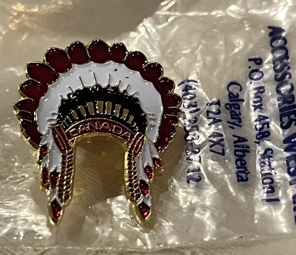 Native American Canadian Headdress ''Canada'' Accessories West Ltd, Calgary, Alberta Pin Tack Pin. Great addition to a collection. Measurements 1”x .75”