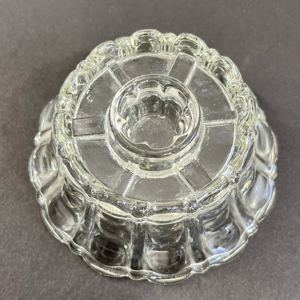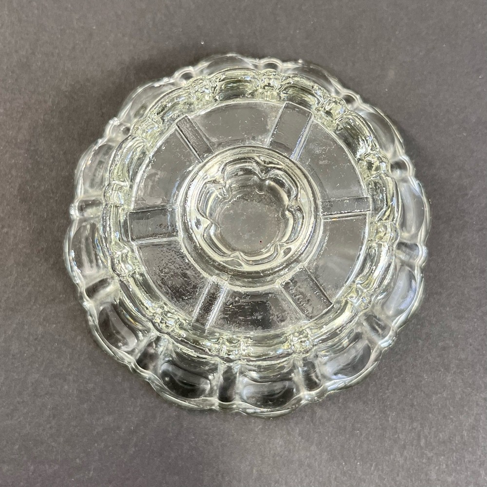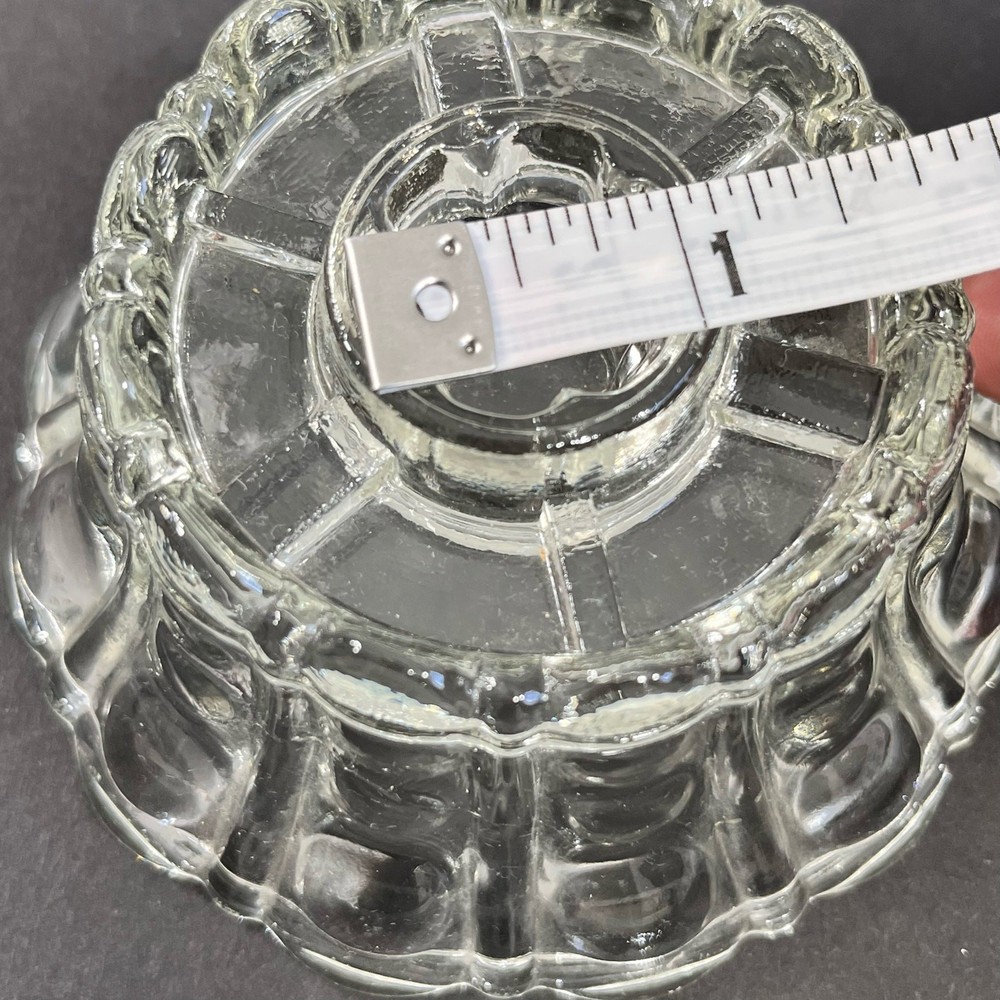 This candle holder is stunning—the clear bubbled design catches the light beautifully, adding elegant vintage charm to any table. Perfect for 1" taper candles, it works with or without a hurricane shade. The quality is excellent, and it’s in great vintage condition. A must-have for candle lovers!