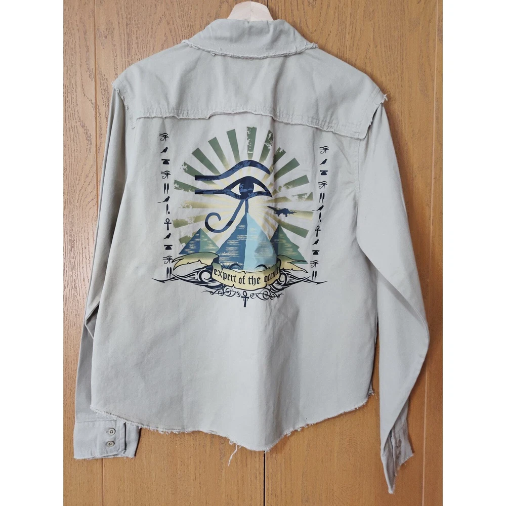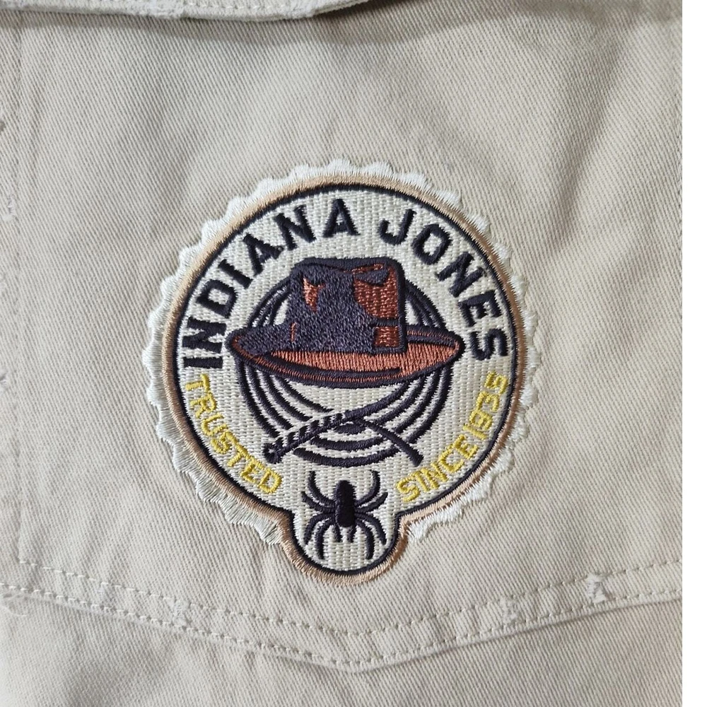Unleash your inner adventurer with this Her Universe Disney Indiana Jones Utility Overshirt! This long sleeve button-down shirt in a rugged tan features a stylish frayed hem and two chest pockets, one adorned with a patch that says "Indiana Jones" alongside the classic Indy hat. The back of the shirt boldly declares "Expert of the Occult," adding a touch of mystery. As a BoxLunch Exclusive, this utility overshirt is perfect for fans of the legendary archaeologist. Embrace the spirit of adventure with this unique and practical piece! Size: Measurements are approximate Size medium Condition: New with tags. Have a magical day Pet-free, smoke-free home.