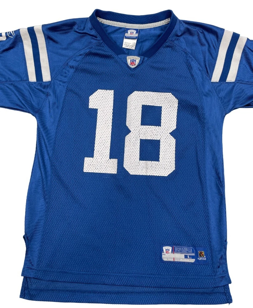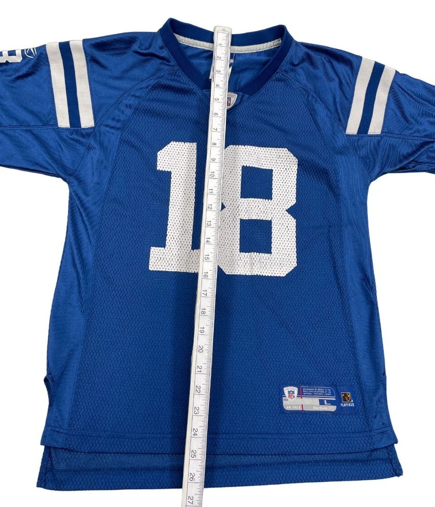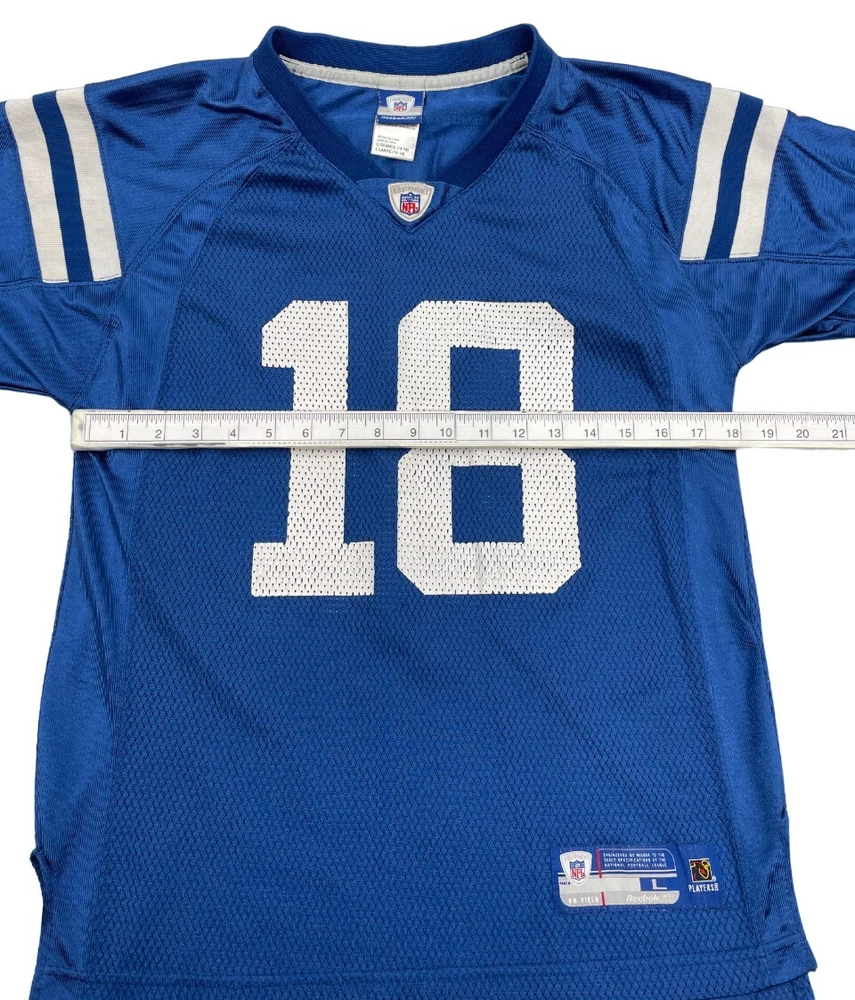 Team: Indianapolis Colts Sport: Football-NFL Officially Licensed: Yes Brand: Reebok Color: Blue Size: L Player: Peyton Manning Product: Jersey Gender: Boys