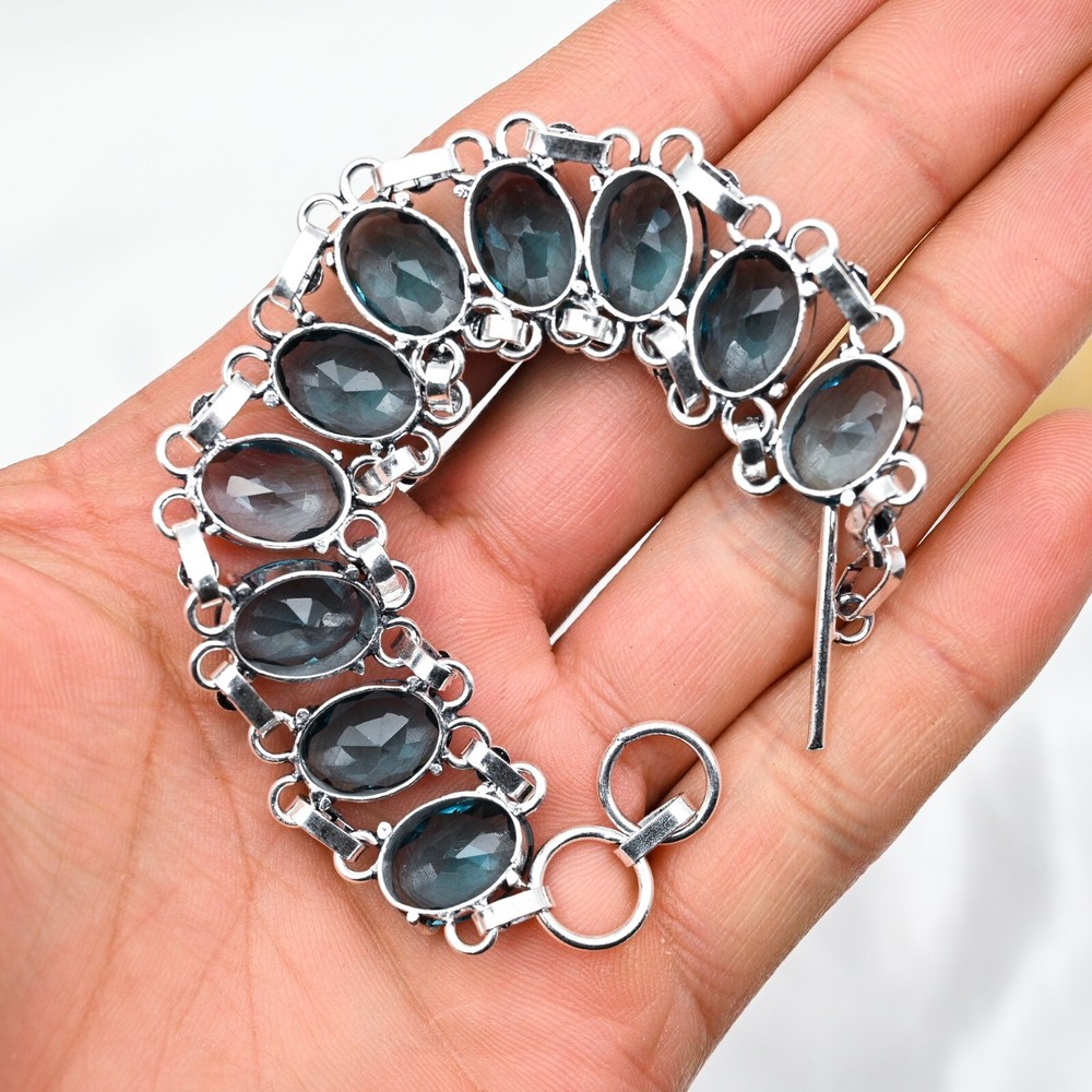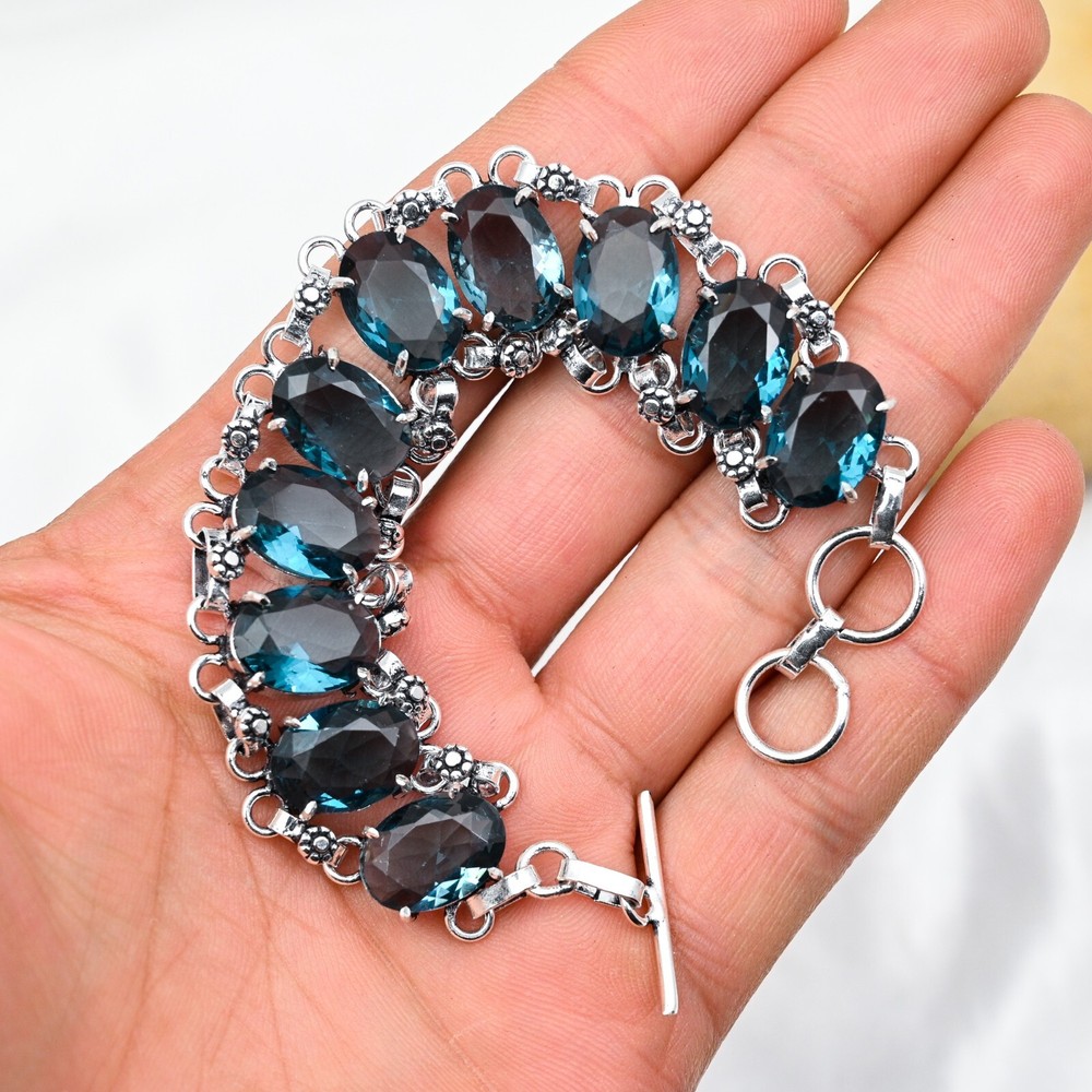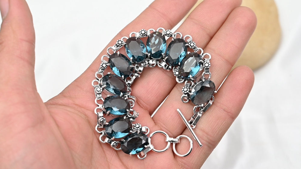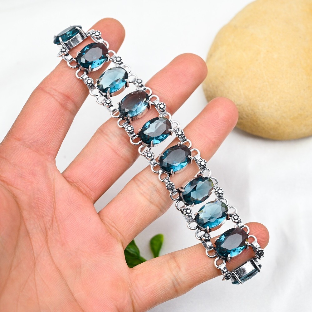Country of Origin:IndiaDiamond Color Grade:N/AMetal:SilverMain Stone:Indicolite TourmalineMain Stone Depth:N/AType:BraceletCut Grade:ExcellentMaterial:GemstoneStyle:ChainBrand:HandmadeCharm Type:Same As PictureTotal Carat Weight:10 carat and aboveSecondary Stone:Indicolite TourmalineColor:SilverItem Length:8 inches with Adjustable ChainCountry/Region of Manufacture:IndiaMain Stone Width:N/AMain Stone Creation:NaturalOccasion:Anniversary, Birthday, Christmas, Engagement, Mother's Day, Valentine's Day, WeddingColored Diamond Intensity:N/ASetting Style:BezelCollection:HandmadeMain Stone Treatment:Not EnhancedCertification:N/AMain Stone Color:BlueMetal Purity:925Number of Diamonds:N/ABase Metal:Sterling SilverShape:Same As PictureChain Type:N/ATheme:Beauty, Bohemian, Ethnic, Halloween, LoveMain Stone Shape:OvalClosure:ToggleNumber of Gemstones:10Main Stone Length:N/ADiamond Clarity Grade:N/AFeatures:Adjustable