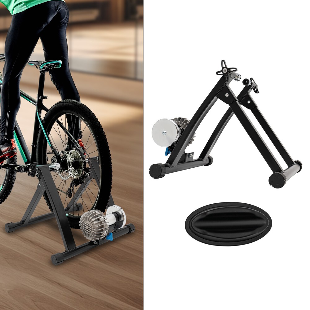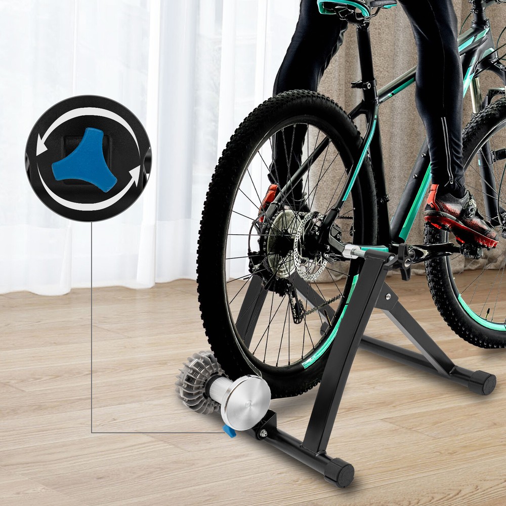 Indoor Bike Trainer Stand Cycling Exercise Stationary Bicycle Stands for 26-29in Description This fluid bike trainer stand allows you to enjoy a great workout in the comfort of your own home. It is a great workout tool with a sturdy steel body and stable triangle construction and can be a great help for improving your fitness to the next level. Key Features High-quality Material: Its high-quality steel and engineering plastic make our product load up to 330.69 lbs. With a spray molding surface, it is corrosion-resistant, dust-proof, sturdy, and durable. Adjustable Design: The knob can be used for adjusting the tension, giving you more options for simulating different scenarios. The thickness of the foot cap is adjustable in 5 levels and you can rotate the caps to choose the appropriate thickness to level the trainer for safe riding. Low Noise: Its resistance roller does a great job in noise reduction, allowing you to exercise without disturbing others around you. Exercise at Home: Whether it's a typhoon or a sunny day, you can stay in shape with your own bike, avoiding the sudden wind and rain that comes with exercising outside! Stable Construction: Its triangle ergonomic golden ratio design and slip-proof feet make it hard to shake and improve its overall stability, making it safer for riding and training. Easy to Store: The M-shaped frame can be folded to an ultra-compact size for easy storage and carrying. Effortless Assembly: You can easily assemble the trainer with the accessories and tools we provide, and its dual locking system makes it easy to lock the bike in place. Protective Package: To prevent the product from being damaged during transportation, we packed it with bubble bag to protect your products to the maximum extent possible. Customer Service: We aim to provide quality products and services. If you have any problems, please feel free to contact us. We will reply and solve the problem for you as soon as possible. Details Quick-Release Lever: The professional quick-release lever is prepared for easy wheel attachment and removal. Front Wheel Cushion: The front wheel cushion fits the curvature of most bicycle tires for more secure parking Aluminum Alloy Resistor Shell: Its aluminum alloy shell can dissipate heat quickly, giving it a long service life. Application It is suitable for 26-29-inch bikes and 700C bikes such as mountain bikes and road bikes, and also a good choice for indoor workouts. Specifications Color: Black Material: Steel, Engineering Plastic, Aluminum Alloy, Nylon Surface Treatment: Spraying Molding Friction Type: Oil Mount Type: Free Stand Bike Type: Road Bike Assembly Required: Yes Power: 900W Thickness of Tubes: 1.5mm/0.05inch Bottom Tube Diameter: 38mm/1.49inch Lever Clamp Distance: 11-12cm/4.33-4.72inch Noise: 40-60db Load Bearing: 150kg/330.69 lbs Suitable Bike: 26-29inch, 700C Bikes Product Size: 55*48*40cm/21.7*18.9*15.8inch Package Size: 59*19*49cm/23.22*7.48*19.29inch Gross Weight: 10kg/22lbs Package Included 1*Fluid Bike Trainer Stand All Accessories For Assembly Notes 1. Please check the size carefully before ordering, and note that the bike is NOT included. 2. It is recommended to replace the original tires with smooth-headed tires when the tread texture is too deep(which may lead to a loud voice). 3. It is recommended to place a yoga mat(not included) under the base to reduce contact between the base and the ground to reduce sound. 4. It is recommended that after the tire comes into contact with the resistance roller, turn the adjusting nut three more turns to fully apply force to the tire. (Loose contact surface between tire and drum can cause tire burning and increased noise) 5. It is suitable for standard tires of road bikes and mountain bikes. Thick tires are not suitable. After connecting with the trainer, the distance from the center of the tire to the ground is about 15.16inch. It can be adapted to the barrel or thru axle bikes, but an adapter is required. 6. Please allow the slight color difference caused by the shooting light and 1-3cm error due to manual measurement, and make sure you do not mind before you order. Payment Delivery details Terms of sales About us Contact us Payment We accept ebay payment 。 Fees such as import duties, taxes are not included in the item price or shipping costs. These charges are the buyer's responsibility. Delivery details Shipping: 2-9 working days to: USA Terms of sales We maintain high standards of excellence and strive for hundred percent customer satisfaction. Feedback is very important to us. We hope that you contact us immediately before you give neutral or negative feedback, so that we can address your concerns. It is impossible to address issues if we do not know about them! About us Your satis faction is our ultimate goal. We work hard to earn your trust and future business. Our certified technicians have tested each item before shipping. The unit comes with 1 year limited warranty on all manufacturing defects. a) If you receive a defective item, you may return it or ask for a discount. Please contact us within 14 days after you receive the package. b) What you returned must be intact and in its original packaging as re? u. Customer is responsible for shipping costs of the returned item. c) We will cover the cost of shipping back t with the shipping rate indicated in the registration page. We will send you a new unit or refund the full payment you paid. Thank you. Contact us Business Hour Business Hour: Monday To Friday: 8:30 AM to 5:00 PM (Beijing China time) Due to time zones, our reply to your questions may not be immediately. But within above working time, we will reply your email within 24 hours. If it's non-workdays, please kindly be patient and wait till Monday. Please contact us with ebay message. Please feel free to contact us if you have any questions. Monday To Friday: 8:30 AM to 5:00 PM (Beijing China time) Due to time zones, our reply to your questions may not be immediately. But